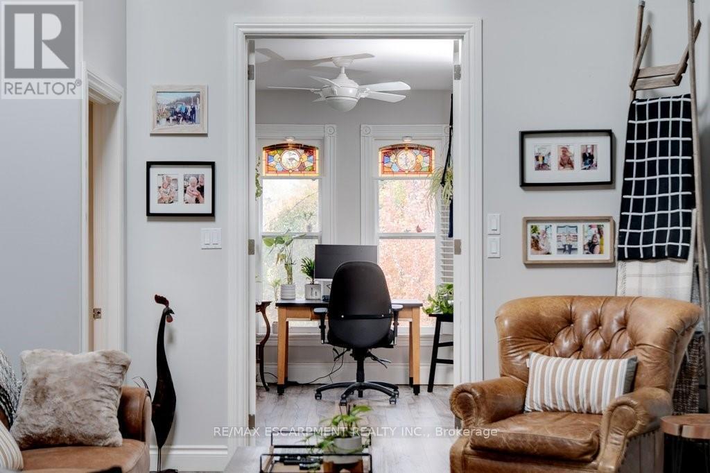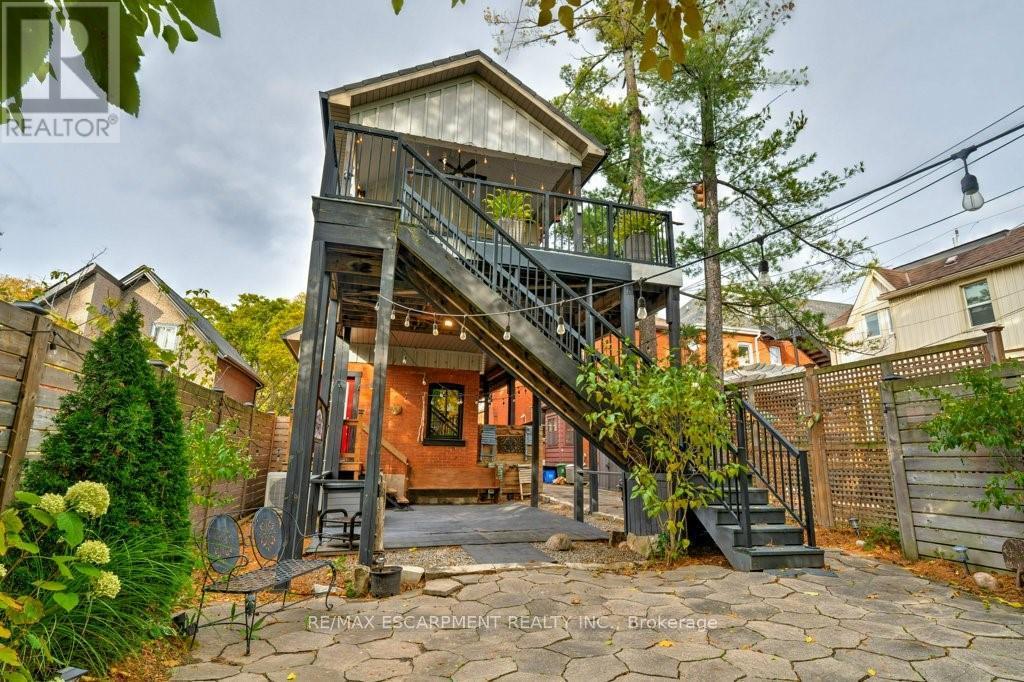 Tucked along a tree-lined street in Hamilton's beloved Kirkendall neighbourhood, this stately legal duplex tells a story of character, versatility, & opportunity. Behind its charming façade lies over 2,500 square feet of living area, thoughtfully separated into three distinct suites that adapt as life does. On the main level, a self-contained one-bedroom apartment at the rear and a dedicated home office at the front create endless possibilities. The recently renovated apartment offers a private space for parents or a tenant who wants a true home feeling. The office provides the perfect setup for professionals seeking a separate, client-ready workspace - ideal for a therapist, doctor, hair stylist, or lawyer who wants the convenience of working from home without sacrificing privacy. On the upper levels, natural light pours in through skylights and stained-glass windows, highlighting 18-foot ceilings, historic woodwork, and a wrap-around covered balcony made with Trex decking - a peaceful escape in the middle of the city. With two bedrooms, a loft, and two full bathrooms upstairs, it's a bright, welcoming home with timeless charm. Outside, the yard continues the character of the home with water features, a stained-glass art piece, and a restored church pew, creating a one-of-a-kind setting for entertaining or relaxing under the trees. Whether you're hosting friends or enjoying a morning coffee surrounded by art and greenery, this backyard is made for connection and celebration. Behind the charm lies confidence in the updates - a metal roof (2019), all-new windows (2023), high-end appliances, and independent heating and cooling systems for each level, ensuring comfort and efficiency year-round. Set in one of Hamilton's most sought-after neighbourhoods, steps to Locke Street's cafés, boutiques, and parks, 7 Homewood Ave is more than a home - it's a lifestyle, a workspace, and an investment in one of the city's most vibrant communities. RSA. (id:4555)
