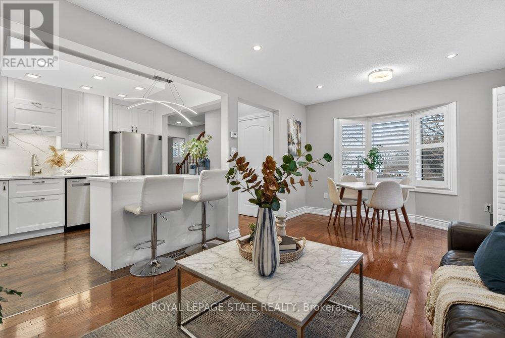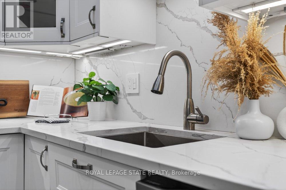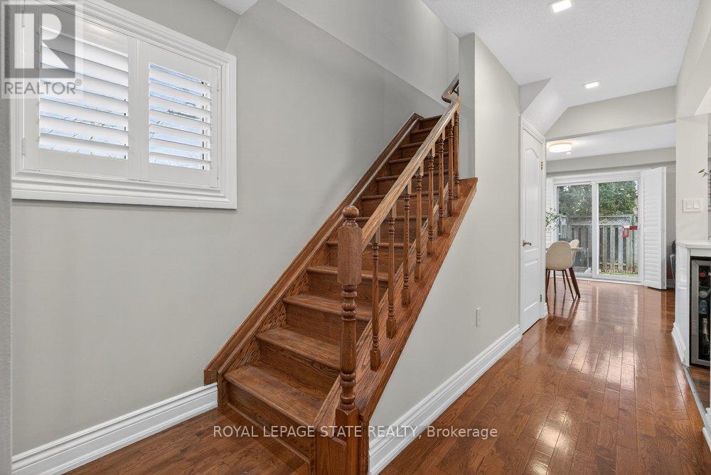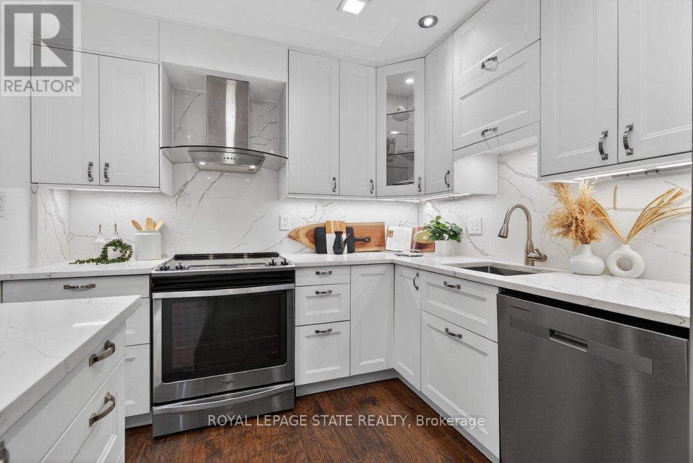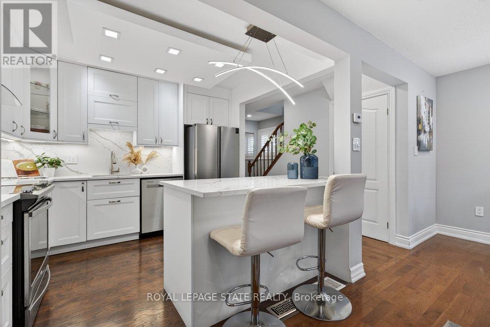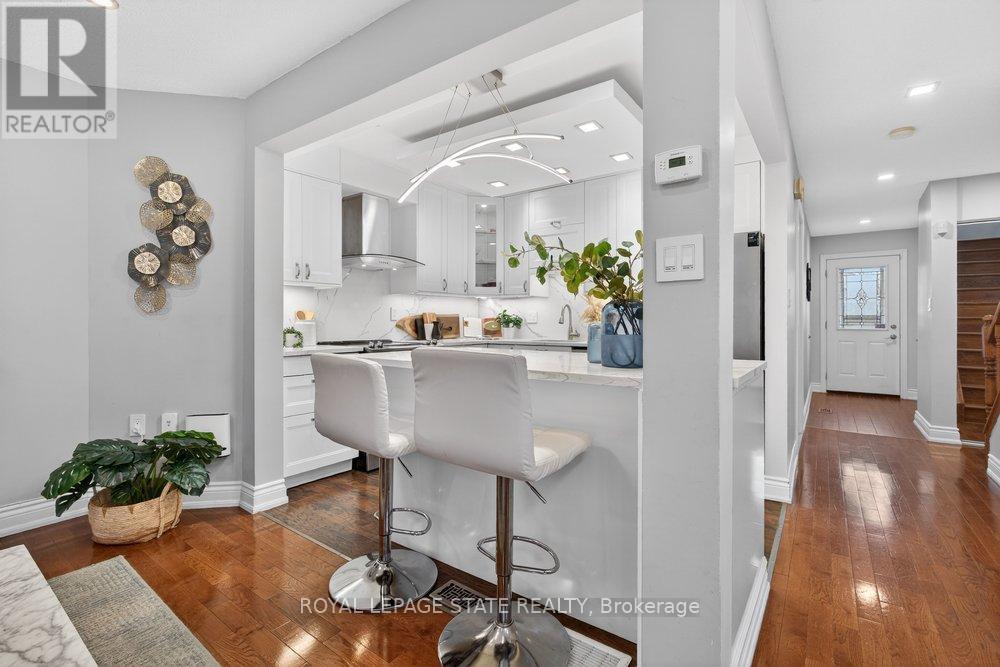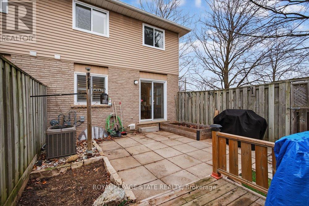 Gorgeous end-unit townhouse in a fantastic Stoney Creek location! Just minutes to the QEW (Fruitland) and close to schools, parks, restaurants, and all amenities. This home is extremely well maintained, spotless, and loaded with updates. Stunning open-concept kitchen featuring white soft-close cabinetry, quartz countertops, backsplash, centre island, and wine fridge-perfect for everyday living and entertaining. Updated bathrooms, ceramic and hardwood flooring, pot lights, California shutters, and convenient inside entry from the garage. Major updates include furnace and A/C (August 2022) and a garage door opener (August 2022). Unspoiled unfinished basement offers endless potential. Enjoy a private rear yard surrounded by trees with patio, deck, and professional landscaping. Outstanding location, great complex-shows 10+! (id:4555)