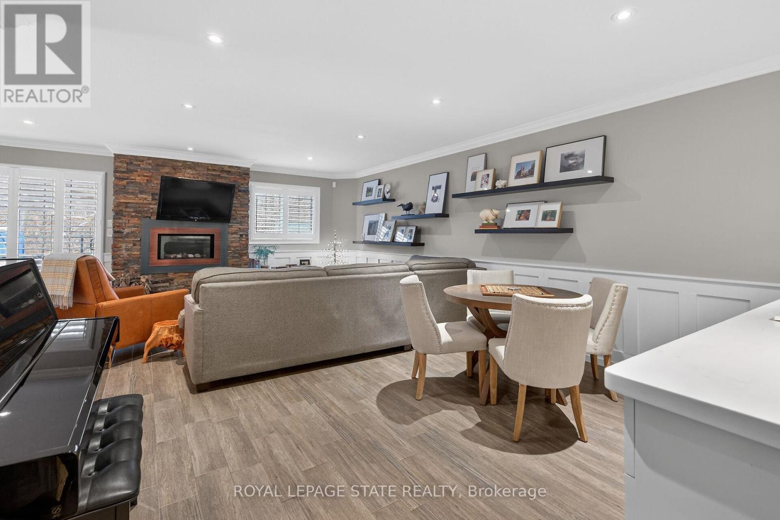 Coveted location on Sulphur Springs Road. Stroll to olde town and all amenities, while enjoying the peaceful, serene backdrop of nature. This town manor has been tastefully & professionally renovated & upgraded. From the sleek bright kitchen, the statement gas f/p in the liv room, staircase, engineered hardwood flooring on main & upper levels. All bathrooms have heated floors (3), furnace, a/c, lower level walk out with built-ins and stone gas fp, heated tile flooring, den, & 3pc bathroom, including recent rear patio. Minutes to the Hamilton Golf and Country Club and major road accesses. You'll appreciate the design details & renovations that makes this upscale townhome an easy choice to make it yours. There is approximately 2,600 square feet of luxury living. (id:4555)