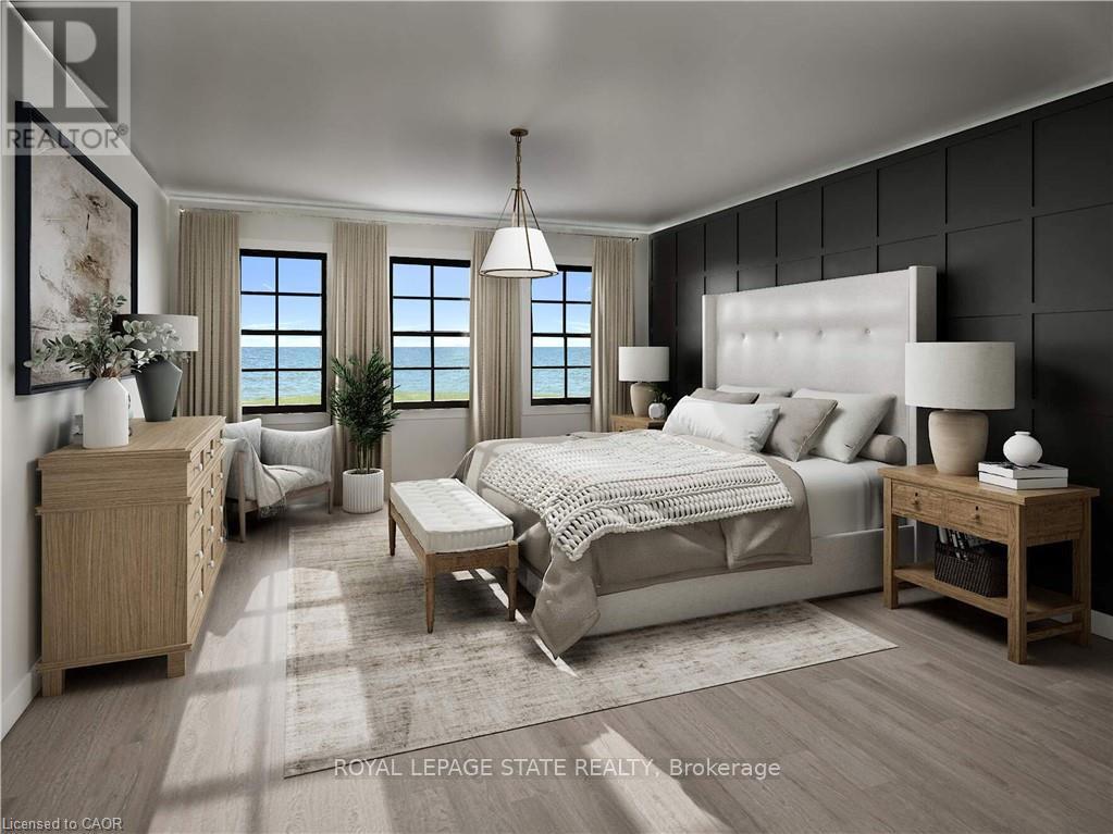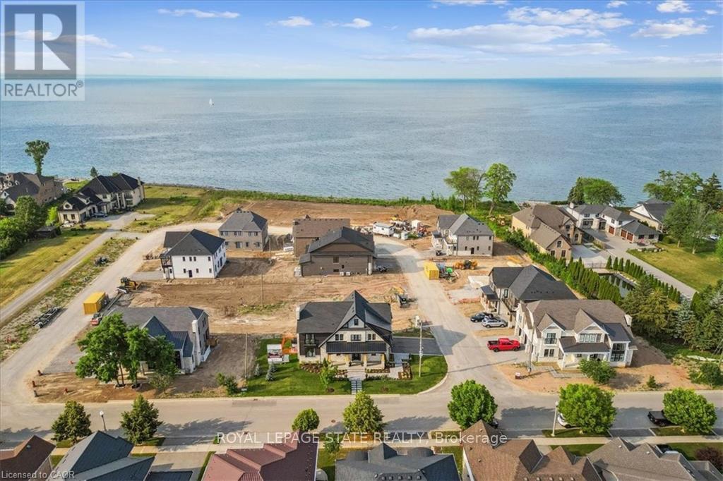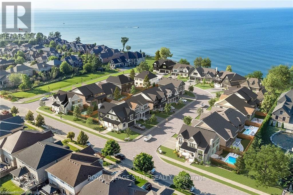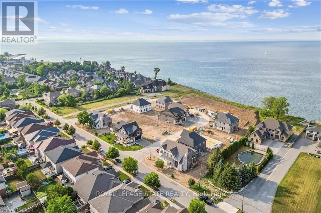 Don't Miss This Rare Lakefront Bungalow on the Shores of Lake Ontario. Welcome to a truly exceptional opportunity- an exquisite 2,841 sq. ft. lakefront bungalow perfectly positioned along the sparkling shoreline of Lake Ontario offering breathtaking panoramic views. This brand-new floor plan has been meticulously crafted to maximize lake views and everyday livability. With 10' ceilings, 8' solid-core interior doors, hardwood floors, upgraded tile throughout, and an elegant oak staircase- this home exudes sophistication. The chef-inspired kitchen is as functional as it is striking, featuring extended-height cabinetry with crown moulding, premium quartz countertops, a stylish backsplash, and a large central island- ideal for both casual meals and upscale entertaining. As a purchaser, you'll have the rare opportunity to fully customize your finishes at our brand-new design studio, guided by our expert design consultant and curated selection of elevated materials. An open-concept layout anchors the home's living and dining areas, centered around a 46" gas fireplace with a stained wood beam mantle. Floor-to-ceiling lake-facing windows flood the space with natural light and showcase the unmatched views. Step through to the covered rear patio and enjoy year-round relaxation beside the water. Wake up to panoramic lake views from the luxurious primary bedroom, complete with a spa-like ensuite featuring a freestanding soaker tub, custom glass shower, dual vanities, and quartz countertops. Not to mention two additional bedrooms offering ensuite privilege and premium finishes, and a stylish 2-piece powder room. This home offers both peaceful lakeside living and convenient access to QEW, top-rated schools, shopping, and daily amenities. Enjoy the security of a sloped, granite capped revetment wall designed by a coastal engineer- a premium shoreline upgrade designed to safeguard your investment. *This home is pre-construction. Estimated closing 12 months after purchase. (id:4555)