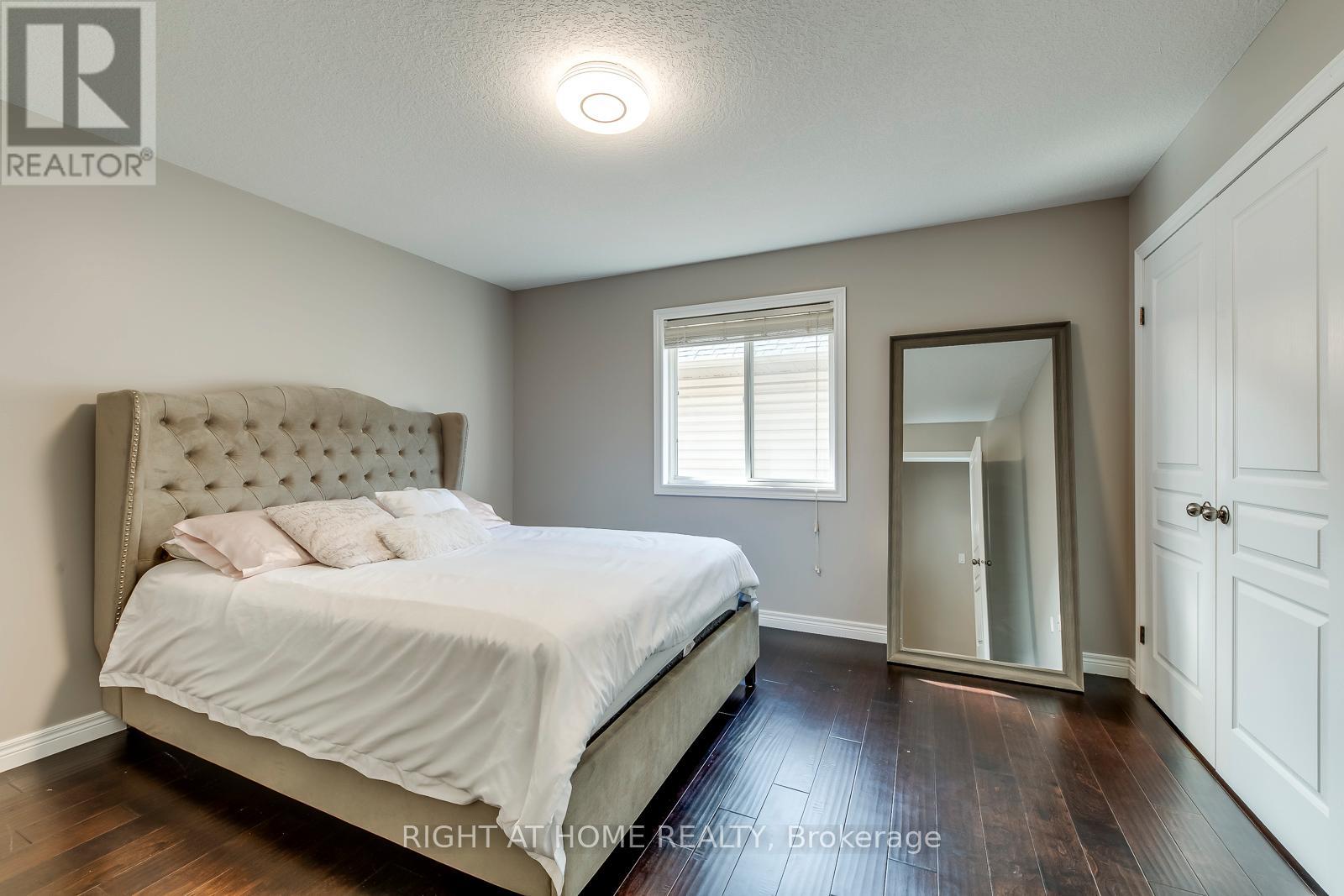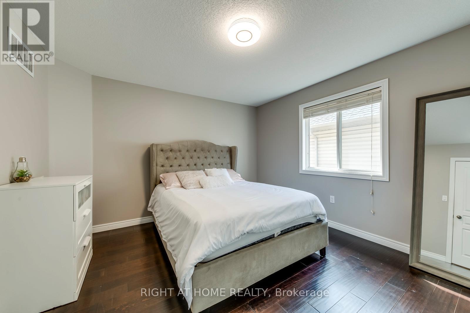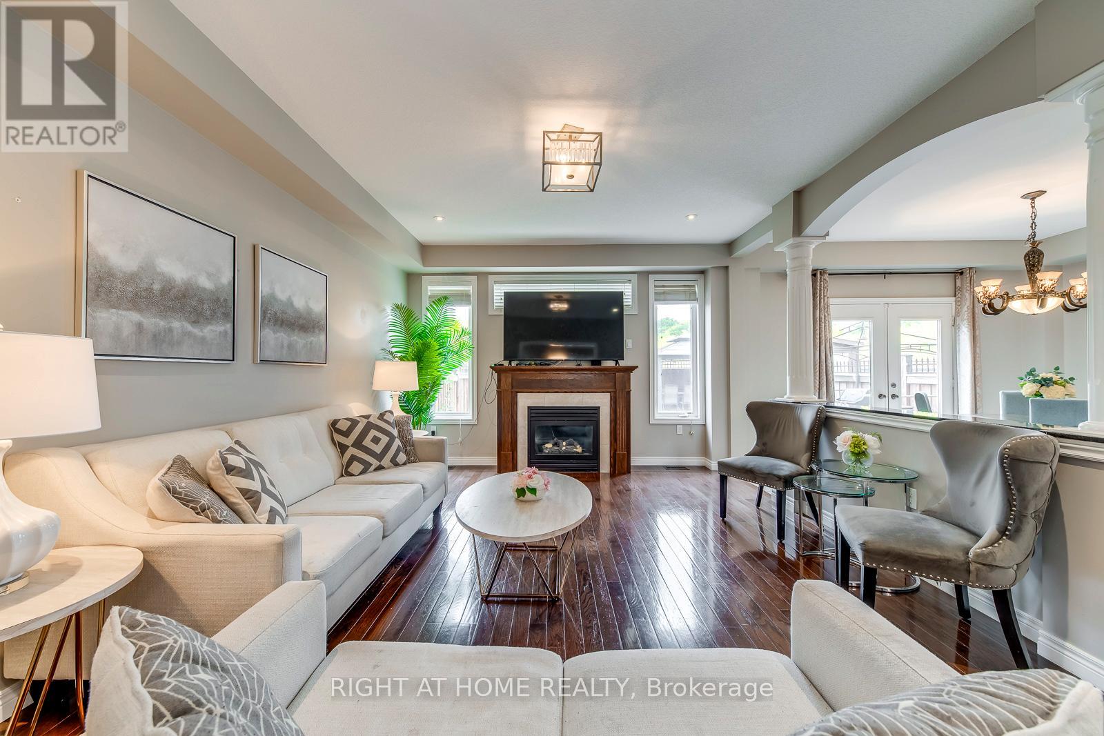 This beautiful, carpet-free four-bedroom detached home is located at the end of a quiet court and offers over 2,500 square feet of well-designed living space, plus a finished basement. The main level features large windows, hardwood floors, and a bright, open layout with a cozy family room with a gas fireplace. The kitchen is clean and functional, with quality appliances, a pantry, and plenty of cabinet space. Upstairs, the spacious primary bedroom includes a four-piece ensuite and a walk-in closet, while the other bedrooms are generous in size and filled with natural light. The finished basement adds even more flexibility with a large bathroom and a second full kitchen, offering great space for extended family, guests, or extra living space. There is also potential to create a separate entrance. Outside, the poured concrete driveway fits four cars comfortably, and the backyard backs onto a peaceful green space, providing extra privacy. Laundry has been moved to the basement, but the original plumbing is still available upstairs for an optional second laundry area. This move-in-ready home offers comfort, space, and a great location close to schools, parks, and amenities. (id:4555)