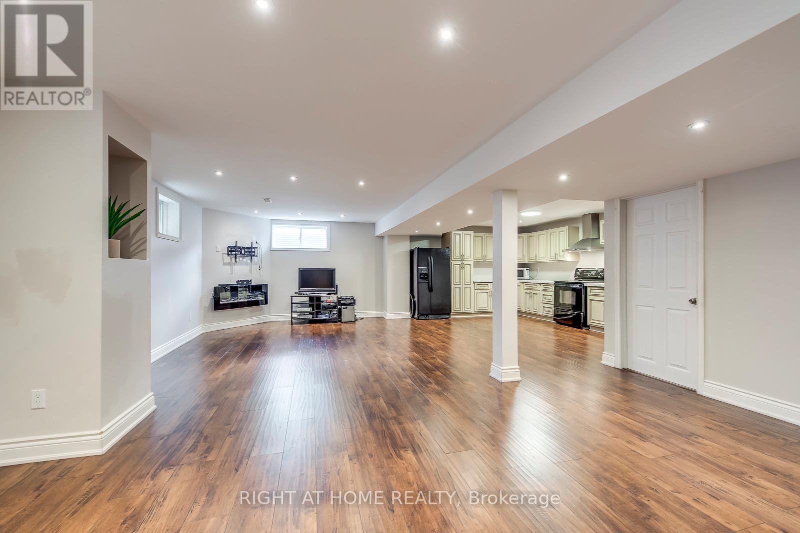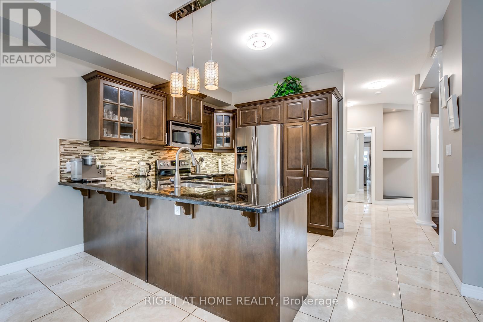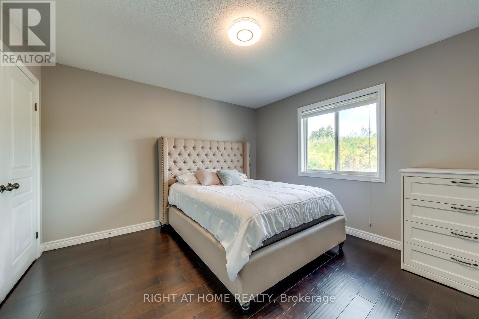 This beautiful, carpet-free four-bedroom detached home is located at the end of a quiet court and offers over 2,500 square feet of well-designed living space, plus a finished basement. The main level features large windows, hardwood floors, and a bright, open layout with a cozy family room with a gas fireplace. The kitchen is clean and functional, with quality appliances, a pantry, and plenty of cabinet space. Upstairs, the spacious primary bedroom includes a four-piece ensuite and a walk-in closet, while the other bedrooms are generous in size and filled with natural light. The finished basement adds even more flexibility with a large bathroom and a second full kitchen, offering great space for extended family, guests, or extra living space. There is also potential to create a separate entrance. Outside, the poured concrete driveway fits four cars comfortably, and the backyard backs onto a peaceful green space, providing extra privacy. Laundry has been moved to the basement, but the original plumbing is still available upstairs for an optional second laundry area. This move-in-ready home offers comfort, space, and a great location close to schools, parks, and amenities. (id:4555)