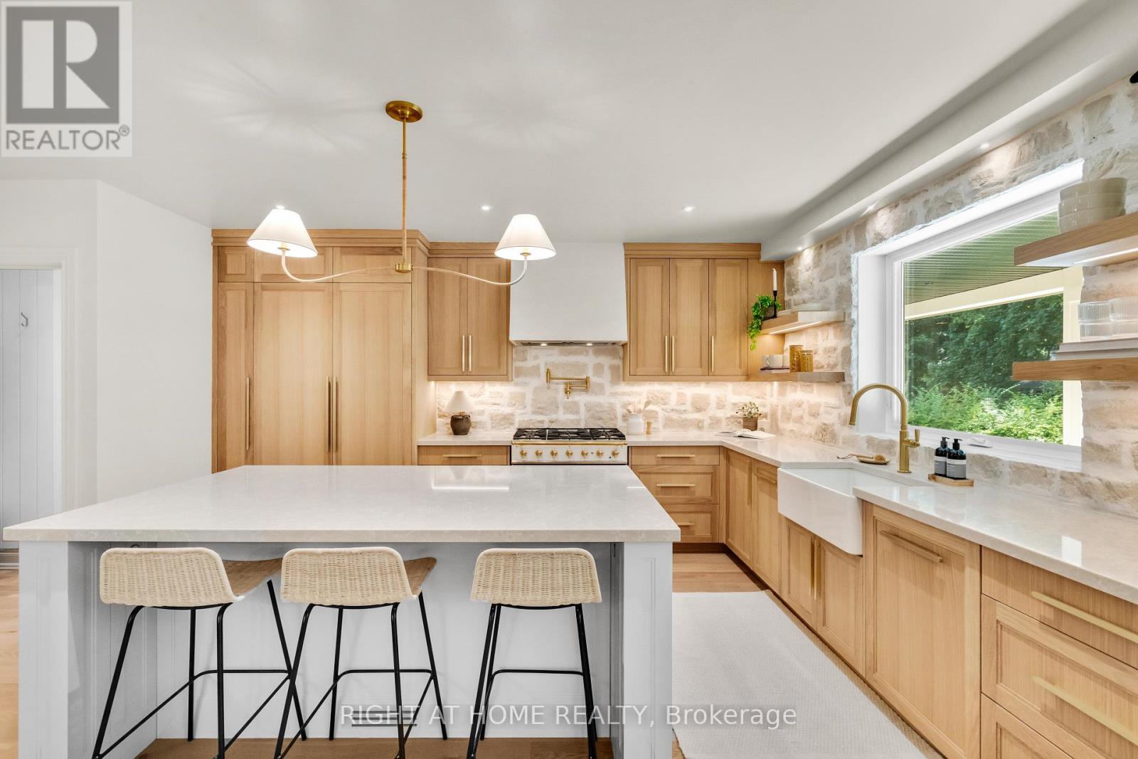 Welcome to 393 Hess Street South, a masterfully reimagined residence tucked away at the top of Hess Street South in Hamilton's prestigious Durand neighbourhood. Fully gutted and rebuilt with an uncompromising commitment to quality, this home is brand new from top to bottom while respecting the charm of its original façade. Every major component has been updated while every detail has been carefully considered; showcasing a high caliber of construction, design, and craftsmanship. On the main level, the layout was reconfigured to create a light-filled, open-concept space that seamlessly connects the kitchen, dining and family room. This bright and inviting design is perfectly tailored to how families live and gather today. Throughout the main and second levels, you'll find hardwood flooring, abundant accent lighting and flush Aria vents for a seamless, modern finish. The chef's kitchen is a showpiece with custom white oak cabinetry, rough cut stone backsplash, plaster vent hood and top-of-the-line appliances including integrated fridge, freezer, dishwasher and La Cornue gas range. A large rear addition on the second level was thoughtfully designed to create a spectacular primary suite with vaulted ceilings, a five-piece spa-inspired en-suite with heated floors, glass-enclosed shower, soaker tub, and a custom walk-in closet with built-in cabinetry. Three additional large bedrooms, two more full bathrooms, and a convenient second-floor laundry complete the upper level. Outside you will enjoy a new covered porch with a Banas stone floor, gas line and wiring for a TV - perfect for outdoor living, dining and taking in the lush and private rear yard. The home also features a fully finished, waterproofed basement with a 5th bathroom, making it ideal for additional living or recreation space. A home of this caliber and level of finishes has never before been seen in the Durand neighbourhood-truly a one-of-a-kind offering. (id:4555)