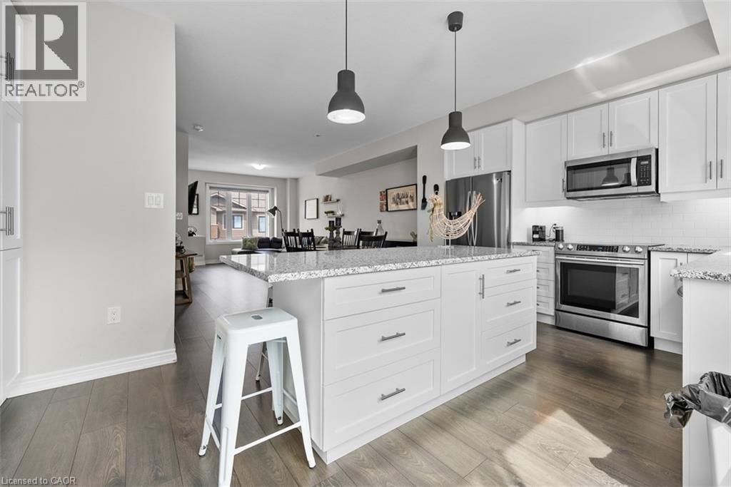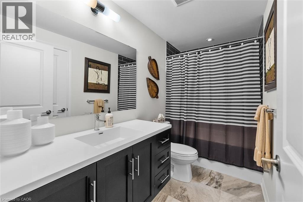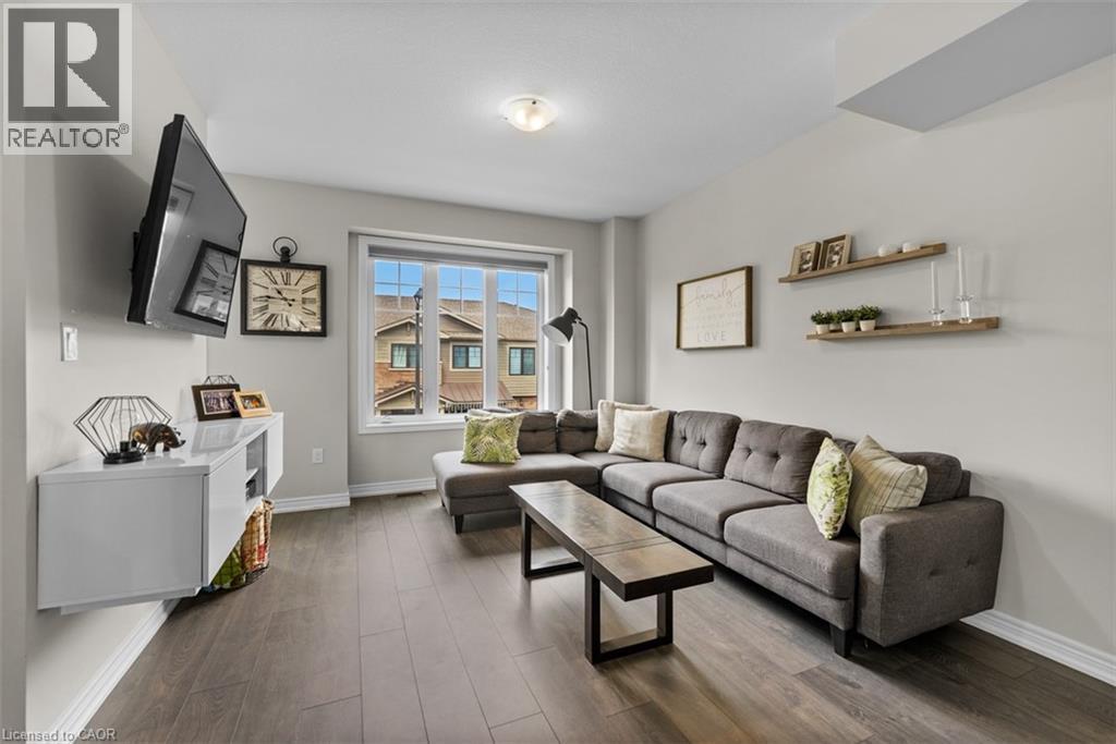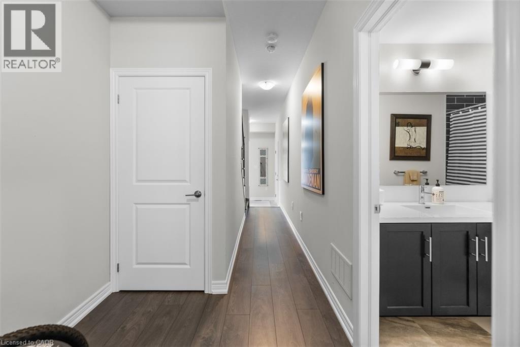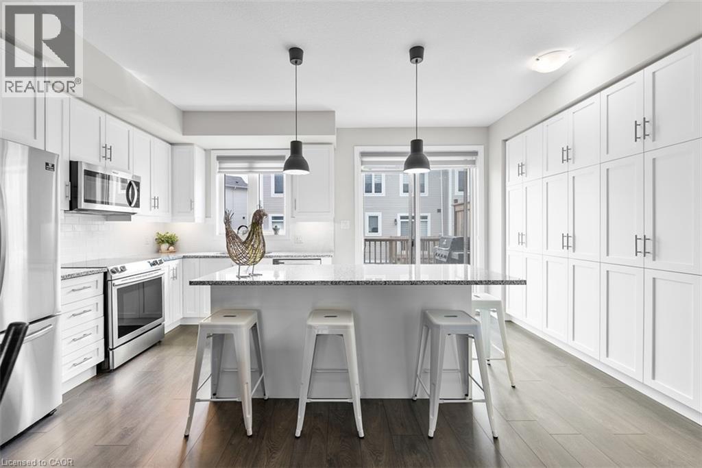 Rare 4 bedrooms 4 Baths Stunning 3 storey Upgraded Townhome in a sought after neighborhood of East Hamilton conveniently located close to public transportation, schools, GO Station, Hospital, Parks & Amenities. Welcome to modern living with open concept layout and large windows feeling the home with sunlight featuring 9 foot ceilings, carpet free floors on main & 2nd floor. The main floor features a Bedroom and full bathroom which can be used as in law suite or a private office with access to the garage, basement and backyard. The 2nd floor via oak stairs features a gourmet kitchen with lots of pantry space, quartz counter top with undermount sink, subway tile backsplash, valence lighting, a huge island with pendant lighting, access to patio deck, open to the living/dining room and powder room. The 3rd floor via oak stairs features 3 bedrooms , 2 full baths with quartz counter tops vanities & Stacked Laundry closet. This home provides modern lifestyle living with practical space and the unfinished basement ready for your personal touch. (id:4555)