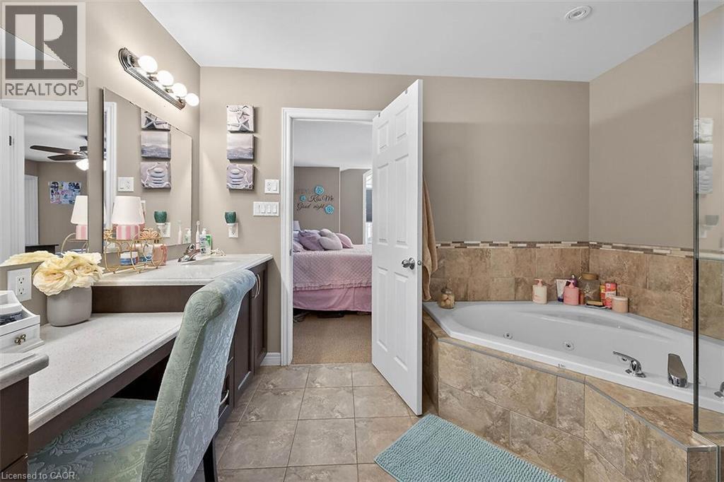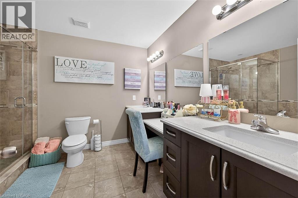 Solid custom-built home in a prime Hamilton Mountain location. The main level features an open-concept design with a spacious kitchen complete with granite countertops and upgraded cabinetry, a dining room with sliding doors leading to the rear yard, a comfortable living room with a gas fireplace, and a convenient bathroom. The second level offers four large bedrooms, including a generous primary bedroom with a walk-in closet, a five-piece ensuite, and second-floor laundry floor added convenience. The large basement provides excellent future potential with rough-ins in place for a recreation room, additional bedroom, and bathroom. Outside, enjoy a fully fenced backyard featuring a large deck and garden shed- perfect for entertaining or family living. Ideally located closed to schools, parks, public transit, shopping, and quick highway access, this home offers space, comfort, and long-term value in a highly desirable neighbourhood. (id:4555)