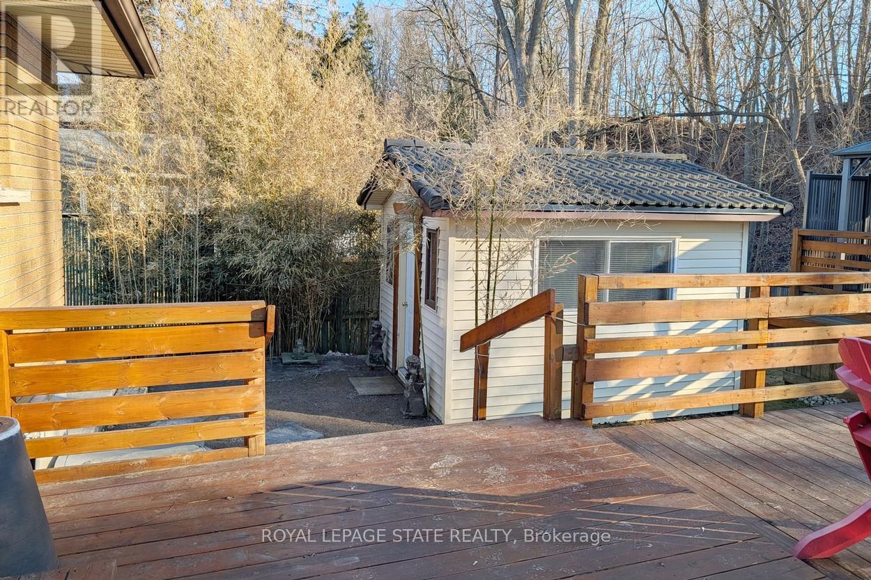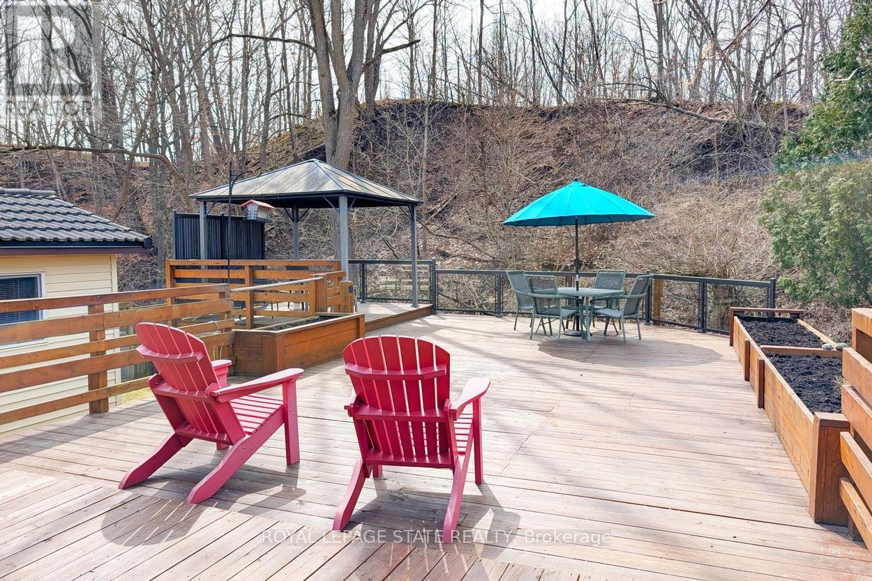 Peaceful, serene and private on a beautiful 181 ft. deep ravine lot overlooking your very own meandering stream. Check out this lovely downtown Dundas bungalow just minutes from everything. Wonderfully renovated throughout with premium finishes, top-quality design and workmanship. A prime example is the modern quartz kitchen. Here you'll find a super functional layout & brilliant use of space. This thoughtful attention to detail can be found throughout this home. It is an organizer's dream with storage solutions such as closets , cupboards and shelving that maximize organization and add to the sense of calm you find throughout this beautiful home. Other features include updated main bath, replacement windows & doors, quality metal roof, hardwood floors, double concrete drive and much more. The lower level boasts a bright & spacious suite with a private side entrance - perfect for a home office, multi-generational living or teen retreat. The family room even has a cozy gas fireplace. Last but not least is the wonderful rear yard and oversized deck overlooking the mature ravine lot and bubbling stream. Where else can you escape to your very own cottage right in downtown Dundas! Looking for a walkable small-town vibe? Then downtown Dundas is just the place with all its unique shops & stores, cafes, restaurants, foodie destinations, grocery stores, pharmacies, library and art galleries. Just a short drive to local conservation areas, waterfalls, RBG gardens and more. Plus, easy access to Highways #5, #6 and the 403/QEW. (id:4555)