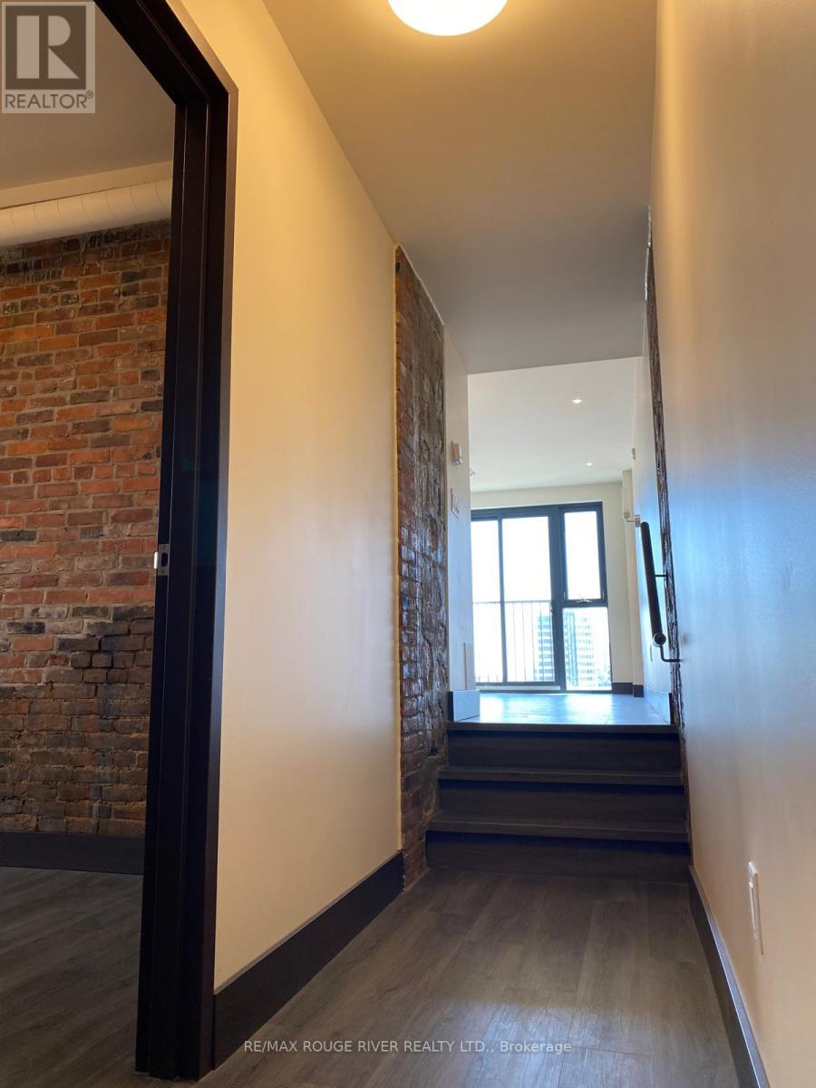 Exceptional downtown loft conversion, providing a nice blend of heritage features and modern touches in this beautifully appointed two-bedroom suite at Gore Park Lofts. The carefully restored historic building features exposed brick walls, huge windows and soaring ceilings. Kitchen is finished with quartz countertops, stainless steel appliances, custom cabinets, and peninsula breakfast bar. Built-in microwave and dishwasher are also included. Open-concept layout from kitchen to living area. Juliet balcony with great city/ skyline views. The suite includes in-suite laundry for added convenience plus a secure owned storage locker. Prime downtown location with easy access to scenic walking and biking trails plus key amenities including Hamilton General Hospital; Hamilton GO Centre; Jackson Square shopping mall; TD Coliseum; farmers' markets, independent cafes, top-rated restaurants and much more! (id:4555)
