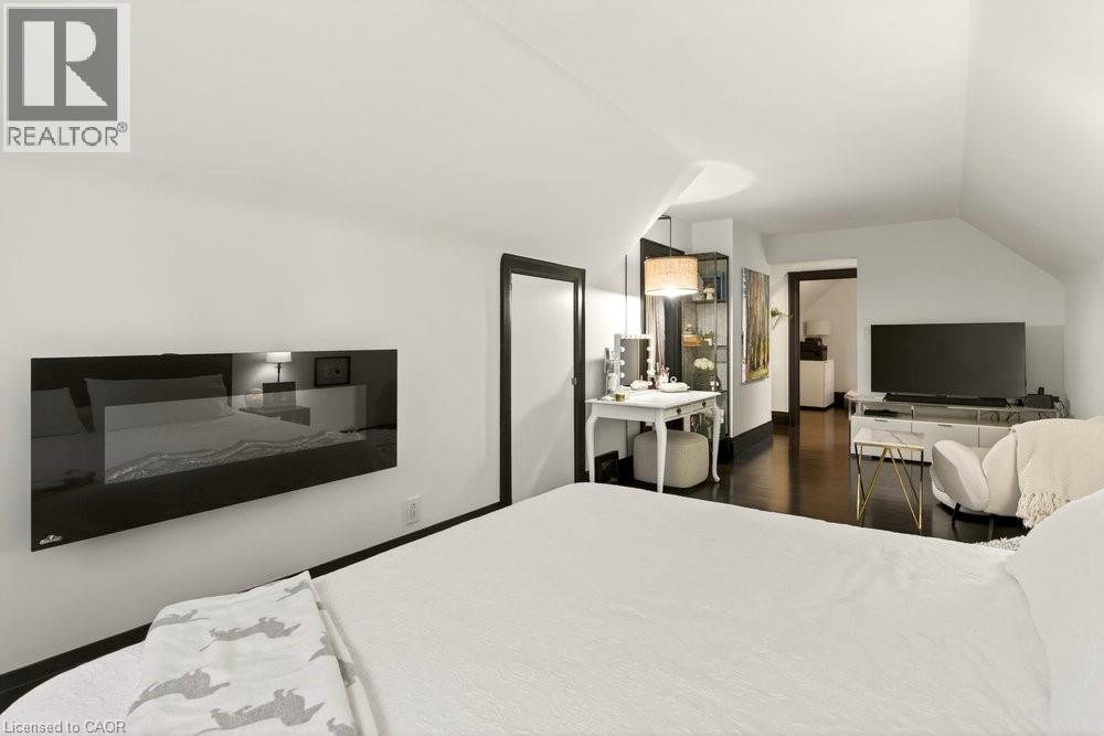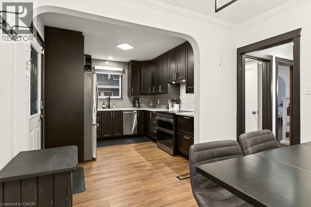 This beautifully updated 1¾-storey home is much larger than it appears and ideally located within walking distance to McMaster University, Westdale Village, schools, the Rail Trail, recreation centres, and GO access. Thoughtfully updated throughout, it blends timeless character with modern comfort and impressive versatility. Attractive curb appeal is enhanced by landscaped front gardens, while the fully fenced backyard with lawns and cement patio provides a private space to relax or entertain. Inside, the home is filled with natural light, fresh décor, and original details such as cove ceilings and gumwood trim. Stunning, professionally designed kitchen w/ built-in appliances, induction cooktop & double ovens, ample cabinetry, and a bright breakfast area with walkout to the enclosed porch and backyard. A main-floor bedroom (currently used as a dining room) and updated 4-piece bath allow for flexible or one-floor living. Upstairs are 2 bedrooms, including a spacious primary with w/in closet and electric fireplace, and updated 3-piece bath. This level offers both interior and separate exterior access—ideal for extended family or independent living. The finished lower level includes a bedroom, updated 3-piece bath, laundry, storage, and cabinetry with sink and fridge, offering in-law or kitchenette potential. The attached garage has an inside private entry to the basement for a private living area. A rare opportunity featuring location, flexibility, and updates, in a great West Hamilton neighbourhood! (id:4555)