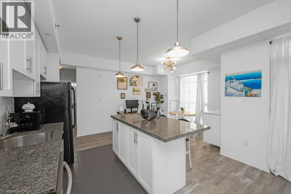 Welcome to City Square @ 90 Charlton Ave West, located in one of Hamilton’s most sought-after neighbourhoods! This bright and stylish 1-bedroom + den corner unit offers 777 sq ft of thoughtfully designed living space with soaring 9'3 ceilings and a functional open-concept layout. Spacious kitchen complete with granite countertops, tile backsplash and large island w/ pendant lighting, perfect for entertaining or relaxing at home. Upgraded laminate and ceramic flooring throughout adds modern flair, while the generously sized bedroom and versatile den offer flexibility for work-from-home or guest space. Step out onto your private 97 sq ft balcony for morning coffee or an evening unwind. Convenience is key with in-suite laundry, a dedicated parking space, storage locker, and access to fantastic building amenities including a party room, fitness centre, and bike storage. Enjoy efficient year-round comfort with eco-friendly geothermal heating and cooling. Just minutes to highway access, GO Station, St. Joseph’s Hospital, parks, schools, and all that downtown Hamilton has to offer. Ideal for first-time buyers, professionals, or downsizers. (id:4555)