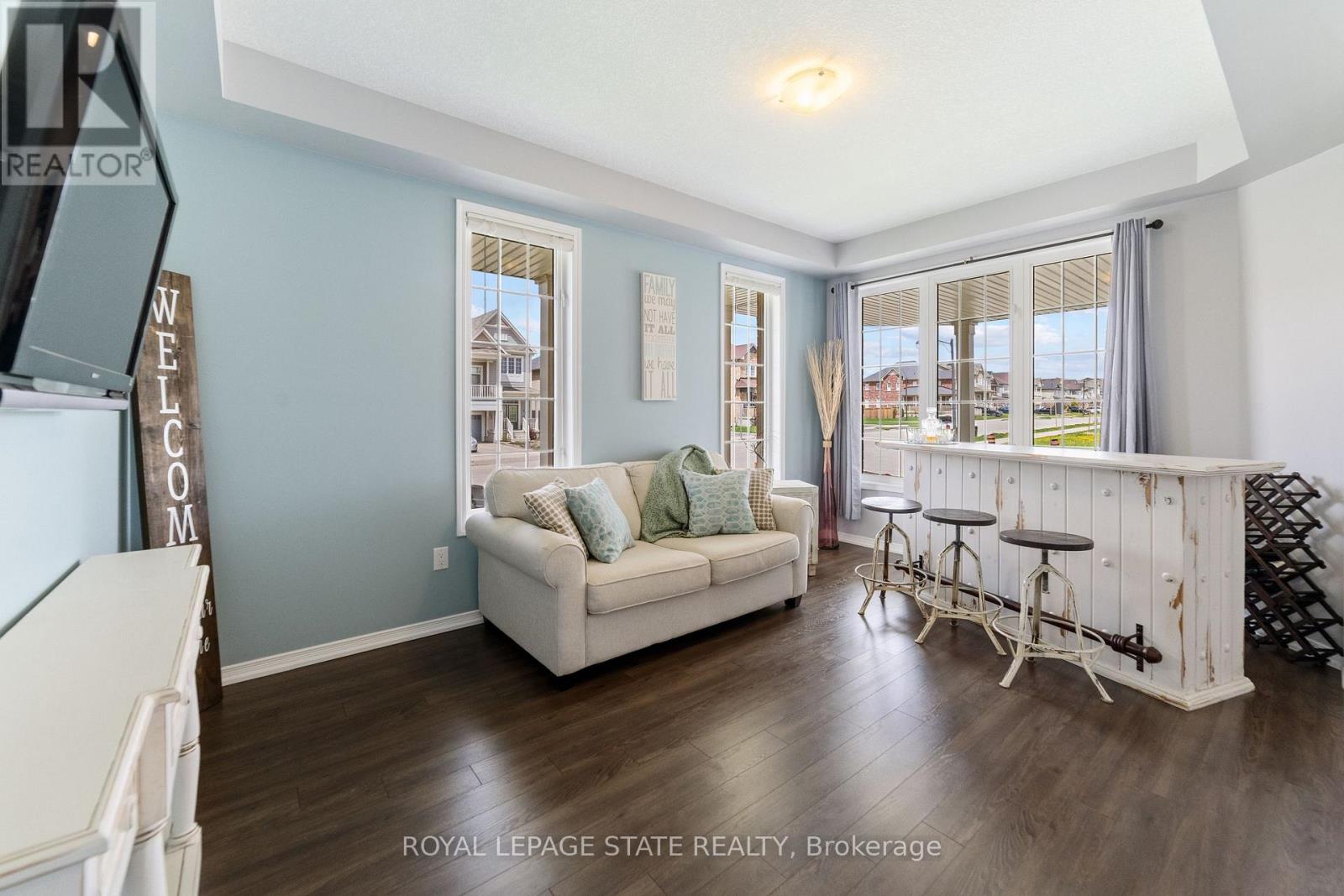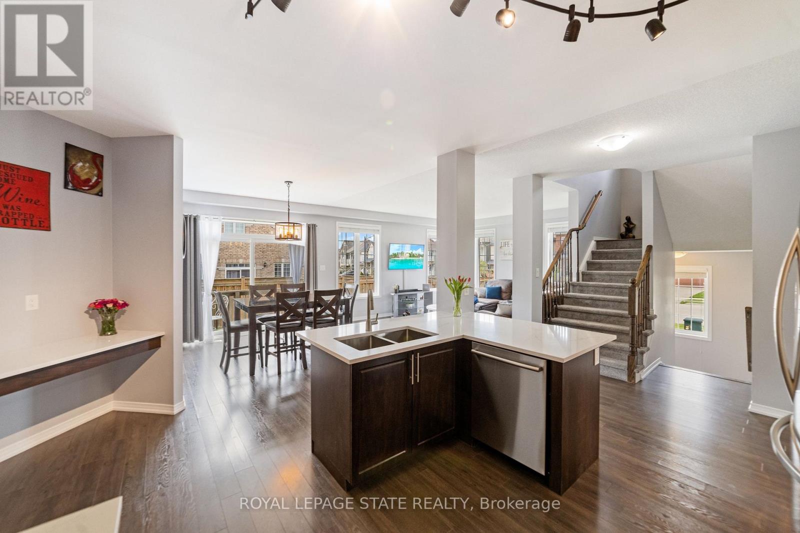 Welcome to this beautifully maintained & charming four-bedroom, three-bathroom home, ideally situated on a spacious corner lot, highlighted by a classic wrap-around porch. From the moment you arrive, the striking double front-door entry sets the tone for the warm & inviting interior. Inside, a bright open-concept main level flows seamlessly, creating a cohesive & functional layout ideal for modern family living. Neutrally painted throughout, the home features stylish laminate flooring across the main level & updated carpet installed in 2025 on the upper floor, adding comfort & continuity throughout. A versatile dining room provides flexibility to serve as a secondary family room or play area, while a dedicated office provides the perfect space for working from home. The heart of the home is the sleek, contemporary kitchen, complete with quartz countertops(2025), a walk-in pantry, & a built-in coffee nook. Large sliding glass doors extend the living space outdoors to a spacious, unspoiled backyard-a blank canvas with endless potential for entertaining or gardening. Interior access to the two-car garage from the kitchen adds everyday convenience. Upstairs, 4 bedrooms feature comfort & privacy for the entire family. The spacious primary bedroom is a true retreat, featuring two walk-in closets & a well-appointed ensuite with a soaker tub, double sinks, & a separate shower. The 1,200+ sq. ft. unfinished bsmt provides outstanding future potential & is already equipped with an entertainment system including a projector, screen, & sound system. Additional valuable features throughout the home include a built in central vacuum, an air exchanger, & a wired-in alarm system, providing both comfort & peace of mind. Ideally located close to schools, parks, & shopping, this exceptional home combines thoughtful upgrades, functional design, & a prime location. This is a fantastic opportunity to own a truly move-in-ready family home in one of the area's most sought-after communities. (id:4555)