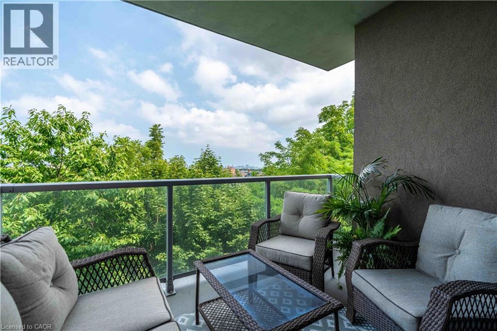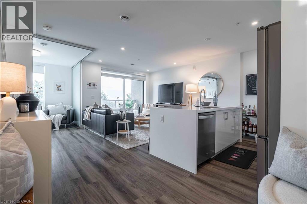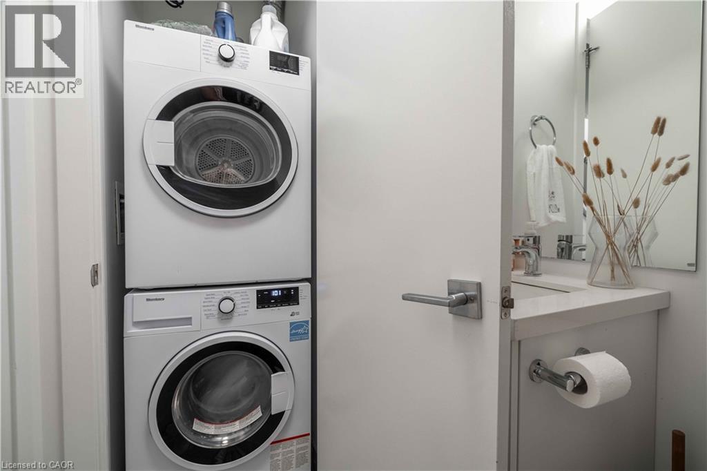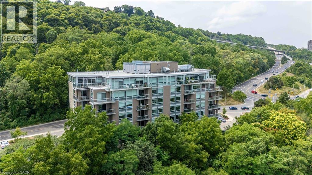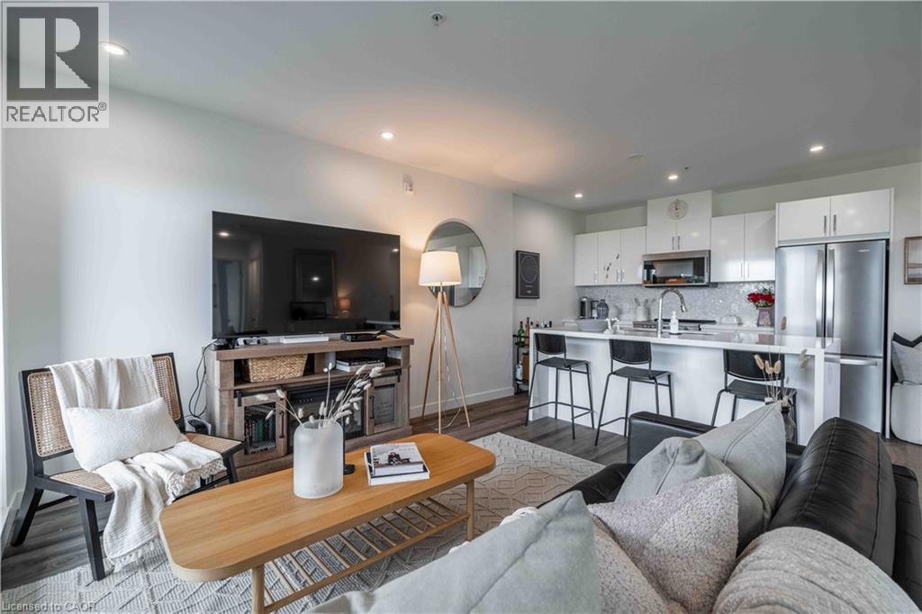 This beautifully finished “Spruce” model in Vista 3 Condos offers a well-designed two-bedroom, two-bathroom layout in one of Hamilton’s most sought-after locations. Nestled in the vibrant Stinson neighbourhood at the base of the escarpment, this unit combines modern comfort with everyday convenience. The open-concept living and dining area is bright and welcoming, anchored by a stylish kitchen featuring a white quartz island with a waterfall edge, stainless steel appliances, and ample cabinetry. Thoughtful upgrades throughout the unit include pot lights, a neutral and timeless colour palette, custom window coverings, durable laminate flooring, and in-suite laundry for added ease. Step out onto the covered balcony and take in sweeping city views, perfect for morning coffee or evening unwinding. The spacious primary bedroom offers a walk-in closet and a private four-piece ensuite, while the second bedroom is ideal for guests, a home office, nursery and more! Residents enjoy access to well-maintained building amenities including a fitness centre, party room, and visitor parking. The unit also comes complete with one underground parking space and a locker. Conveniently located close to major hospitals, public transit, parks, and local amenities, this is a fantastic opportunity to own a turnkey condo in a growing and desirable community! (id:4555)