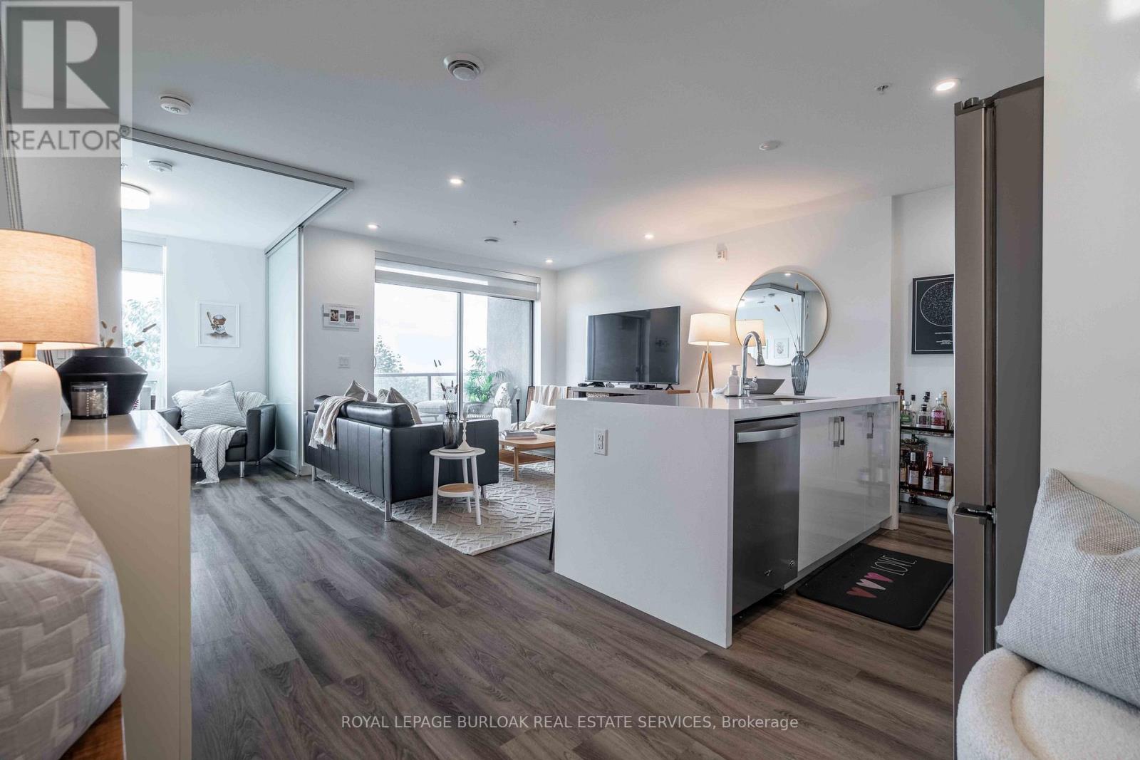 This beautifully finished "Spruce" model in Vista 3 Condos offers a well-designed two-bedroom, two-bathroom layout in one of Hamilton's most sought-after locations. Nestled in the vibrant Stinson neighbourhood at the base of the escarpment, this unit combines modern comfort with everyday convenience. The open-concept living and dining area is bright and welcoming, anchored by a stylish kitchen featuring a white quartz island with a waterfall edge, stainless steel appliances, and ample cabinetry. Thoughtful upgrades throughout the unit include pot lights, a neutral and timeless colour palette, custom window coverings, durable laminate flooring, and in-suite laundry for added ease. Step out onto the covered balcony and take in sweeping city views, perfect for morning coffee or evening unwinding. The spacious primary bedroom offers a walk-in closet and a private four-piece ensuite, while the second bedroom is ideal for guests, a home office, nursery and more! Residents enjoy access to well-maintained building amenities including a fitness centre, party room, and visitor parking. The unit also comes complete with one underground parking space and a locker. Conveniently located close to major hospitals, public transit, parks, and local amenities, this is a fantastic opportunity to own a turnkey condo in a growing and desirable community! (id:4555)