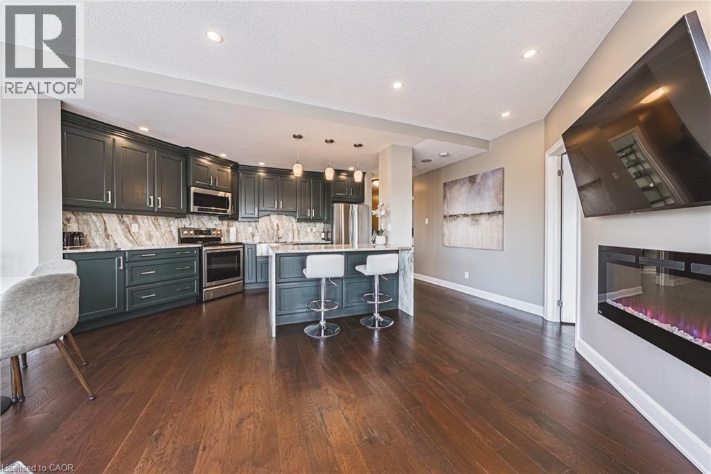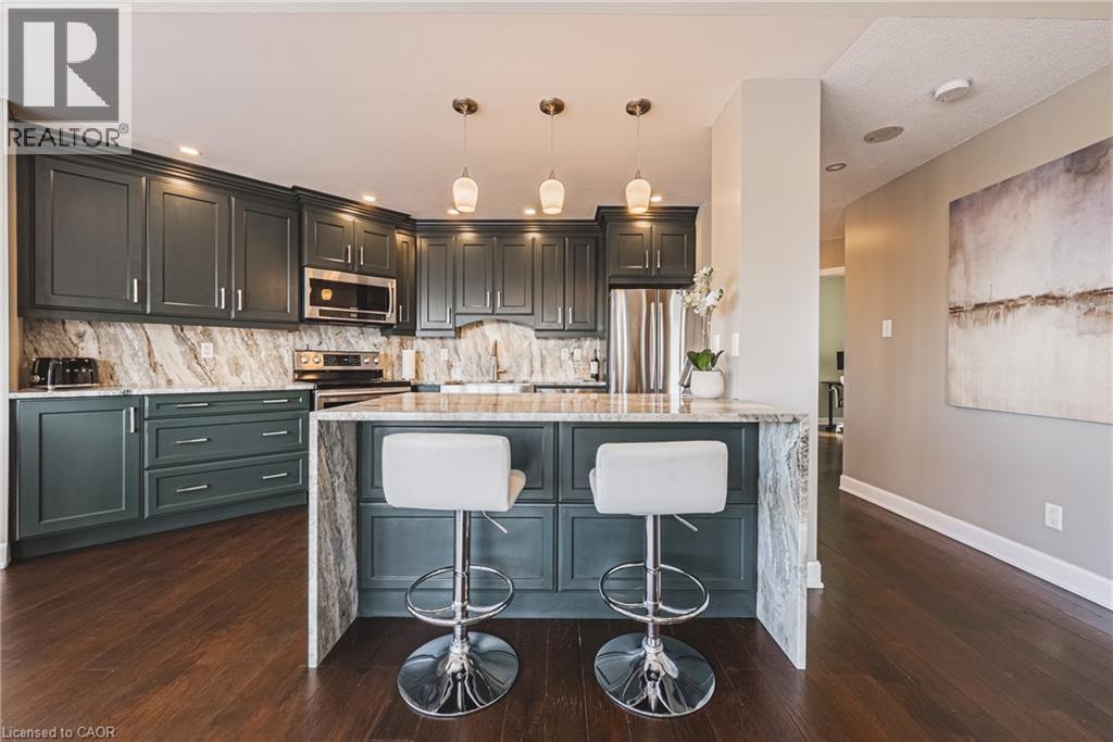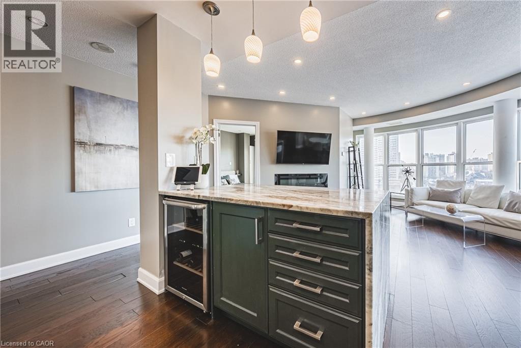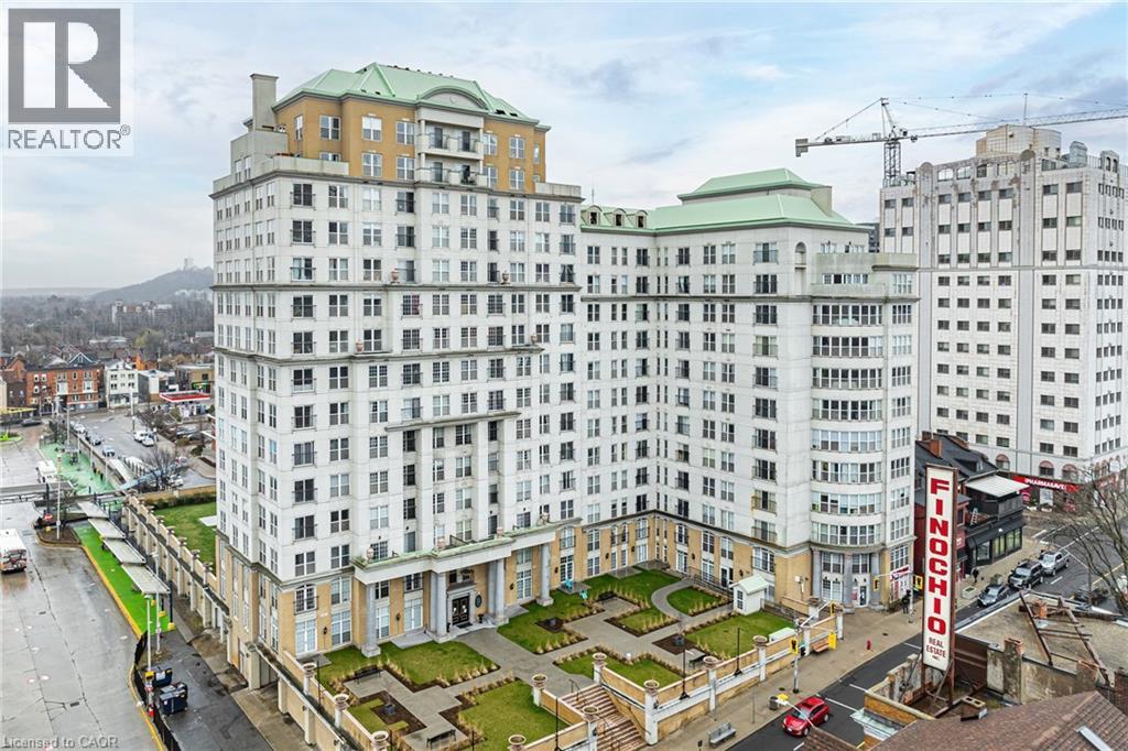 Welcome to one of Hamilton's most iconic residences, the illustrious Chateau Royale where everyday is elevated. Inside, you will find an exceptional unit anchored by a dramatic, floor-to-ceiling semi-circular window. An architectural statement that frames the skyline like a custom curated work of art. By day, natural light pours in and wraps the room in warmth. By night, the city becomes a living canvas, suspended just beyond the glass. Engineered hardwood flooring throughout delivers a warm, sophisticated foundation for this spaces modern design. The kitchen is finished with premium Italian granite countertops that wrap seamlessly around sleek, modern cabinetry, creating a refined, cohesive design that balances warmth with contemporary elegance. Walking distance to the Hamilton GO, hospitals, schools, bus routes, and the trendiest restaurants Hamilton has to offer. A combination of view, square footage, and location that is rarely offered at this price point. (id:4555)