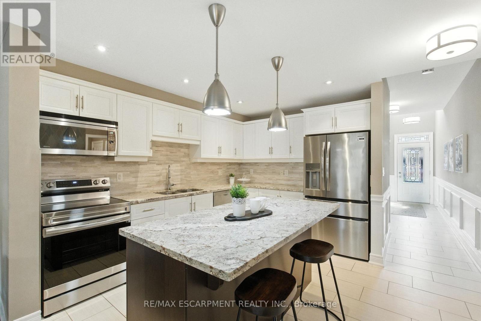 Welcome to 4 Burgundy Grove, an executive-style bungaloft designed for those looking to downsize without compromise. With exterior maintenance taken care of, you can relax and enjoy almost 1,700 sq ft of elegant living space paired with a finished lower level for added versatility. The main floor offers a thoughtful layout with a primary suite featuring two closets and a spacious five-piece ensuite, ensuring comfort and convenience. At the front of the home, a bright office/den or sitting room and a two-piece powder room create the perfect work-from-home or guest-friendly space. The open-concept kitchen, dining and living area is ideal for entertaining, flowing seamlessly onto a private patio with wrought iron fencing overlooking peaceful greenspace. Upstairs, the loft level presents a large family room and a second generously sized bedroom with its own ensuite, perfect for guests or extended family. The finished basement extends the living space with a second family room, two additional bedrooms, a full bathroom and plenty of storage. Located in Ancaster's sought-after Meadowlands community, this home is close to shopping, dining, and everyday conveniences, with easy highway access for commuters. RSA. (id:4555)
