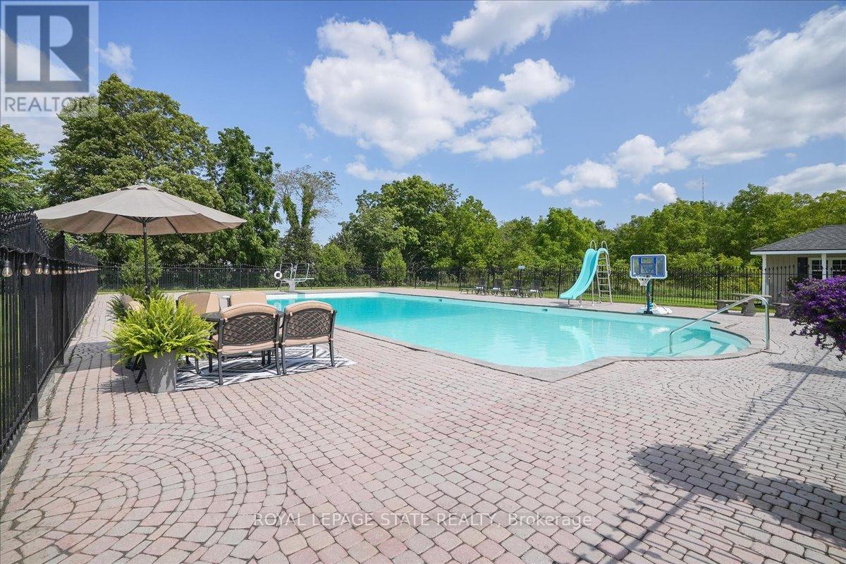 Perched atop the breathtaking Niagara Escarpment, this exceptional home offers seasonal panoramic views of Lake Ontario and the Toronto skyline. Rarely available, it features over 5,100 sq. ft. of beautifully finished living space across three levels, showcasing thoughtful design and custom craftsmanship throughout. Enjoy private access to the Bruce Trail, with waterfalls and scenic hikes just steps from your backyard - a nature lover's dream without sacrificing city convenience. The main floor blends elegance and warmth with new hardwood floors, a custom staircase, and stylish lighting. A formal living room with a wood-burning fireplace flows into a dining room made for entertaining. The chef-inspired kitchen with custom cabinetry opens to a welcoming family room with a new gas fireplace. Upstairs offers four spacious bedrooms, including a luxurious primary suite with a walk-in closet, spa-like ensuite, and private balcony - perfect for peaceful morning views. The bright, fully finished lower level features large windows, custom woodwork, a gas fireplace, bedroom, kitchenette, and separate entrance, ideal for in-law, nanny, or multi-generational living. Explore the potential to sever a second lot or add an auxiliary unit. Outside, your private retreat awaits with a 30 x 60 in-ground pool (16 ft. deep), wrought iron fencing, pool house, and custom shed - perfect for summer entertaining. Recent updates include power blinds, 2023 HVAC systems, refreshed porch, and pool and landscape upgrades. A rare escarpment gem where nature, privacy, and luxury meet. (id:4555)