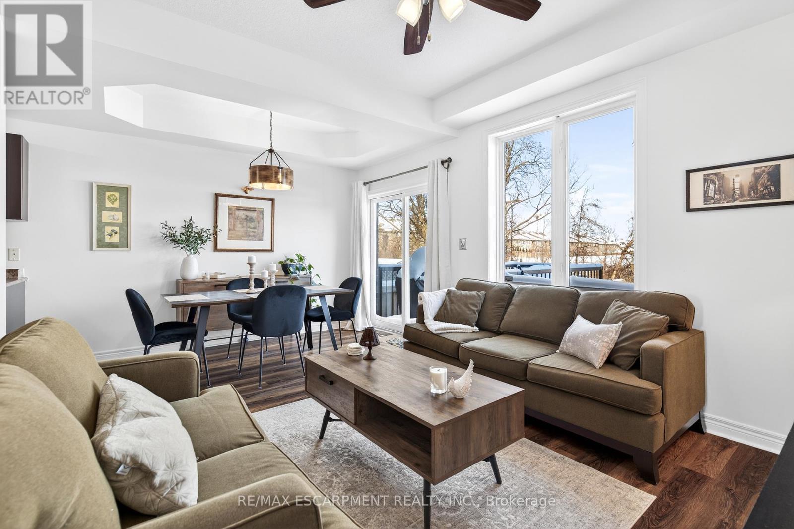 Welcome home to this beautifully updated two-storey freehold townhome, perfectly set in a family-friendly neighbourhood surrounded by upscale homes. With gorgeous curb appeal and a private, backing onto scenic open green space, this property offers the ideal blend of comfort, style, and location. Step inside to a freshly painted interior (2025) featuring coffered ceilings in the dining room and a thoughtful layout designed for everyday living and entertaining. The kitchen shines with all new appliances (2024), while new carpeting throughout (2024) adds warmth and a fresh, move-in-ready feel. Upstairs, the spacious primary bedroom boasts a large walk-in closet plus an additional closet, while the second bedroom also features its own walk-in closet. The finished basement provides valuable extra living space for a rec room, home office, or gym. Outside, enjoy your own private retreat with a two-tiered deck, stone patio, and garden, ideal for summer entertaining or quiet evenings outdoors. Added conveniences include interior garage access, backyard access directly from the garage, and a double driveway that is rare and highly sought after. This is the one you've been waiting for- move-in ready, beautifully updated, and perfectly located. (id:4555)