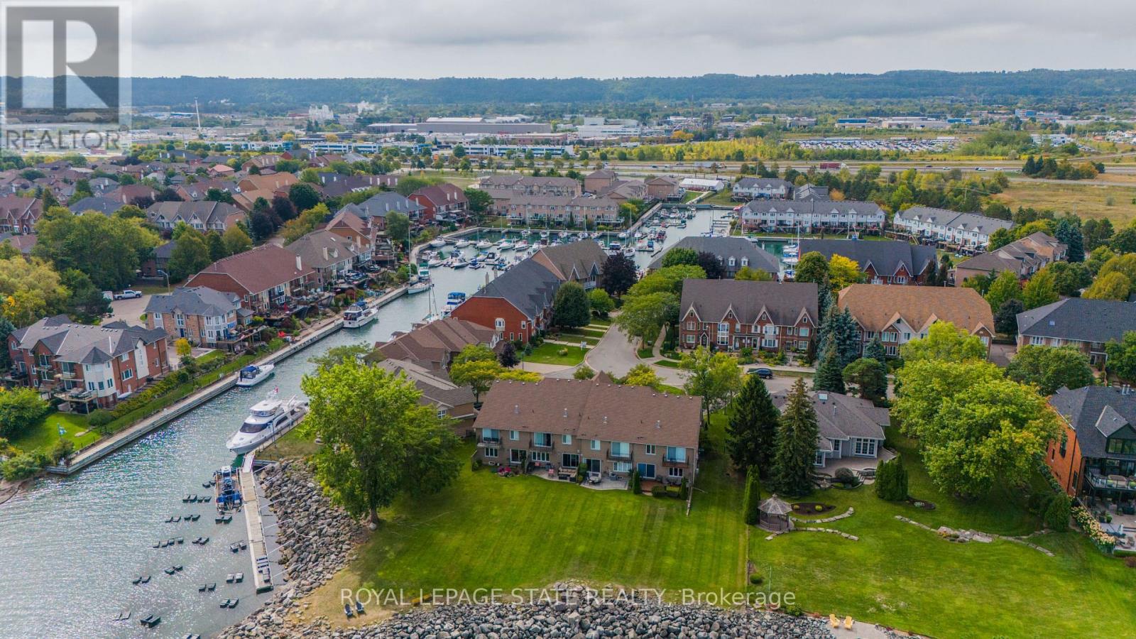 Experience unparalleled lakefront living with this stunning Newport Yacht Club residence, offering breathtaking views from nearly every room. Perfectly situated for boating enthusiasts with private mooring just steps from your door, yet with effortless QEW access for commuting. This "linked" townhome lives like a detached home, sharing no common walls and features parking for six, including a full double garage. The open concept main level is designed for both style and comfort, boasting an updated kitchen with quartz counters, crown molding, hardwood floors, a gas fireplace, and a separate dining room. Sliding doors lead to an expansive patio and a beautifully landscaped 100-foot yard, flowing to a private waterfront patio, ideal for sunrise coffees or evening sunsets over Lake Ontario. Upstairs, find three generous bedrooms, a home office, bedroom-level laundry, two fully updated bathrooms, and a primary suite with a second gas fireplace and private balcony showcasing panoramic lake and Toronto skyline views. Recent upgrades include new counters, sinks, faucets, roof, furnace, AC, light fixtures, and window treatments. A finished lower level with walk-up access adds versatile living space. Rarely available, this exceptional home offers a true waterfront lifestyle where every day feels like a getaway. (id:4555)
