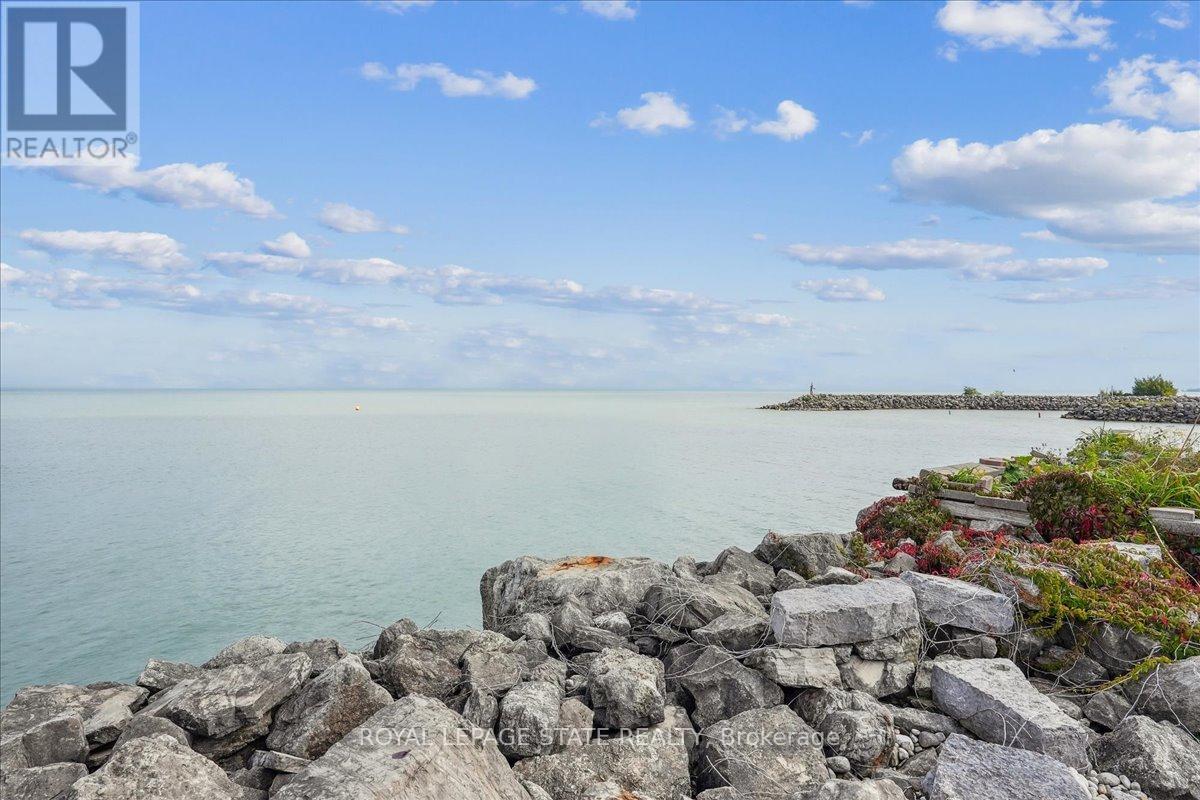 Experience unparalleled lakefront living with this stunning Newport Yacht Club residence, offering breathtaking views from nearly every room. Perfectly situated for boating enthusiasts with private mooring just steps from your door, yet with effortless QEW access for commuting. This "linked" townhome lives like a detached home, sharing no common walls and features parking for six, including a full double garage. The open concept main level is designed for both style and comfort, boasting an updated kitchen with quartz counters, crown molding, hardwood floors, a gas fireplace, and a separate dining room. Sliding doors lead to an expansive patio and a beautifully landscaped 100-foot yard, flowing to a private waterfront patio, ideal for sunrise coffees or evening sunsets over Lake Ontario. Upstairs, find three generous bedrooms, a home office, bedroom-level laundry, two fully updated bathrooms, and a primary suite with a second gas fireplace and private balcony showcasing panoramic lake and Toronto skyline views. Recent upgrades include new counters, sinks, faucets, roof, furnace, AC, light fixtures, and window treatments. A finished lower level with walk-up access adds versatile living space. Rarely available, this exceptional home offers a true waterfront lifestyle where every day feels like a getaway. (id:4555)