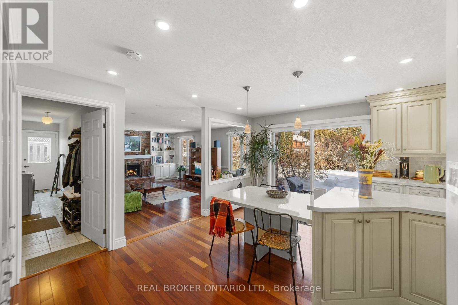 Welcome to an exceptional, thoughtfully updated and impeccably maintained home located in the highly sought-after Lover's Lane area of Ancaster. This timeless residence offers a rare combination of quality craftsmanship, thoughtful design, and resort-style amenities. The heart of the home is a custom chef's kitchen featuring premium built-in appliances, stone countertops, and an oversized island, seamlessly flowing into warm and inviting living spaces accented by Brazilian cherry hardwood floors, custom built-ins, and elegant finishes throughout. Beautifully updated bathrooms and a private home office add everyday luxury and functionality. The fully finished lower level is an entertainer's dream with a wet bar, recreation room, sauna, and massage tub. Enjoy added peace of mind with heating and air conditioning updated within the last 1-2 years. Step outside to a private, spa-inspired backyard complete with an in-ground pool, gazebo, multiple decks, and mature trees offering exceptional privacy. Ideally located just minutes from the Ancaster Memorial Arts Centre, weekly farmers' market, Ancaster Village and Pub, and some of the area's most highly regarded restaurants. Freshly painted inside and out, this is a truly turnkey opportunity in one of Ancaster's most prestigious neighbourhoods, offering outstanding value for the quality of finishes and lifestyle. (id:4555)