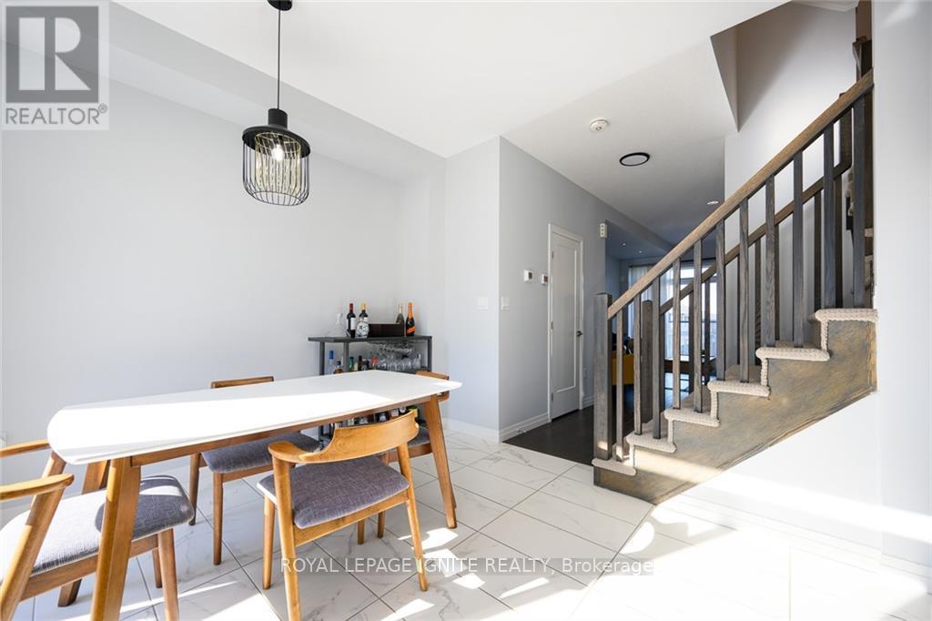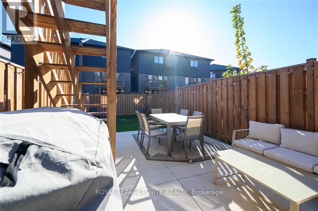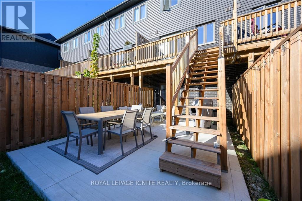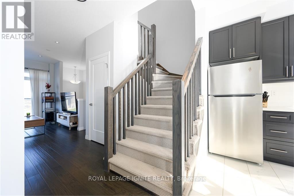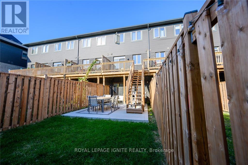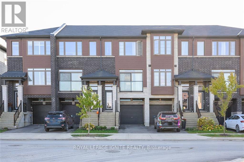 Welcome to 23 Soho Street, a stunning modern townhome available for lease in one of Upper Stoney Creek's most desirable communities. This 3-storey home offers approximately 1,230 square feet of stylish, functional living space, perfectly suited for young professionals or a growing family seeking a low-maintenance lifestyle. Featuring a bright, open-concept main living area highlighted by sleek dark flooring and large windows that flood the space with natural light. The contemporary kitchen is designed for both cooking and entertaining, with dark cabinetry, stainless steel appliances, and ample counter space that flows effortlessly into the living and dining areas. Step out onto the balcony for fresh air, or enjoy the private patio with a fenced backyard that's perfect for summer relaxation. The upper level features three spacious bedrooms and two full bathrooms, including an ensuite with the primary bedroom, offering a comfortable retreat for everyone in the household. With a single car garage plus driveway parking, you have convenient space for two vehicles. Located in a vibrant neighbourhood, you are just moments away from top-rated schools, parks, shopping, and restaurants as well as quick access to the Red Hill Valley Parkway and the LINC.Don't miss this! (id:4555)