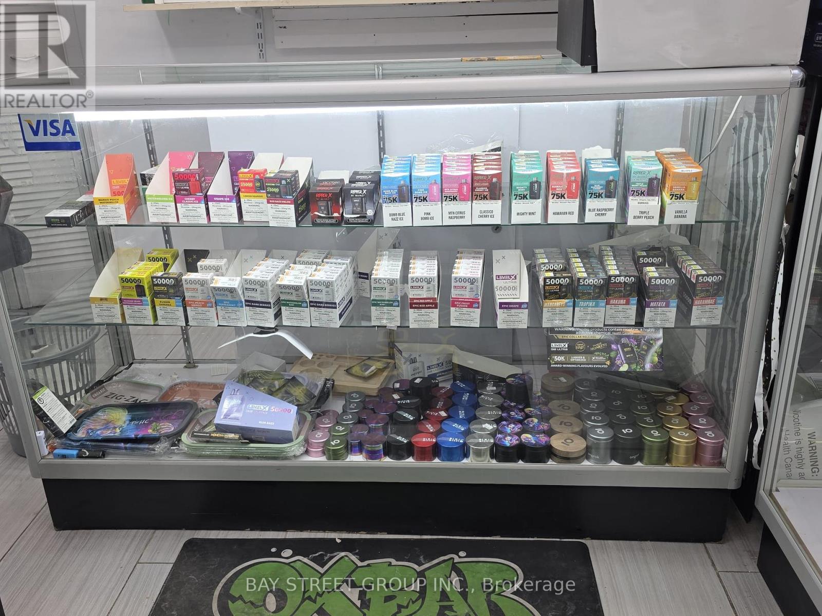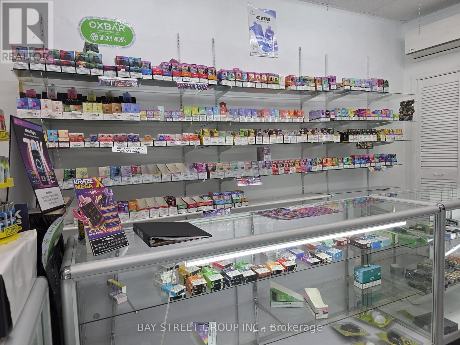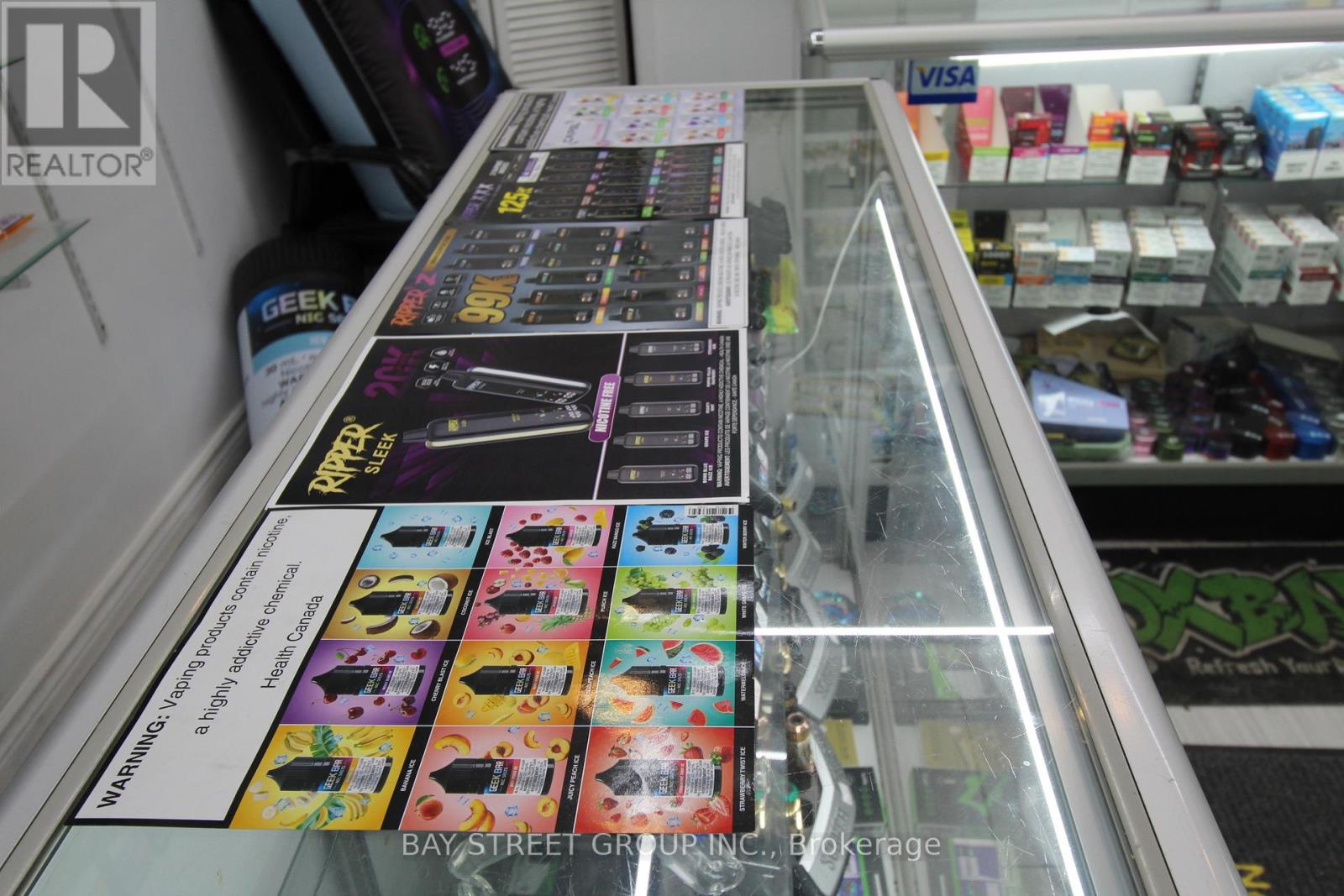Excellent opportunity to own and operate a profitable vape retail business in a prime, high-visibility downtown Hamilton location. Situated directly across from McMaster University CCE and beside The Standard Fine Dining Restaurant (open late), this store benefits from steady pedestrian traffic and strong surrounding anchors including Gino's Pizza, Popeyes, and Subway. A high-rise office building directly across the street adds additional daily customer flow.This easy-to-manage 402 sq. ft. retail space generates approximately $20,000 in monthly gross sales ($5,000 weekly). Monthly rent is $2,347 including TMI and HST, with utilities averaging about $250 per month. The current lease runs through 2029 with an option to renew. Flexible operating hours with no restrictions for extended hours to further boost revenue. Ideal for an entrepreneur looking to be their own boss and grow an already successful operation. Add your ideas and scale the business to the next level. A turnkey opportunity with strong fundamentals and long-term income potential. (id:4555)
