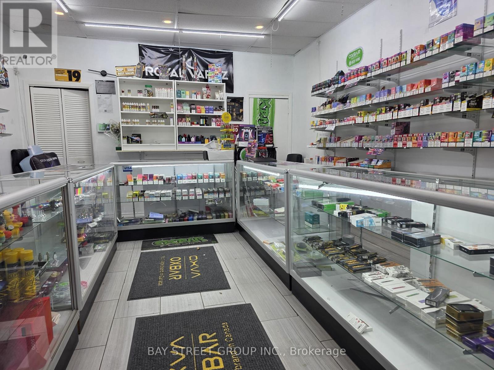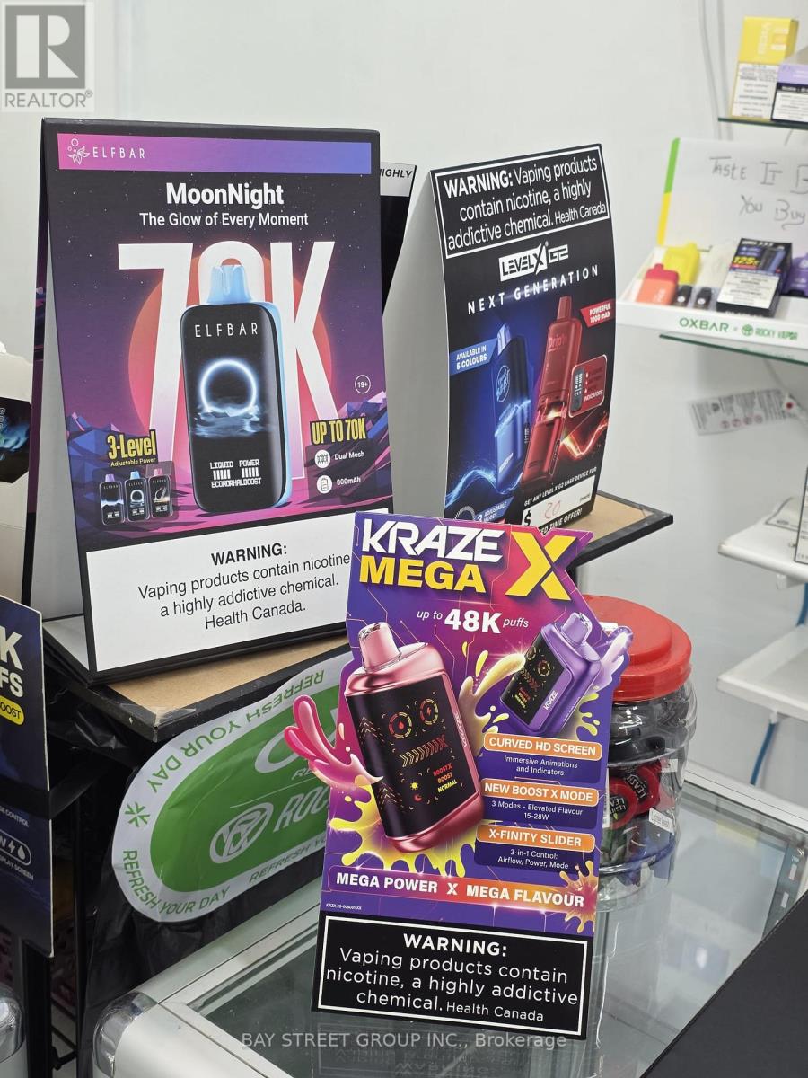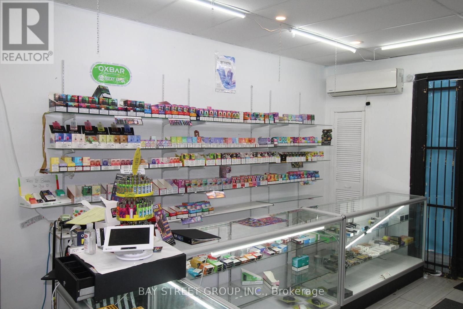 Excellent opportunity to own and operate a profitable vape retail business in a prime, high-visibility downtown Hamilton location. Situated directly across from McMaster University CCE and beside The Standard Fine Dining Restaurant (open late), this store benefits from steady pedestrian traffic and strong surrounding anchors including Gino's Pizza, Popeyes, and Subway. A high-rise office building directly across the street adds additional daily customer flow.This easy-to-manage 402 sq. ft. retail space generates approximately $20,000 in monthly gross sales ($5,000 weekly). Monthly rent is $2,347 including TMI and HST, with utilities averaging about $250 per month. The current lease runs through 2029 with an option to renew. Flexible operating hours with no restrictions for extended hours to further boost revenue. Ideal for an entrepreneur looking to be their own boss and grow an already successful operation. Add your ideas and scale the business to the next level. A turnkey opportunity with strong fundamentals and long-term income potential. (id:4555)