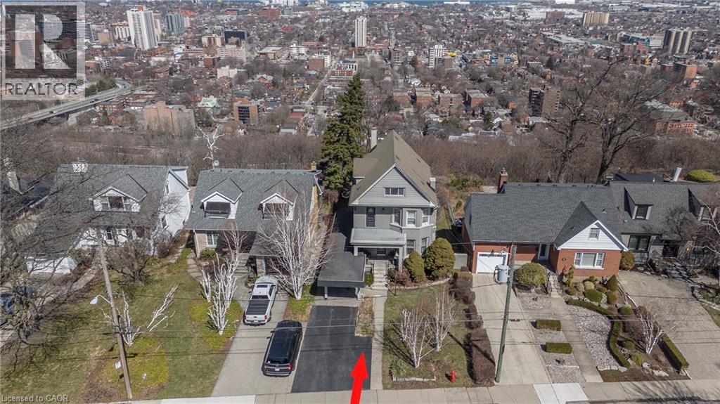 EXCEPTIONAL CHARACTER, CENTURY HOME WITH EXCEPTIONAL MOUNTAIN TOP PRIVATE VIEWS OF THE CITY AND BEYOND. This AMAZING well maintained home sits at the brim of Hamilton Escarpment, with breathtaking views right out to Lake Ontario including magical sunsets, twinkling stars and the lights of the city from your home. Enjoy morning coffee or evening wine on the large covered porch. Prepare to be wowed when you step inside with the charm and character of this 1905 CIRCA home with all the right updates & conveniences to make it the perfect family home. This home exudes character and elegance with black walnut floors, wood beam ceilings, original banisters, tall baseboards, stained glass and beautiful door trim just to name a few. The main flr offers a Liv Rm w/bay window & FP open to the Din Rm which allows plenty of space for family gatherings or entertaining. The Kitch boasts S/S appliances, plenty of timeless white cabinets and counter space. This floor is complete with a sitting rm w/FP overlooking the breathtaking views & W/O to the backyard, a 3 pce bath and a mud rm with access from your covered parking. Upstairs offers 3 spacious beds, 4 pce bath & a beautiful den/liv rm combo overlooking the city and Lake Ontario. The front bedrm offers a bay window w/great views. The bath will make you feel like you are at the spa everyday with a soaker tub, double sinks and elegant lighting. BONUS 3rd flr could make a perfect master retreat, or an inspiring extra living for hobbies. Outstanding views here again, another 4 pce bath and a kitchenette make it perfect for adult children still at home or in-laws needing their own space. The backyard offers plenty of space to entertain and is another perfect place to enjoy all the views this home has to offer!!! This home checks ALL THE BOXES. It is located in a 10+ neighbourhood, on this exclusive Hamilton brow street, close to all conveniences, great walking. Inspiration, elegance & charm, all in one. MUST SEE!!!!! (id:4555)