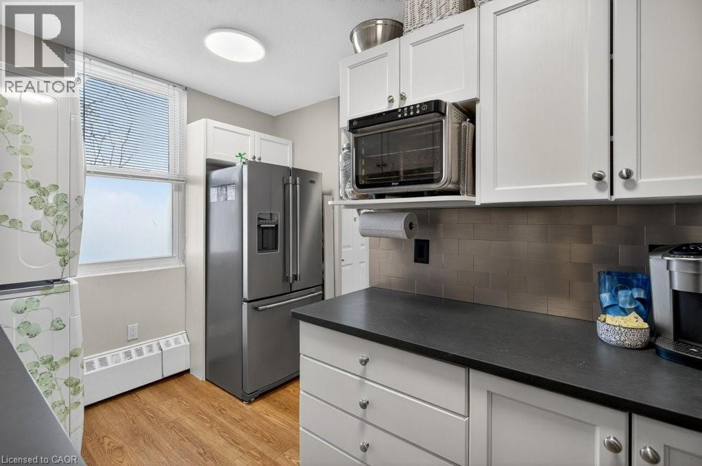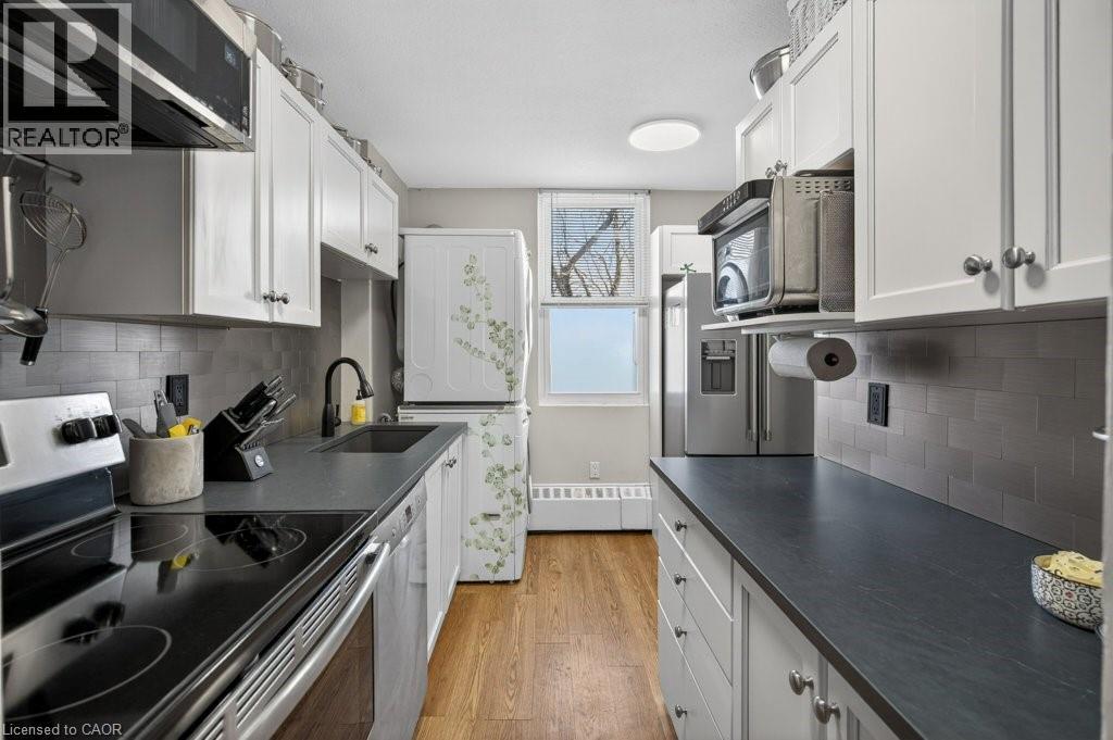 Welcome to this bright and unique two-storey condo apartment that offers the space and layout of a townhouse with the ease of condo living. Featuring both east and west exposure, this well-designed unit is filled with natural light throughout the day. The main level offers a welcoming front foyer with ample storage and a functional kitchen complete with modern quartz countertops, double sink, built-in microwave, and built-in dishwasher. The open-concept living and dining area is ideal for everyday living and entertaining, with direct access to a private balcony that is perfect for morning coffee or relaxing at the end of the day. A generous under-stair storage closet and in-suite laundry add everyday convenience. Upstairs, you will find three spacious bedrooms, each with its own closet, along with a modern and stylish four-piece bathroom. Additional upgrades include double-hung windows and an owned water heater. Beginning in May the condo fees include Bell Fibe with 1.5 fibre internet and a cable package with over 300 channels for only a $46+HST increase. This unit includes an exclusive underground parking space and a separate storage locker. Residents enjoy an impressive range of amenities, including a community garden with optional plot rental, BBQ rental area, party and meeting room, bicycle storage, playground, basketball court, additional on-site laundry facilities, and beautifully maintained grounds. Ample visitor parking is available, and the building is pet-friendly, allowing up to two pets with no weight restrictions on dogs, along with a designated dog elevator for added convenience. Ideally located with easy access to the Red Hill Valley Parkway and public transit, this home offers excellent value, lifestyle, and accessibility. A fantastic opportunity not to be missed. Schedule your private showing today. (id:4555)