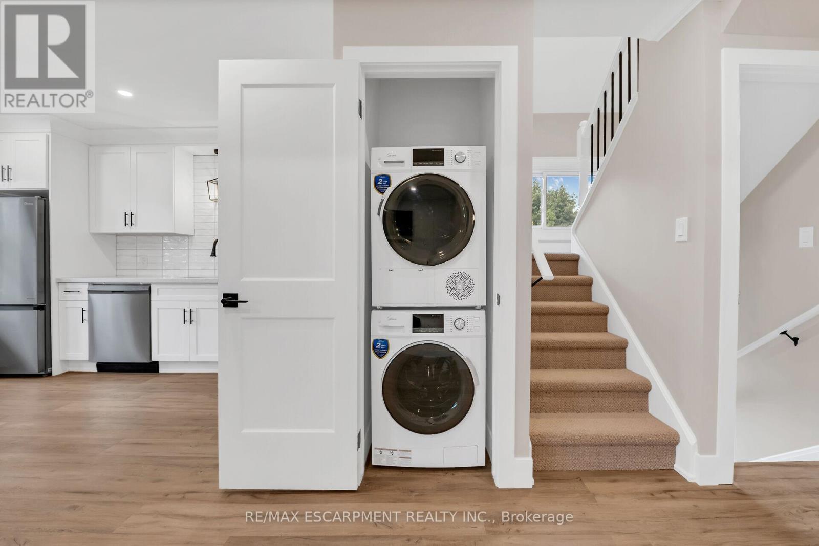 The home you've been waiting for--featuring a FULL IN-LAW SUITE with private side-door entry! Offering 4 total bedrooms plus a den, 2.5 brand-new bathrooms, 2 new kitchens, 2 laundry rooms, and parking for 4 cars, this property checks every box. Step into the main floor and you'll find a custom kitchen with quartz countertops, undermount sink, backsplash, crown molding, pot lights, and a bright, open layout that flows into your living room, flooded with natural light. The main floor also includes 2 bedrooms, a 4-piece bathroom, laundry, and walkout access to your fully fenced, private backyard. Providing all you need on one floor of living space!!! Upstairs offers a large bedroom, convenient 2 pc bath, and a bonus den ideal for a child's play area or home office setup!! The fully finished basement is in-law suite ready, complete with its own private side entrance, full custom kitchen with again quartz countertops, backsplash and pot lights open concept to your spacious living room. With a bedroom, 3-piece bath, and laundry this space is perfect for an extended family, a teenager who needs their own space or added income. Updates include all-new flooring, 2.5 new bathrooms, new lighting, doors, trim, new driveway, and much more. Located in a highly desirable neighborhood, within walking distance to parks, schools, trails, and all amenities. Just minutes to Downtown, QEW, 403, Red Hill, and The LINC-this home truly has it all. (id:4555)