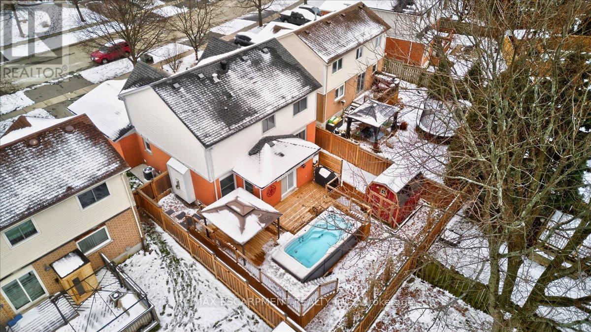 Welcome to 71 Royaledge Way, a meticulously cared-for 4-bedroom, 3-bathroom family home located in Waterdown West - one of the city's most desirable and truly family-friendly neighbourhoods. Loved by the same owners for 20 years, this property shines with pride of ownership and thoughtful updates throughout. The second floor features four spacious bedrooms, including a generous primary suite with ensuite and walk-in closet. The main floor offers a timeless dining/family room combo, a neat-in kitchen, main-floor laundry, a 2-piece bath, and a warm, cozy living room with a working gas fireplace - an ideal space to unwind. The kitchen was fully renovated in 2022, and the appliances are only six months old, offering afresh and modern space for everyday living. Additional major upgrades include window replacements in 2013 and 2021, a front door replaced in 2021, a furnace installed in 2018, and two air conditioners (2010 & 2013). The roof was replaced in 2008 with 40-year shingles ,providing long-term peace of mind. Step into the backyard to find a true retreat. The swim spa (installed four years ago) includes a brand-new cover and features a designated electrical breaker, adding safety and convenience. Paired with the gazebo and the beautifully maintained landscaping, this space is perfect for hosting friends, family, or enjoying quiet evenings outdoors. The double garage offers a brand-new epoxy floor, steel insulated garage door, and room for two cars plus storage, along with a four-car driveway. All systems and utilities have been regularly serviced, ensuring dependable upkeep for years to come. A rare opportunity to own a truly cared-for home in one of Waterdown's most sought-after communities (id:4555)