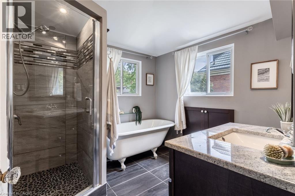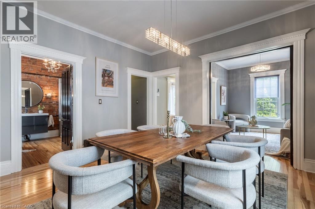Welcome to 198 Duke Street, a standout property in Hamilton’s sought-after Durand neighbourhood. Set on an impressive 161-foot deep lot, this gorgeous home offers a private, cottage-like retreat while keeping you at the center of vibrant city life. With generous outdoor space, mature landscaping, and classic homes nearby, it combines the comfort of a sizable lot with the energy and convenience of the city, lively streets, and everything the neighbourhood has to offer. The expansive backyard is truly exceptional for a central location, offering a lush oasis with mature trees, a tranquil water feature, and a spacious wood deck. This generous outdoor space provides flexibility rarely found downtown, including rear parking for two vehicles, a new sliding gate, and plenty of room to add a garage or ADU. Inside, this charming 1.5-storey century home balances timeless character with modern comfort, showcasing exposed brick, high baseboards, an ornate fireplace mantle, pocket doors, and a mix of hickory and oak flooring. Contemporary updates include refreshed cabinetry, stainless steel appliances, stylish tilework, glass-enclosed showers, and upgraded lighting. The bright main floor features a welcoming living and dining area, a bedroom/office with a large closet, a spacious kitchen with ample storage, a large 4-piece bathroom, and laundry. The second level offers two additional bedrooms with generous closets and a second 4-piece bathroom. Leave the car at home in this walkable neighbourhood! With enhanced public transit options, close proximity to shops and services, and the energy of an active urban setting — all while enjoying the privacy of an unusually deep lot. Walk to Locke Street, Hess Village, GO Transit, St. Joseph’s Hospital, parks, and more. A rare opportunity to enjoy a spacious lot, central location, and the best of urban living in one of Hamilton’s most desirable neighbourhoods! (id:4555)