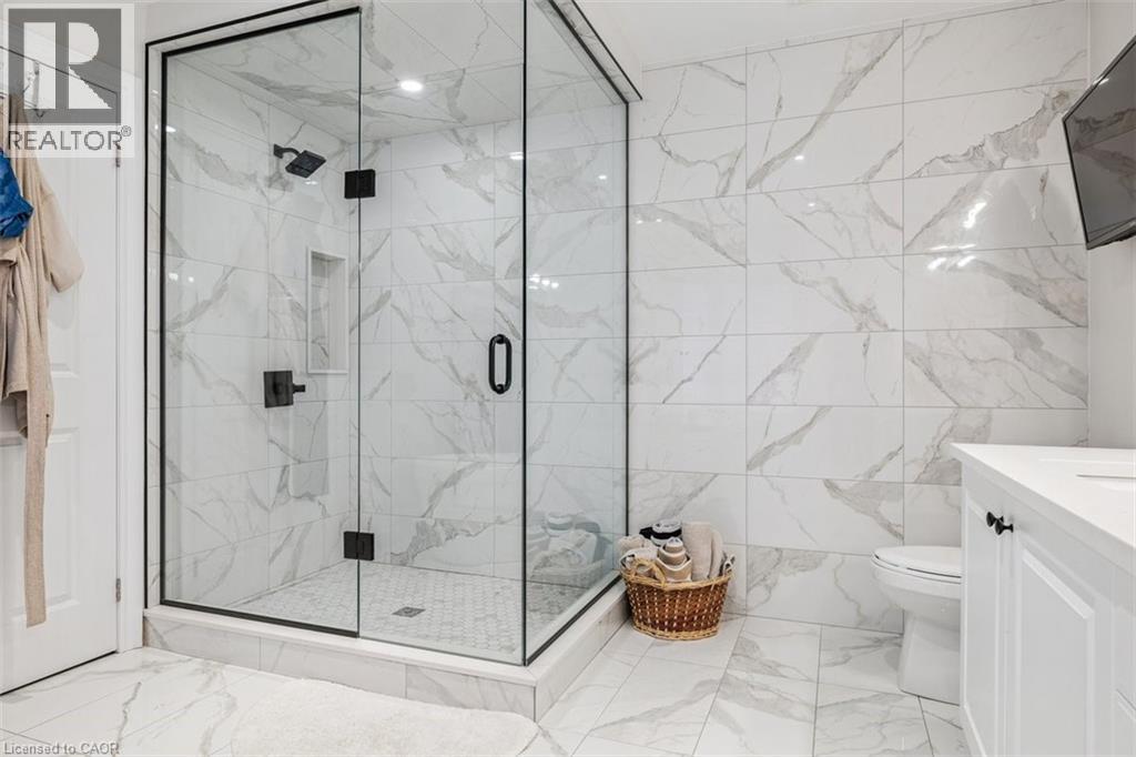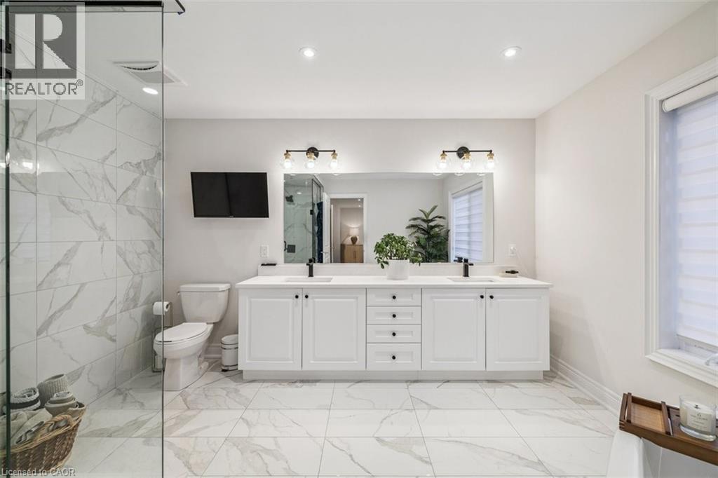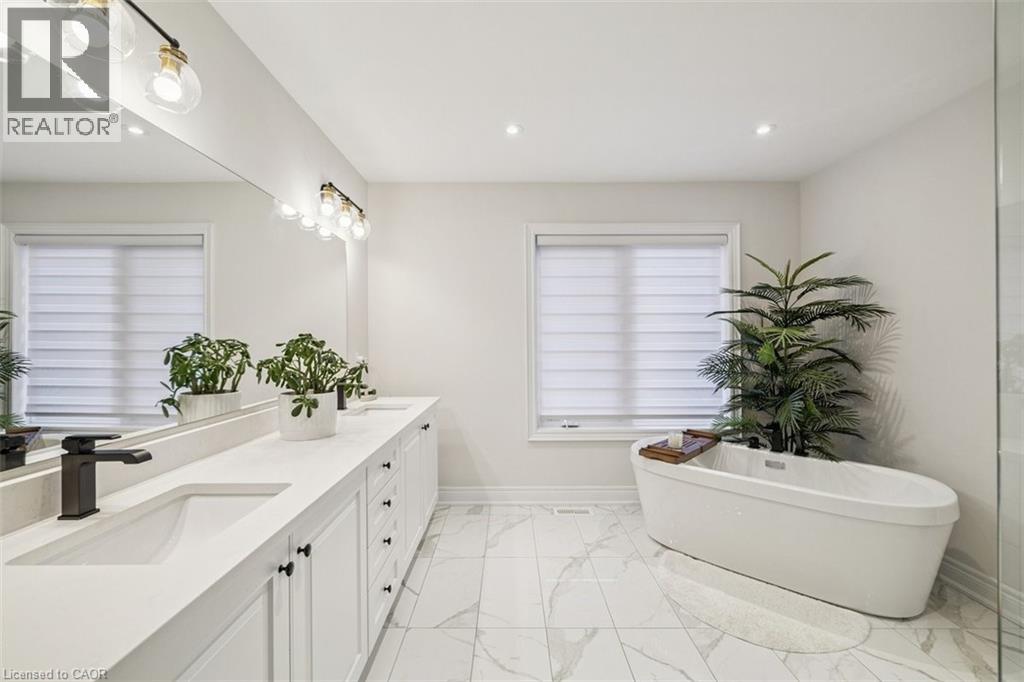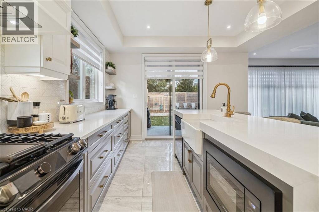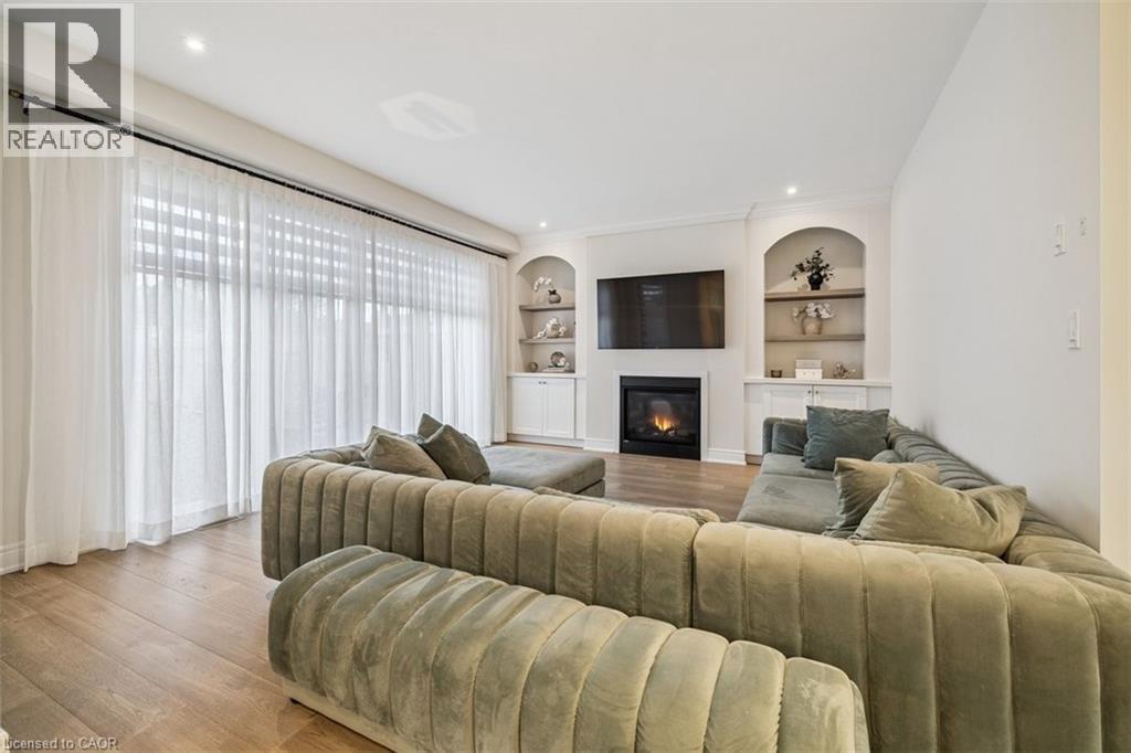 Welcome to this exceptional DiCenzo build offering over 3000 sq ft of total living space! Nestled on a private court, the property captivates immediately with pristine curb appeal, including a newly completed interlocking-stone driveway. As soon as you enter into the spacious foyer, it’s clear no upgrade has been overlooked. The open-concept main level features an elegant dining room with floor-to-ceiling windows and a walkout to the front balcony. The chef’s kitchen is beautifully appointed with premium appliances, abundant cabinetry, endless upgrades, and a versatile oversized front closet ideal for a dream pantry. Sliding doors lead to a covered porch perfect for summer entertaining. Floor-to-ceiling windows continue in the living room with double sliding French doors, custom built-ins, and a gas fireplace. A private powder room completes this level. The staircase with built-in lighting leads to three generously sized bedrooms. Bedrooms two and three share a Jack-and-Jill bathroom, and a dedicated laundry area adds convenience. The primary suite is a true retreat with dual walk-in closets and a luxurious five-piece ensuite. The lower level, with a separate entrance from the double-car garage, has been newly finished to include a secondary living area with custom built-ins, a three-piece bathroom, and an office or potential fourth bedroom with an egress window—ideal for extended family or guests. Outside, the backyard is designed for relaxation and entertainment with a covered porch, expansive fully fenced yard, and dedicated play area. This home is truly move-in ready and offers an exceptional lifestyle. Book your private showing today! (id:4555)