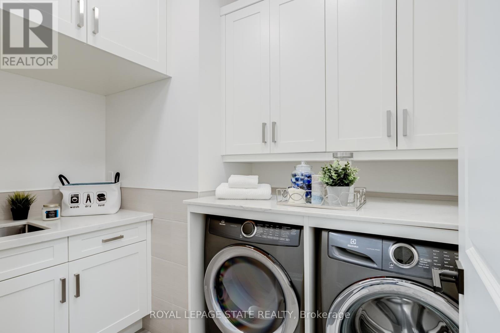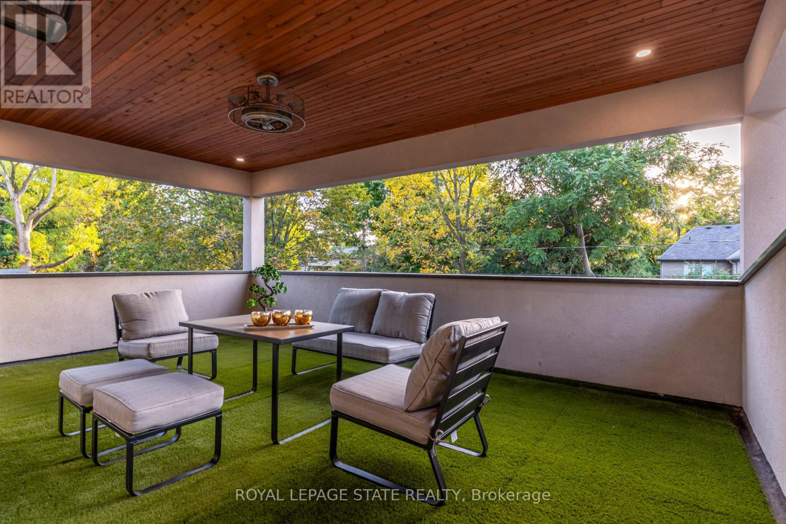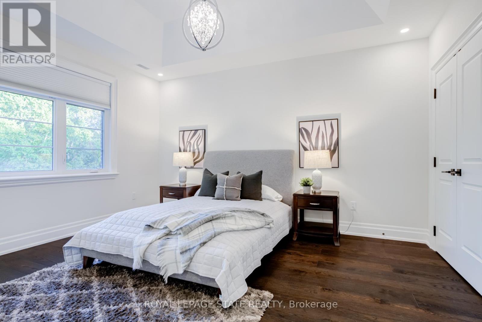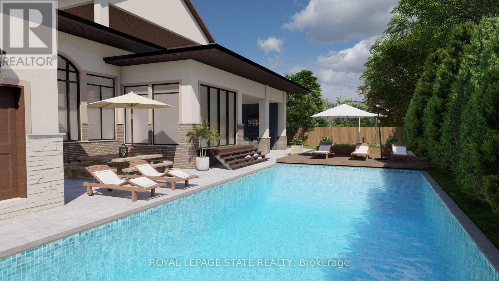 This multi-generational luxury dream home blends timeless design with superior craftsmanship, offering over 8,850 sqft. of finished living space with 7 bedrooms and 8 bathrooms on a 135-ft-wide lot in Ancasters prestigious Oakhill neighbourhood. Surrounded by mature trees and estate homes, the property showcases two separate garages, parking for 20+ vehicles, professional landscaping, and a commanding architectural façade. Inside, a 21-ft grand foyer with curved staircase and custom millwork sets an elegant tone, complemented by wide-plank hardwood, porcelain tile, and abundant natural light from oversized windows. The main level offers formal living and dining rooms, a private office, powder room, and one of two primary suites with backyard walk-out. At the heart of the home, a soaring family room with floor-to-ceiling windows connects to a gourmet kitchen featuring top-tier Thermador appliances, a servery, walk-in pantry, and a heated four-season sunroom with in-floor heating. Upstairs are four generous bedrooms, each with its own ensuite and heated floors, plus a convenient laundry room and a spectacular primary retreat with gas fireplace, dressing room, and spa-inspired 6-pc ensuite. A covered terrace with artificial turf extends the living space outdoors. The finished lower level offers incredible versatility for extended family living with a separate entrance, two bedrooms, two bathrooms, recreation room with gas fireplace, kitchenette, and a sound-isolated home theatre room that can be separated from the rest of the basement. The private backyard provides multiple patios under mature trees, with professional renderings available for a future pool, hot tub, and full landscaping. Smart-home features include Control4 automation, security system, 400-amp, dual furnaces & ACs, HRVs, and central vacuum with hide-a-hoses. A rare opportunity to own an Oakhill estate that combines sophistication, space, and modern functionality for todays luxury lifestyle. (id:4555)