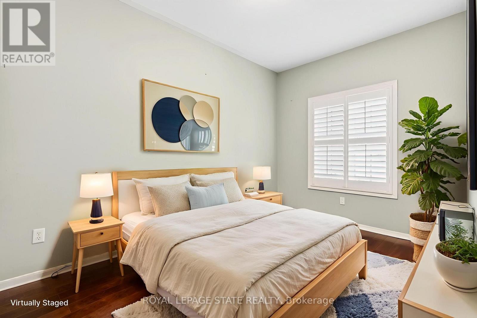 Discover effortless living in this well-cared-for 2-bedroom, 2-bath bungalow located in the desirable Garth Trails adult lifestyle community. Offering approximately 1,100 sq. ft. of functional and inviting space, this home features an attractive brick and stone exterior, a single-car garage with interior access, and a private driveway. Inside, the layout is both practical and welcoming. A front bedroom and spacious foyer with linen storage set the tone, while the kitchen offers generous cabinetry, a breakfast peninsula, and a seamless flow into the combined living and dining area-ideal for everyday living and entertaining. patio doors open to a quiet rear patio with no unit directly behind, providing added privacy. The primary bedroom includes his and hers closets and a 4-piece ensuite privilege. Main-floor laundry enhances the ease of single-level living. The finished lower level expands your living space with a large recreation area, a 3-piece bathroom, and ample storage. Neutral finishes throughout make the home move-in ready and easy to personalize. This is not your typical rental townhome. Residents of Garth Trails enjoy access to an exceptional clubhouse and resort-style amenities, including an indoor pool, sauna, whirlpool, fitness centre, tennis and pickleball courts, bocce, shuffleboard, craft and games rooms, a putting green, and a grand ballroom hosting regular social events. Surrounded by private parkland and tranquil pond views, this community offers a relaxed, low-maintenance lifestyle in a truly special setting. (id:4555)