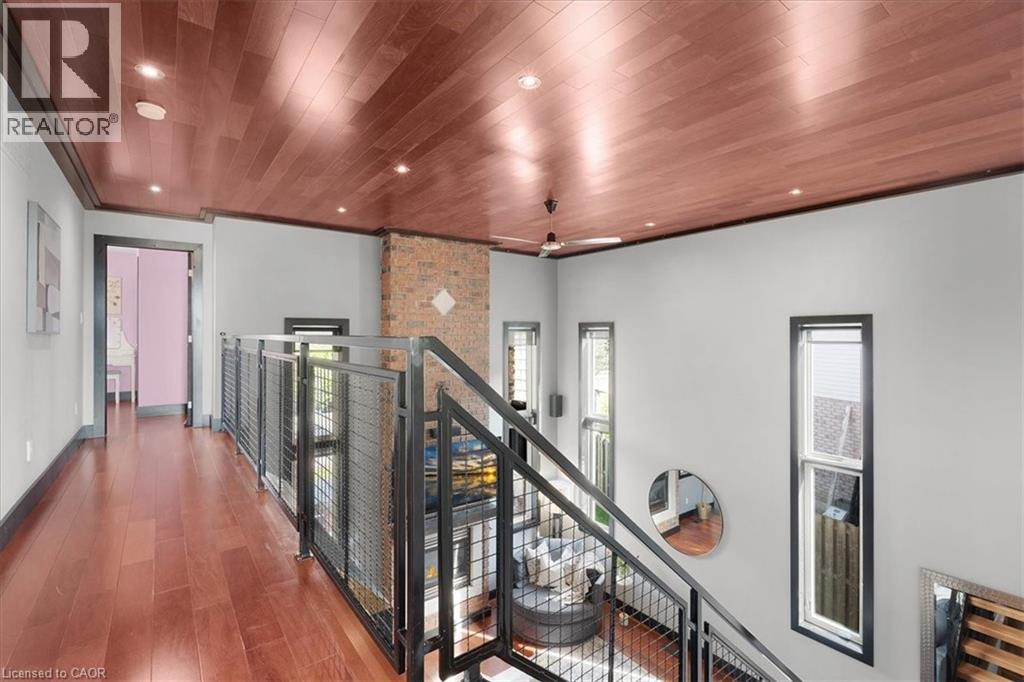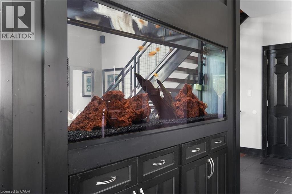 One-of-a-kind, only two owner custom home on a rare double lot in a quiet upper Stoney Creek court! This is the kind of property that rarely comes to market. Loaded with custom finishes, outdoor luxuries, and lifestyle upgrades inside and out. Winters have been spent skating on the backyard rink, and summers around the full brick pizza oven with chimney in the outdoor kitchen with Napoleon Prestige Pro 500 BBQ, fully wired with outdoor patio speakers, all set in a private green space. Sleek matching shed with electrical service and double doors featuring indoor/outdoor dog kennel. Integrated security system with LED lighting throughout the property. Step inside to a soaring 2-storey family room with a modern fireplace anchored by a fully plumbed 220-gallon aquarium, the stunning focal point and show piece of the main floor. The oversized kitchen easily fits a 12+ person table and flows into a spacious prep kitchen with granite counters and stainless steel appliances. A bold steel and wood staircase adds a cool industrial vibe. Upstairs, every bedroom has its own ensuite privilege. The main bedroom and ensuite bathroom feature a built-in surround sound system for a luxurious retreat. This home also includes a 104-bottle cantina with an in-wall security safe, Steam Core sauna, and a partially finished basement already equipped for a hair salon. Double car garage with EV charger, double driveway, and just minutes from schools, parks, shopping, movie theatres, and highway access. This isn’t just a home, it’s an experience. Come see it for yourself. (id:4555)