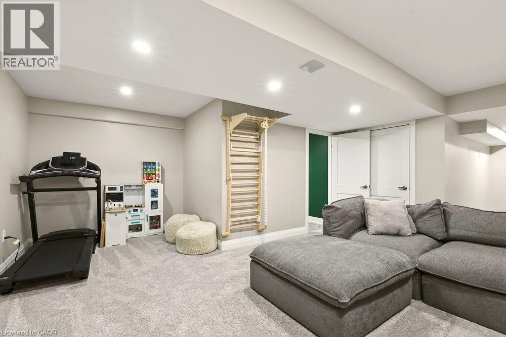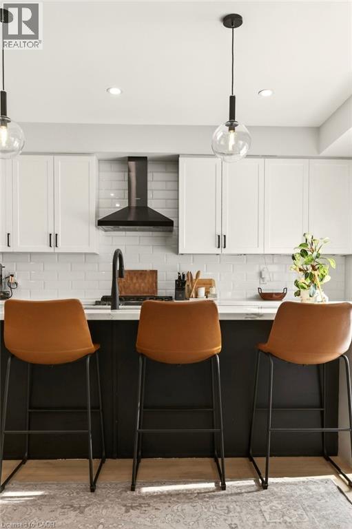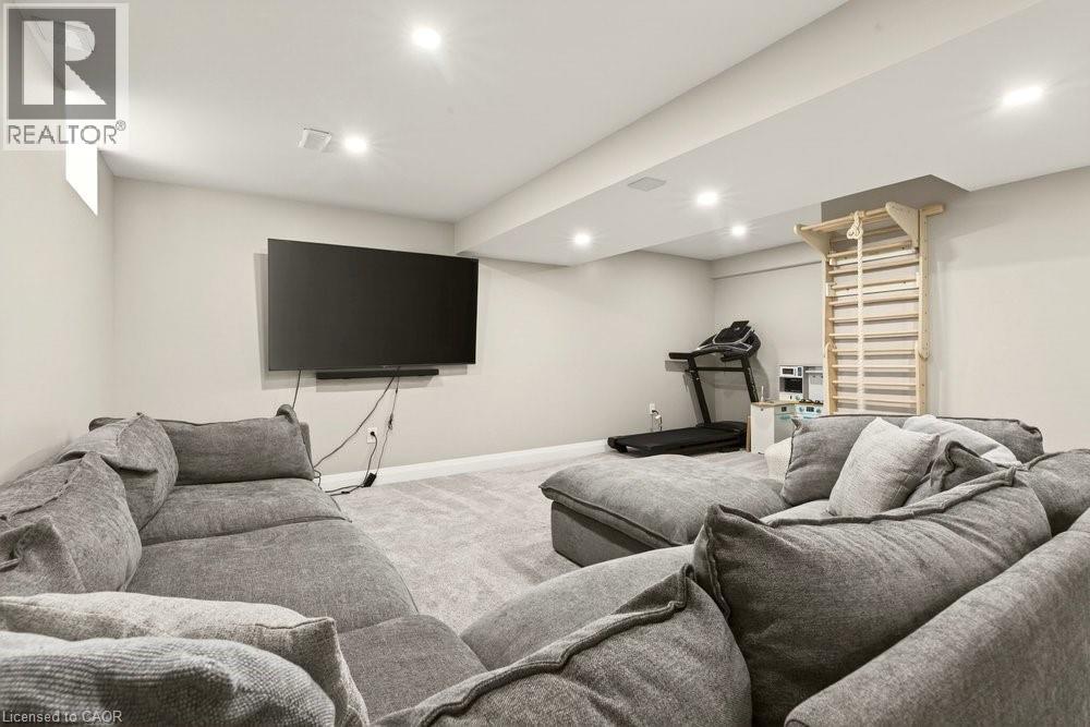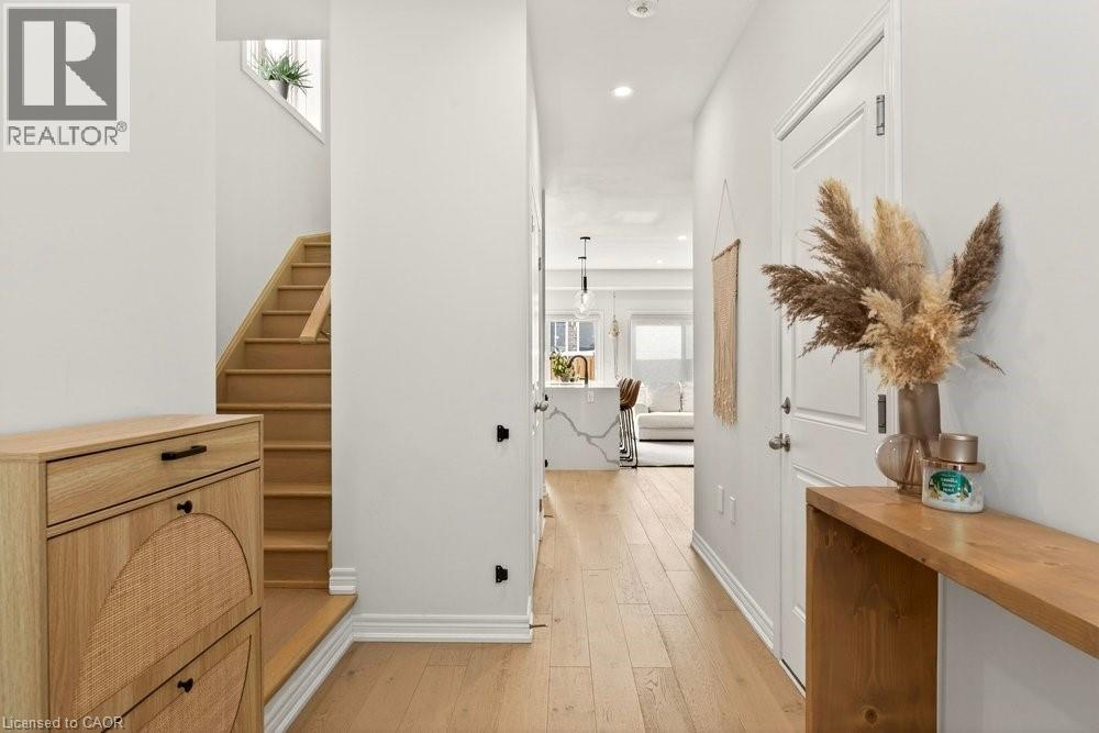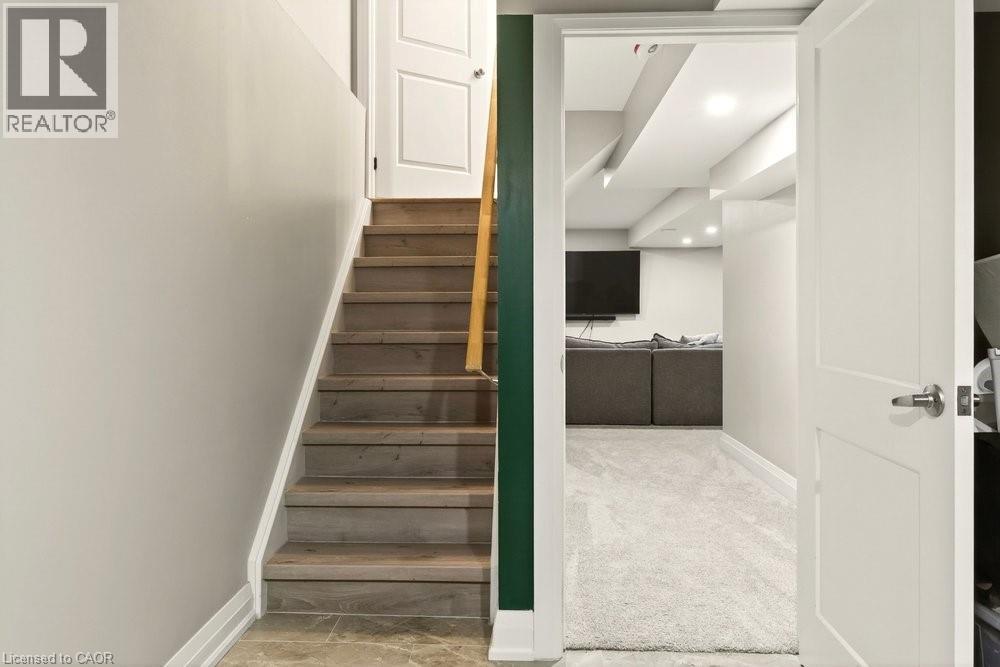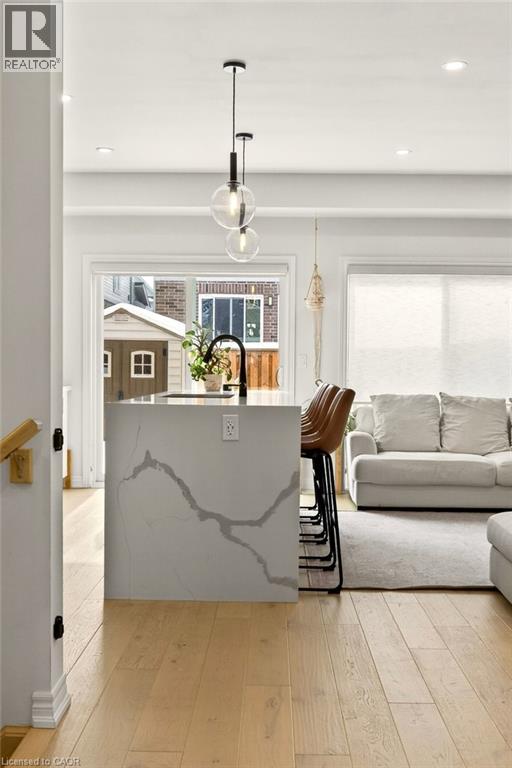 Built in 2020 by Dicenzo Homes and offering over $50,000 in thoughtful upgrades and updates this stunning 4-bedroom, 4-bathroom semi-detached home is located in a welcoming, family-friendly community on Hamilton Mountain. With a finished basement, fenced yard, and modern finishes throughout, this home is ideal for families and professionals alike. Enjoy convenient inside entry from the single garage and private driveway. Step into the inviting foyer and immediately appreciate the upgraded flooring and staircase, along with a conveniently located 2-piece powder room. Natural light fills the open-concept main floor, highlighting the beautifully upgraded kitchen — truly the heart of the home. Features include extended cabinetry, black stainless steel appliances with a gas stove, an oversized quartz waterfall island, upgraded undermount sink and faucet, and plenty of prep and gathering space. Upgraded hardwood floors flow seamlessly through the kitchen, living, and dining areas, complemented by pot lights and double sliding glass doors leading to your private, fully fenced backyard. The concrete patio and gazebo create the perfect setting for outdoor relaxation or entertaining. Upstairs, upgraded hardwood continues through the hallway, leading to four generously sized bedrooms with large closets and cozy carpeting. The spacious primary retreat features a walk-in closet and a stylish ensuite bath complete with a glass shower. The finished lower level expands your living space with a large recreation room, laundry area, ample storage, and a 3-piece bathroom with glass shower — ideal for guests, teens, or a home office setup. 200-amp electrical panel. Centrally located just minutes from l the LINC, with access to the 403 and Red Hill Parkway this home is close to public transit, schools, parks, and shopping. Don’t miss this opportunity! Some photos virtually staged. (id:4555)