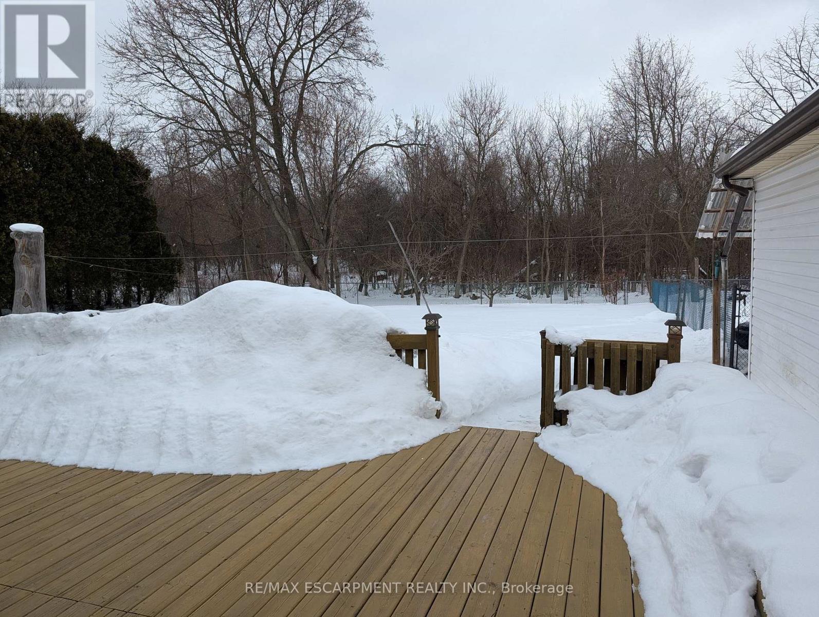 Welcome to 564 Evans Rd, possibly the most convenient rural location in Waterdown/Flamborough! Nestled on a totally private lot surrounded by trees on the eastern edge of Waterdown and bordering Burlington, it is literally minutes to both communities with their shopping, entertainment and recreational facilities. Ideal for commuters with quick access to the major highways (QEW, 403, 407), and a short drive to either Aldershot or Burlington GO stations. This carpet-free brick bungalow is deceivingly large and is flooded with natural light thanks to its large windows and many skylights. The open concept living/dining and kitchen areas are highlighted by the cherry hardwood floors, wood burning fireplace and pine kitchen which features an island with breakfast bar, large pantry, crown moldings, stainless steel appliances and loads of work and storage space. Three good sized bedrooms with laminate flooring and a four-piece bath with skylight complete the main level. A few steps down is the huge 11 foot high family room with hardwood floors, gas fireplace, skylights and a wall of windows overlooking the large rear yard and 26' X 20' deck. The partly finished lower level provides additional living space with 2 spacious rec/games rooms, a generous laundry and utility rooms. The rear yard is fully fenced and provides ample space for entertaining, backyard activities and relaxation. Grow fresh vegetables in the fenced-in garden or even raise a few chickens in the existing coop. An added bonus is the finished bunkie with hydro that would make a perfect studio, office, guest room, teen retreat or man cave/sheshed! Looking for a home with a bit more elbow room yet close to city amenities? Welcome Home! (id:4555)