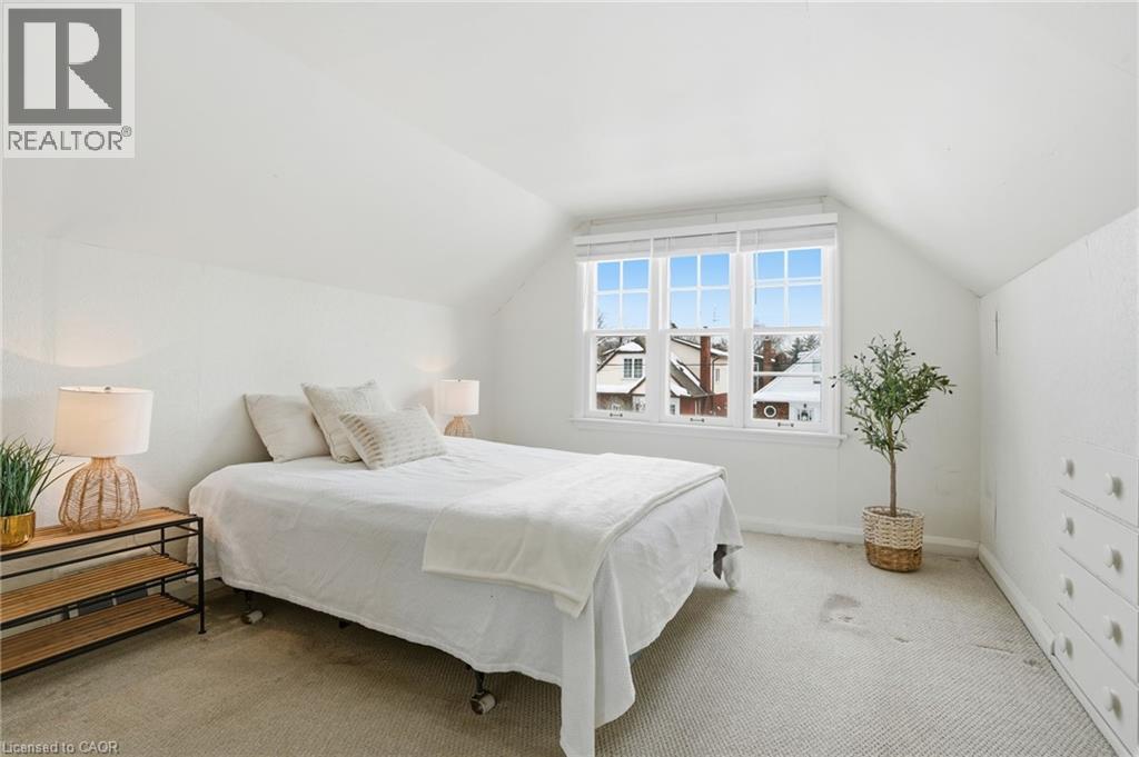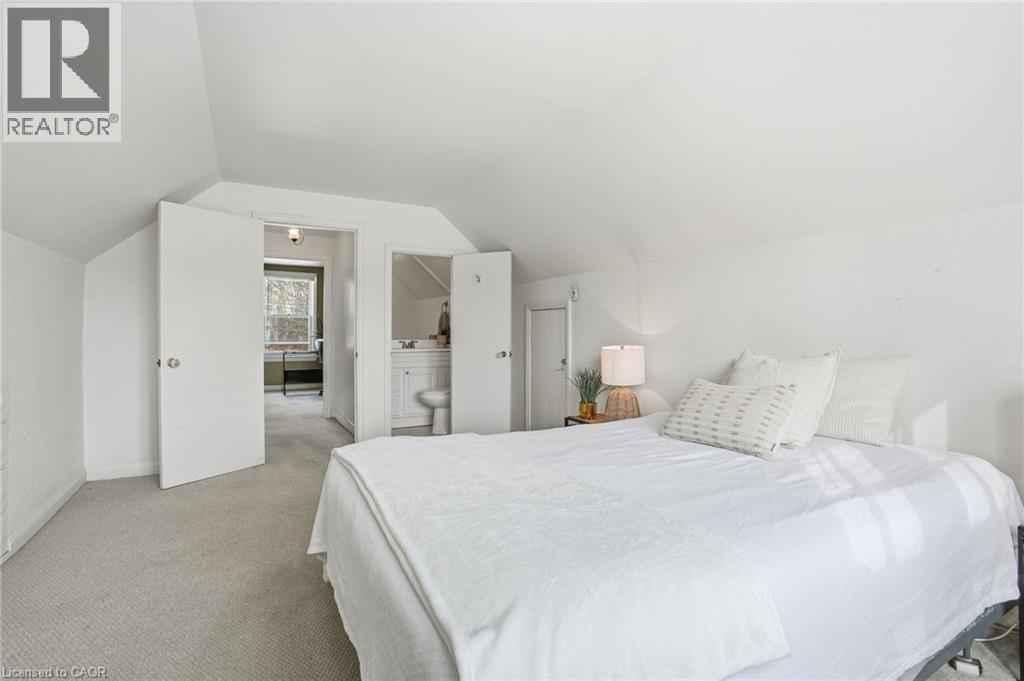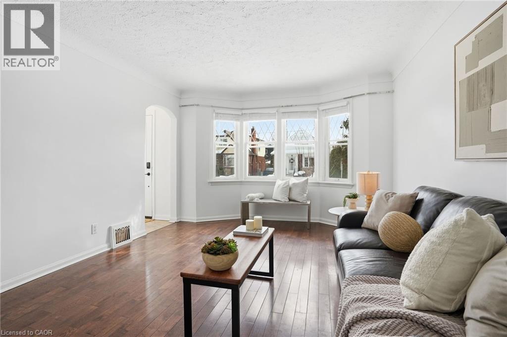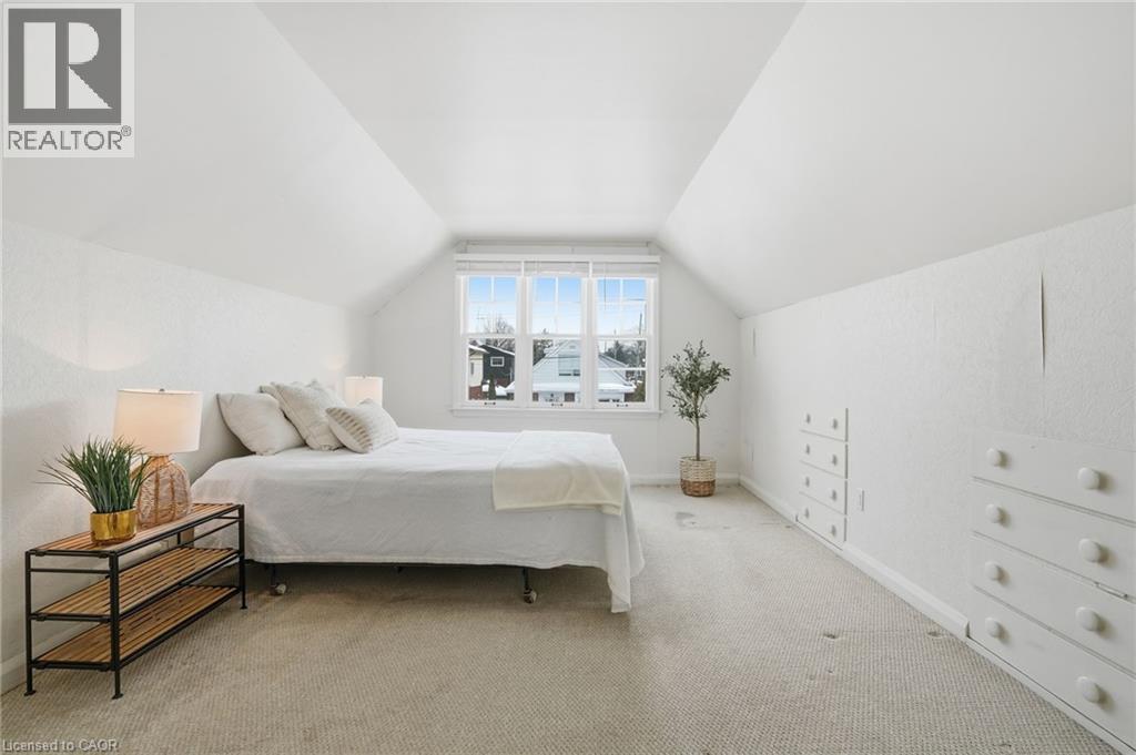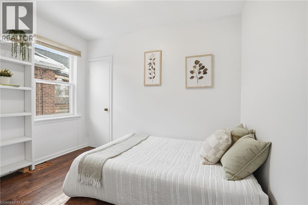 Enjoy elegant park side living in this charming 1.5-storey home offering 4 bedrooms and 2.5 baths, backing directly onto Churchill Park. Nestled in a quiet neighbourhood, you’re steps to sports fields, scenic trails to Princess Point and Cootes Paradise, close to McMaster, and minutes to highway access. The beautifully landscaped exterior features established gardens, high-quality aggregate walkways, a welcoming front porch, rear patio, and an elevated deck off the four-season sunroom—perfect for relaxing or entertaining. The main floor offers a bright living room with a big bay window, kitchen, sunroom with deck and backyard access, 4-piece main bath, and two versatile bedrooms, one currently set as a dining room. Upstairs, the sun-filled master bedroom includes a 2-piece ensuite, and the second bedroom enjoys west-facing views overlooking the park. The basement has its own separate side entrance ideal for extended family or rental potential. There is a rec room with sink, two bedrooms, 3-piece bath, and laundry room. This home is all about beautiful potential. Come check it out and start imagining how idyllic your life can be! (id:4555)