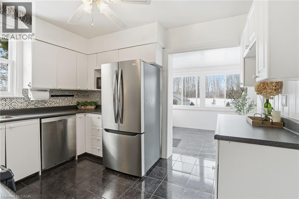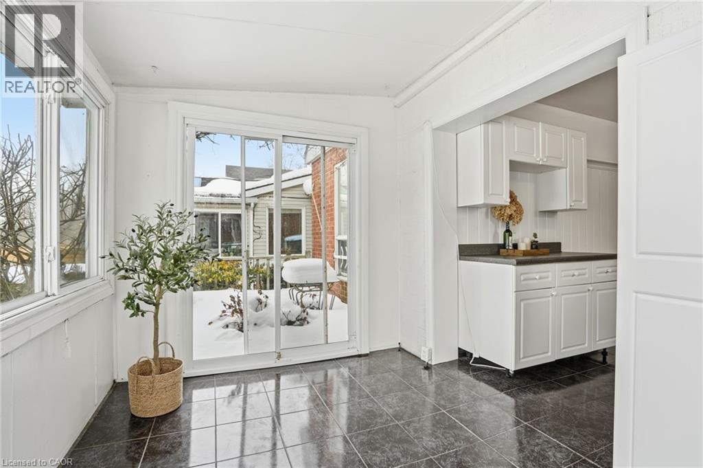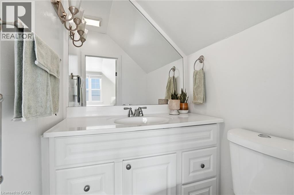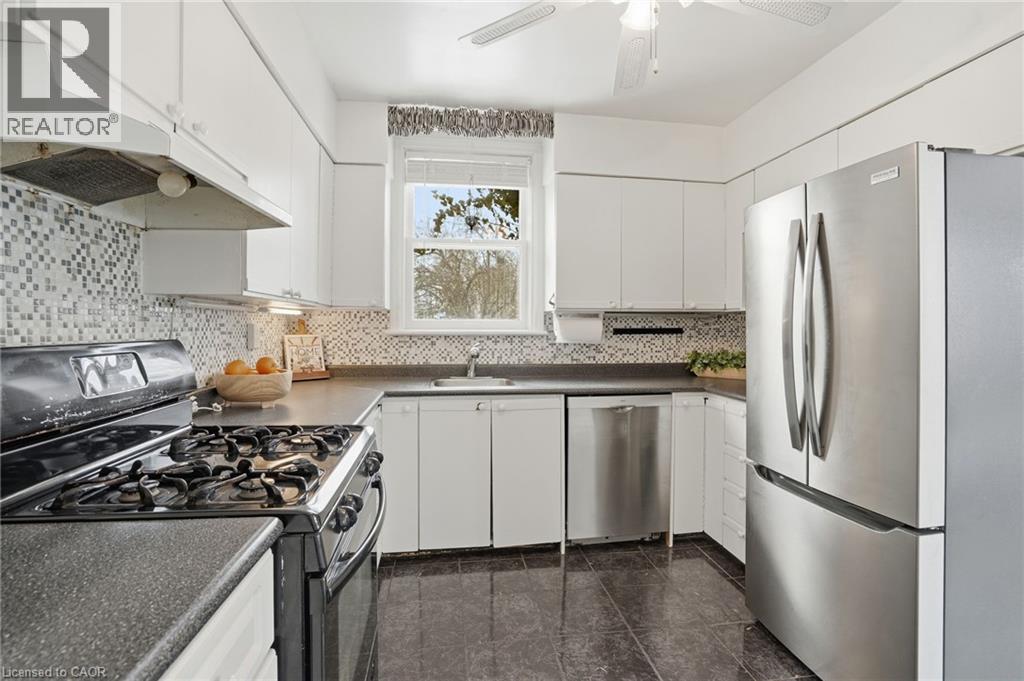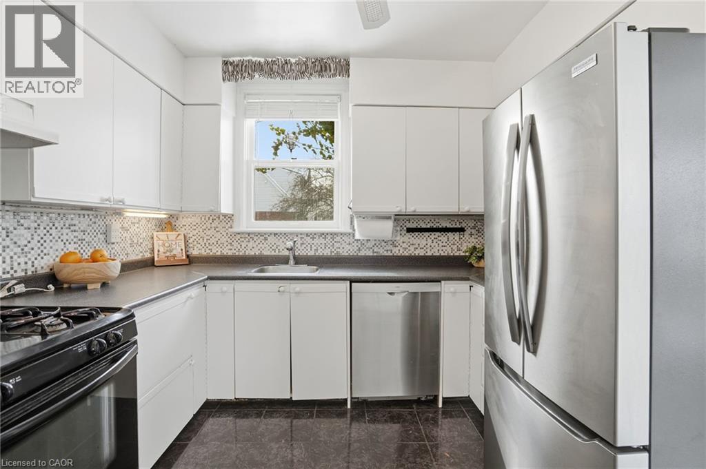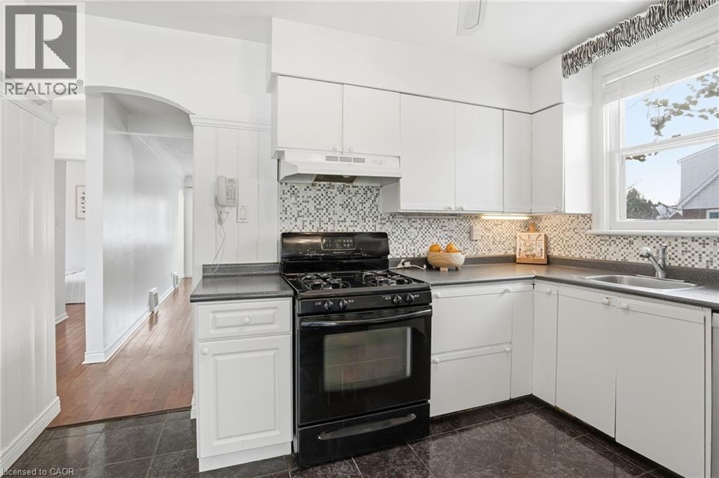 Enjoy elegant park side living in this charming 1.5-storey home offering 4 bedrooms and 2.5 baths, backing directly onto Churchill Park. Nestled in a quiet neighbourhood, you’re steps to sports fields, scenic trails to Princess Point and Cootes Paradise, close to McMaster, and minutes to highway access. The beautifully landscaped exterior features established gardens, high-quality aggregate walkways, a welcoming front porch, rear patio, and an elevated deck off the four-season sunroom—perfect for relaxing or entertaining. The main floor offers a bright living room with a big bay window, kitchen, sunroom with deck and backyard access, 4-piece main bath, and two versatile bedrooms, one currently set as a dining room. Upstairs, the sun-filled master bedroom includes a 2-piece ensuite, and the second bedroom enjoys west-facing views overlooking the park. The basement has its own separate side entrance ideal for extended family or rental potential. There is a rec room with sink, two bedrooms, 3-piece bath, and laundry room. This home is all about beautiful potential. Come check it out and start imagining how idyllic your life can be! (id:4555)