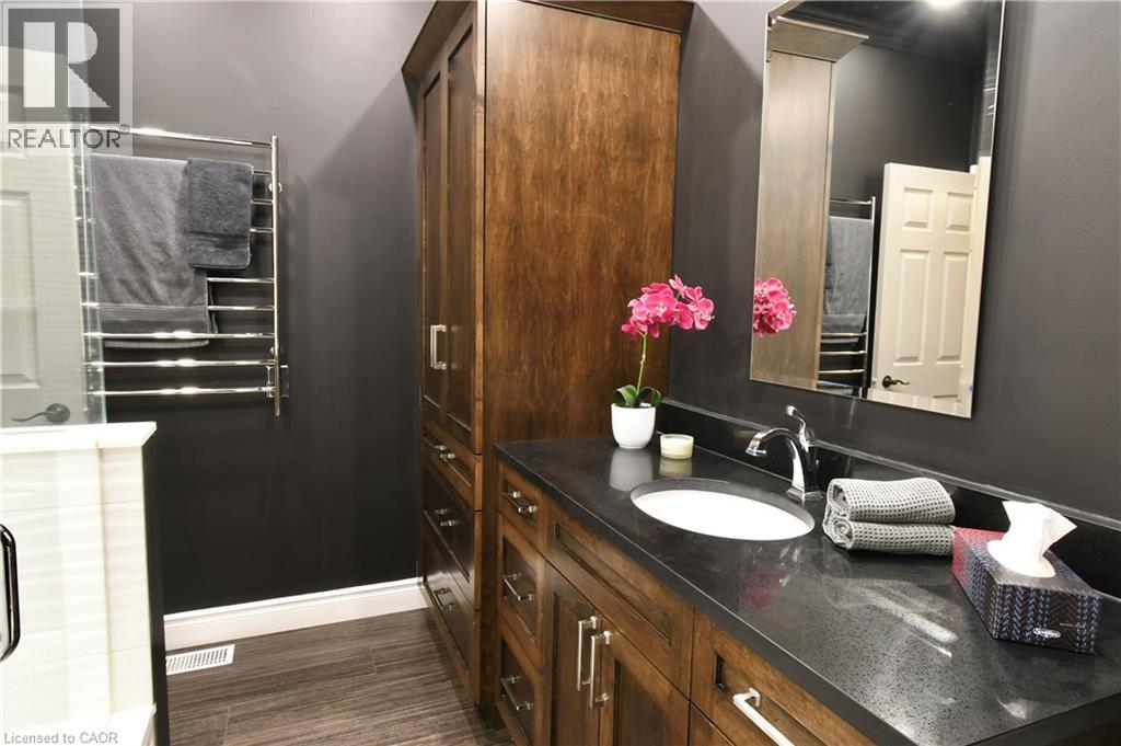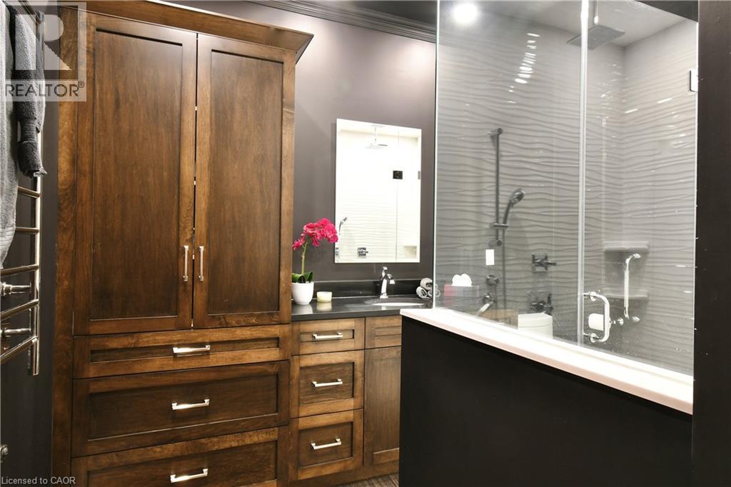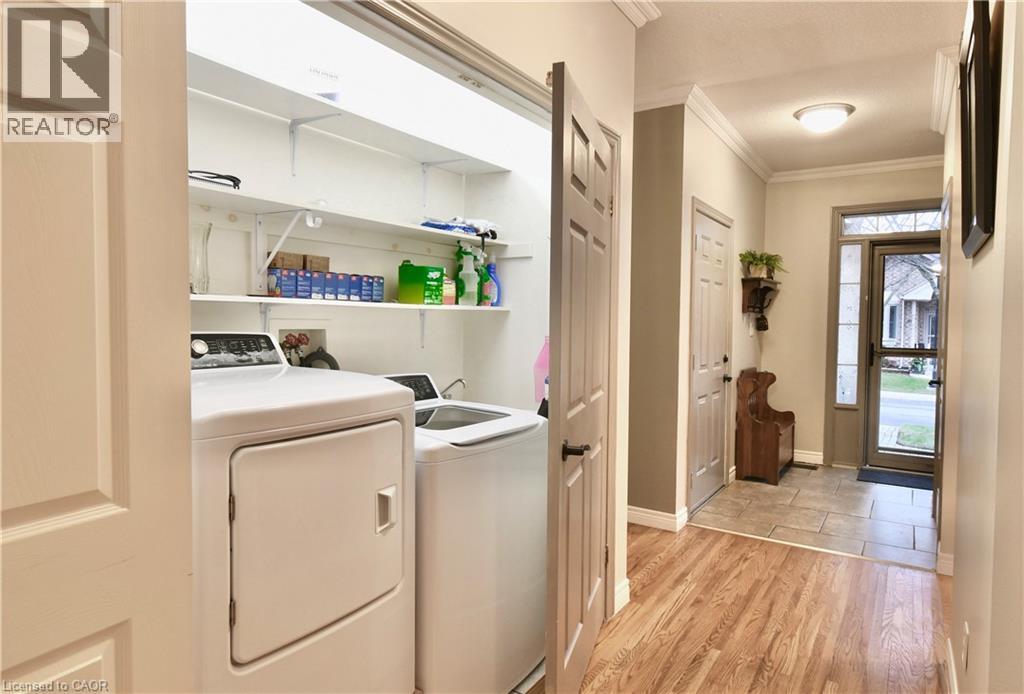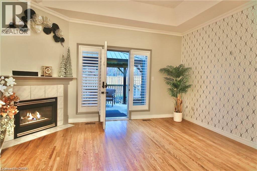 Step inside this Exceptional & Elegant, END UNIT BUNGALOW, nestled in the coveted Adult Community of Twenty Place. 1700 SqFt of well-maintained living space on 2 levels, 42 Greentrail Drive unfolds with loads of Natural Light & Excellent Functionality. Bright Eat-in Kitchen, plenty of Cabinets & Counterspace, BI Pantry & an Oversized Passthrough for effortless entertaining. Living Room features an attractive Tray Ceiling, ambient Gas FirePlace & French Door that flows out to the private backyard with sizeable deck, Gazebo & BBQ patio. Serving the generous Primary Bedroom & Delivering a WOW Factor, is the Luxury Boutique-Hotel inspired Primary/Main Bath. Boasts a floor-to-ceiling Ceramic & Glass Shower, Stunning Quartz Vanity & Linen Wardrobe. Downstairs offers more living space with a recreation room, fireplace, guest accommodations with walk-in closet & 3pc Semi-Ensuite. The large utility/storage room has floor-to-ceiling built-in shelving as does the Garage with inside-entry. Stove (Mar 2026), Windows (2022) Hot Water Tank & Furnace (2021) New Interior Painting TBC mid March 2026. Several Close-by Visitor Parking Spaces, 1 conveniently adjacent to the Front Yard. Amazing Clubhouse Resort-Style Amenities; Indoor Pool, Sauna, Pickle Ball, Gym, Tennis, Library, Activities & Socials. Minutes to Ancaster & Hamilton Mountain’s Hub for all Amenities. Nearby Parks, Golf, Linc & HWY 403 Access. This Beautiful Bungalow is for those seeking Manageable, Stylish Space & a Comfortable Lifestyle in an Outstanding, Friendly Community. Welcome Home to Twenty Place. (id:4555)