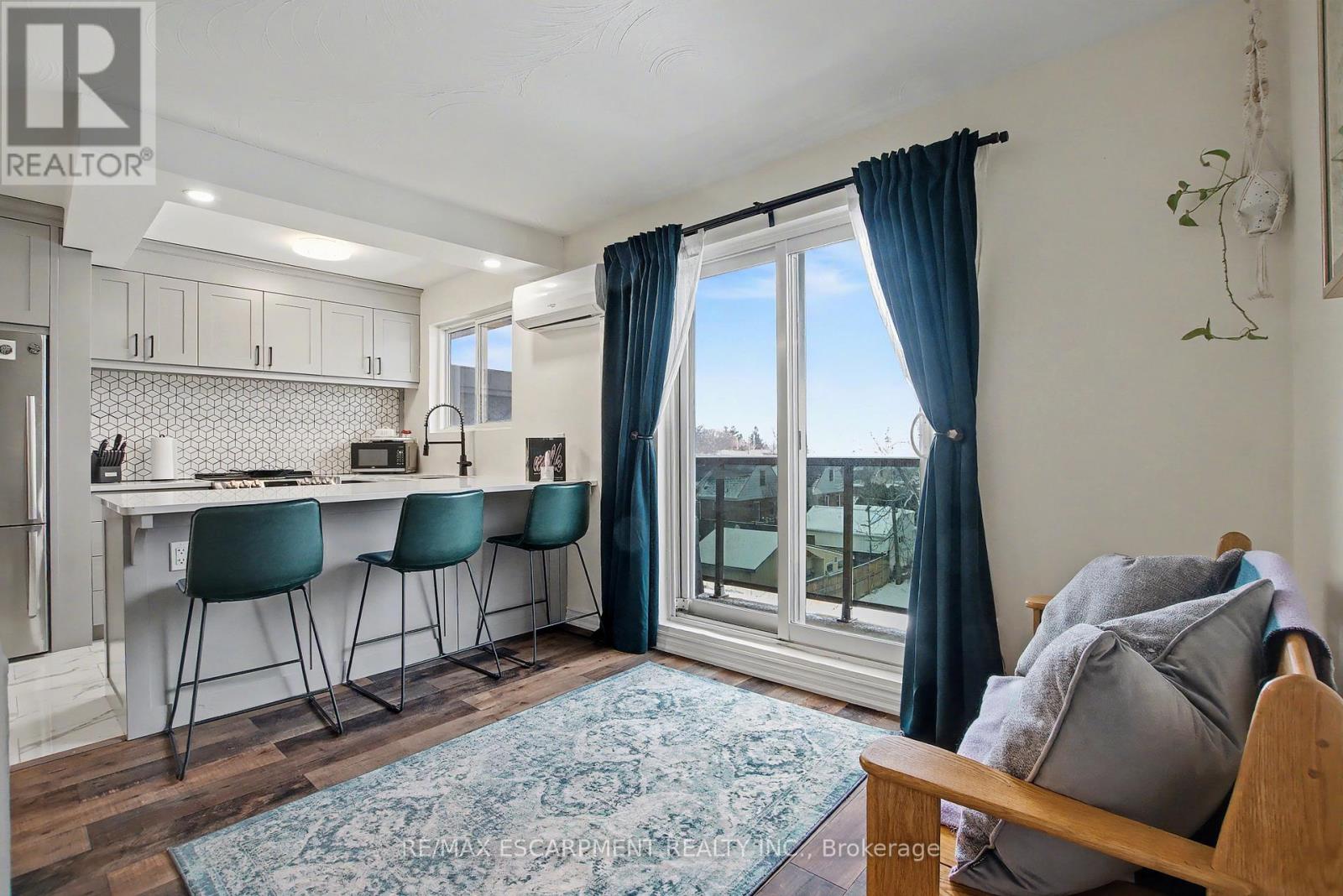 Welcome to this beautifully updated oversized end-unit 1-bedroom condo located in the highly desirable Bartonville/Glenview neighbourhood.Perfectly situated for commuters, this home offers extremely convenient highway access and is just minutes from shopping, dining, andeveryday amenities. This spacious unit features breathtaking views from the rear of the building, highlighted by a large private balcony thatspans the entire length of the unit-ideal for relaxing or entertaining. The kitchen and bathroom have both been tastefully updated within thepast two years, providing a modern, move-in-ready living space. Surrounded by nearby parks and scenic hiking trails, this property offers theperfect blend of urban convenience and outdoor lifestyle. An excellent opportunity for first-time buyers, investors, or those looking to downsize. (id:4555)