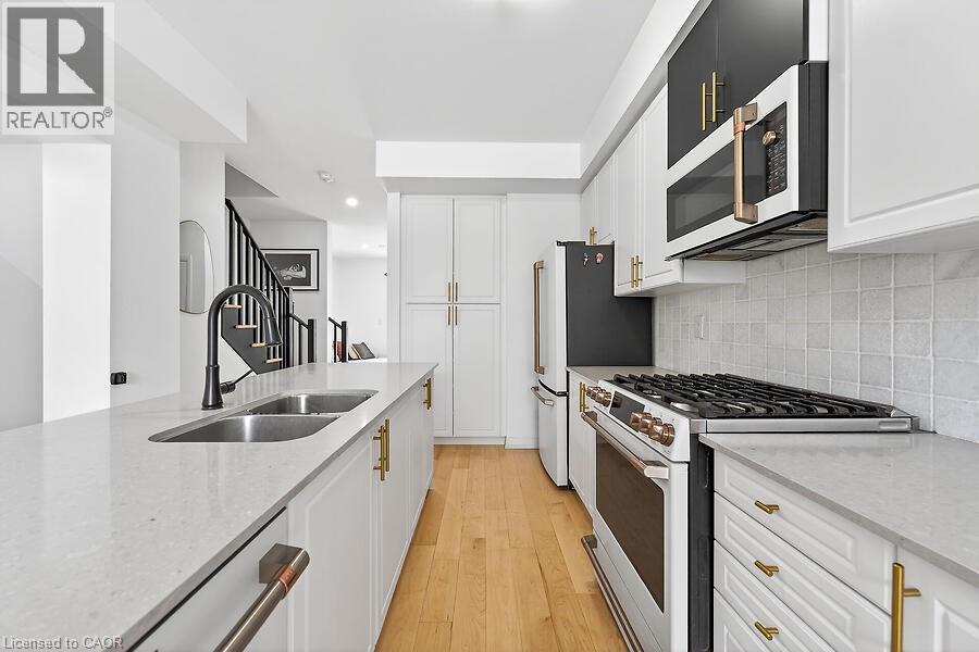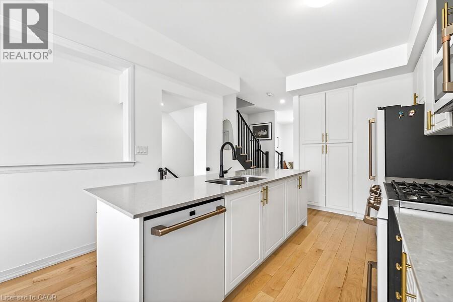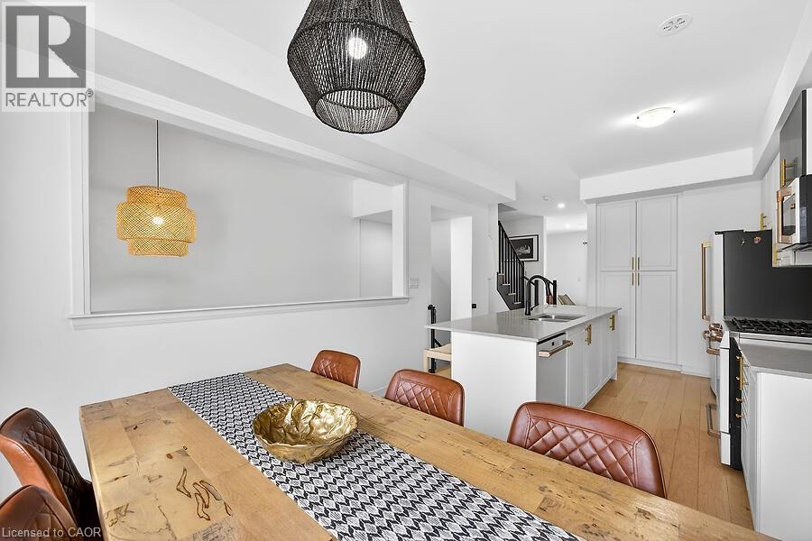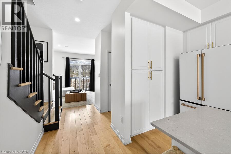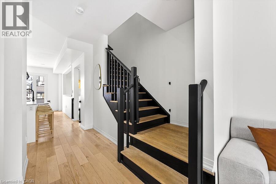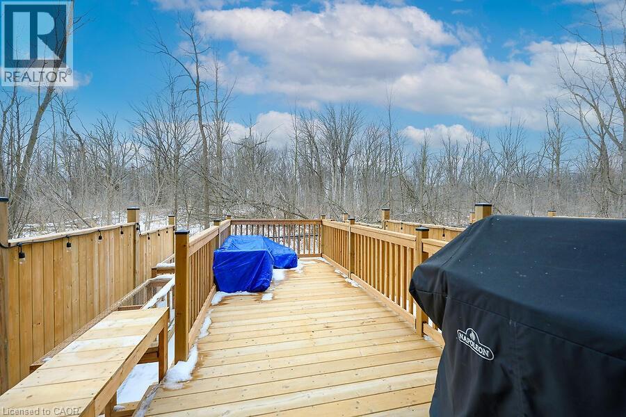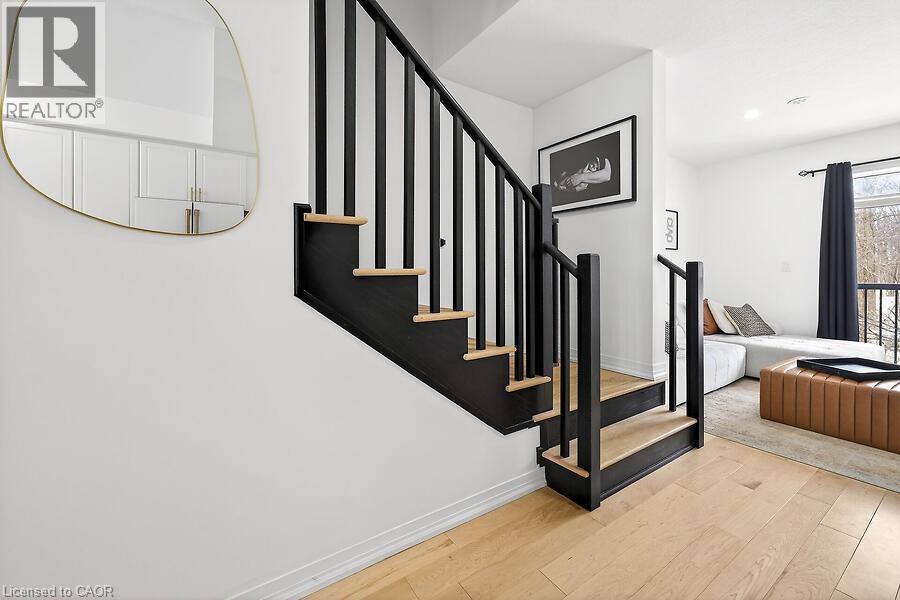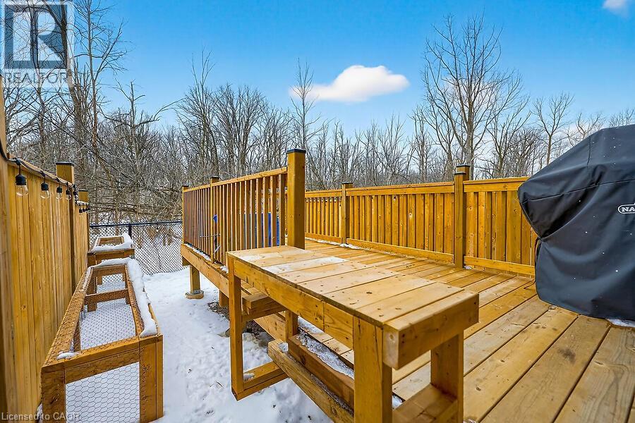 Backing onto a serene forest on Stoney Creek Mountain, this impeccably upgraded 3-year-old executive townhouse offers a rare combination of modern luxury and natural privacy. The move-in-ready interior is completely carpet-free, featuring engineered hardwood throughout, a refinished designer staircase, and a fresh top-to-bottom professional paint job. High-end finishes abound, from the gourmet kitchen's luxury appliances (GE Cafe) to the spa-like primary ensuite with its custom walk-in shower and upgraded tiling. Thoughtful details like upgraded pot lights, designer faucets, and a new powder room vanity complement the open-concept layout, while the new wood deck and fenced backyard provide the perfect private oasis for enjoying the tranquil forest views. Additional garage storage under main staircase contributes to marvelous home in close proximity to shopping and amenities. (id:4555)