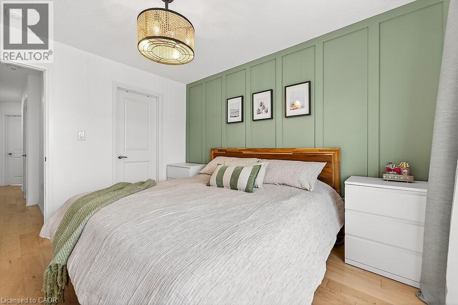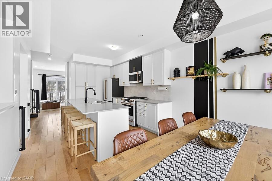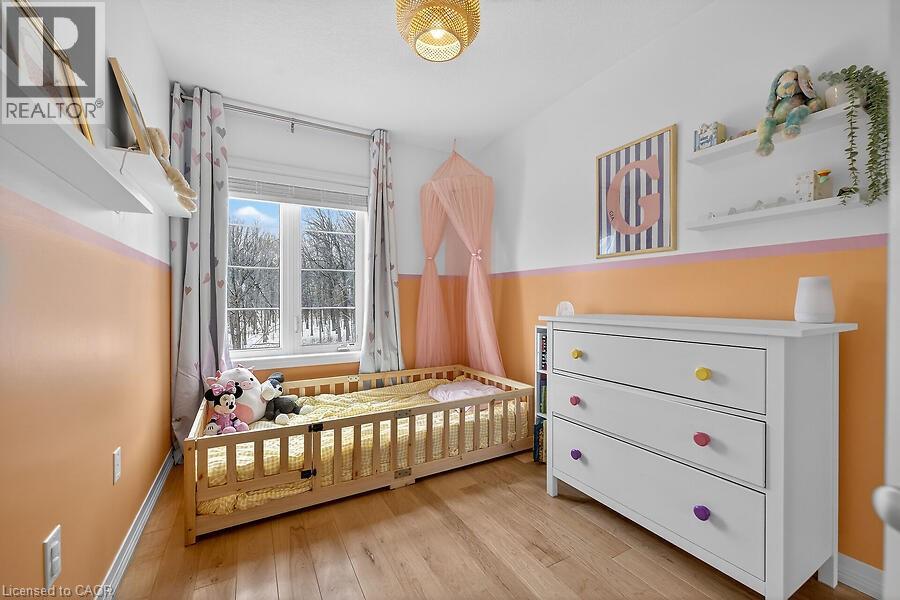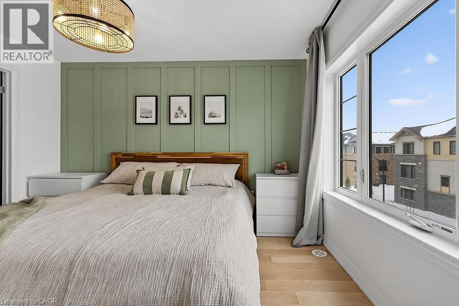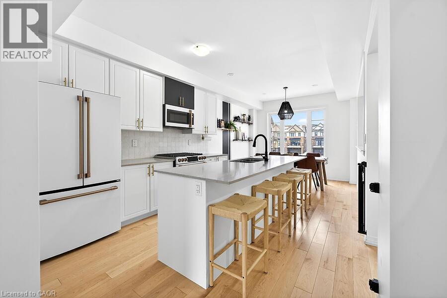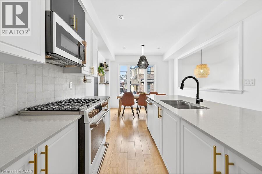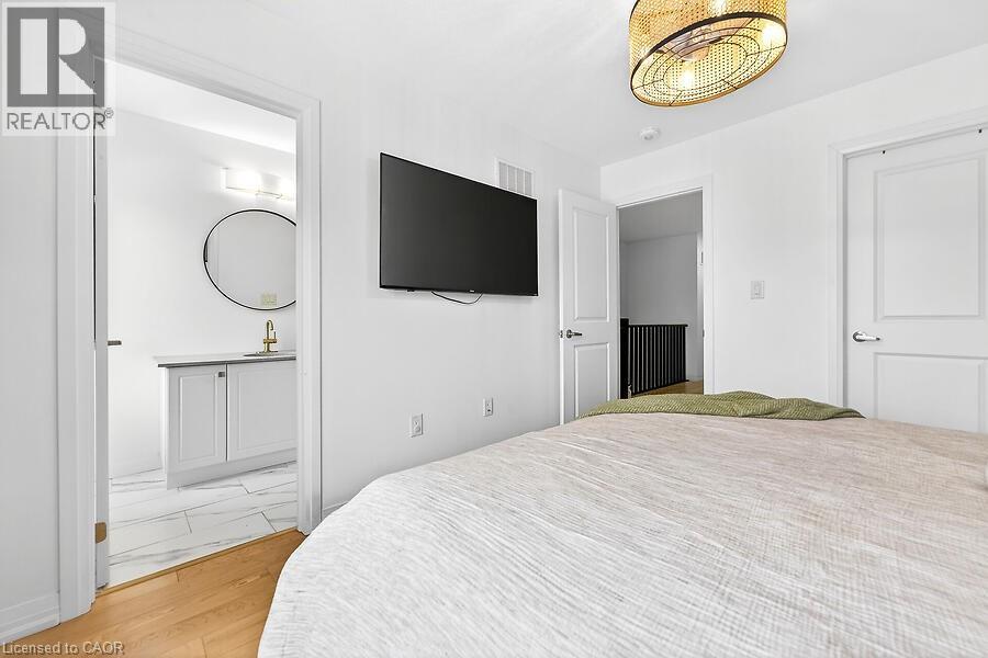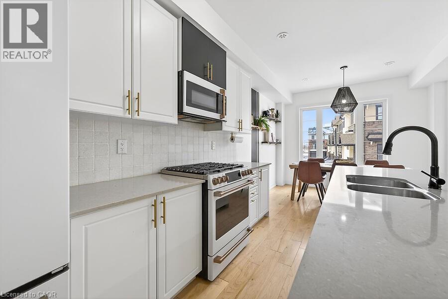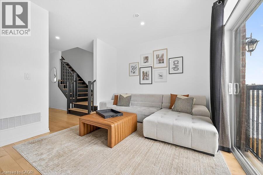 Backing onto a serene forest on Stoney Creek Mountain, this impeccably upgraded 3-year-old executive townhouse offers a rare combination of modern luxury and natural privacy. The move-in-ready interior is completely carpet-free, featuring engineered hardwood throughout, a refinished designer staircase, and a fresh top-to-bottom professional paint job. High-end finishes abound, from the gourmet kitchen's luxury appliances (GE Cafe) to the spa-like primary ensuite with its custom walk-in shower and upgraded tiling. Thoughtful details like upgraded pot lights, designer faucets, and a new powder room vanity complement the open-concept layout, while the new wood deck and fenced backyard provide the perfect private oasis for enjoying the tranquil forest views. Additional garage storage under main staircase contributes to marvelous home in close proximity to shopping and amenities. (id:4555)