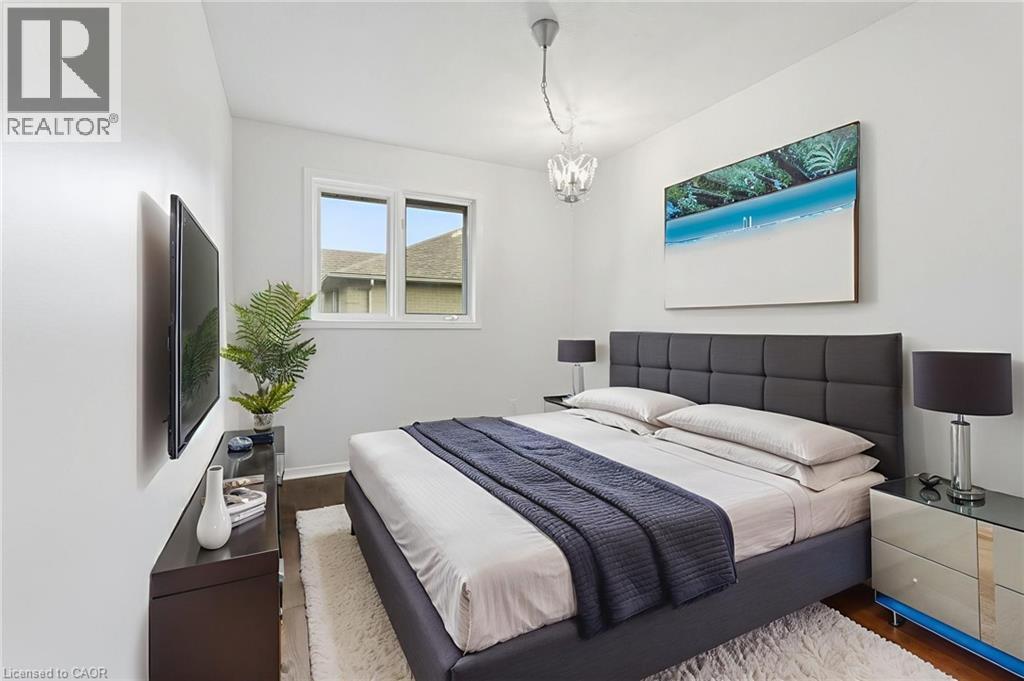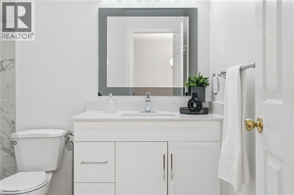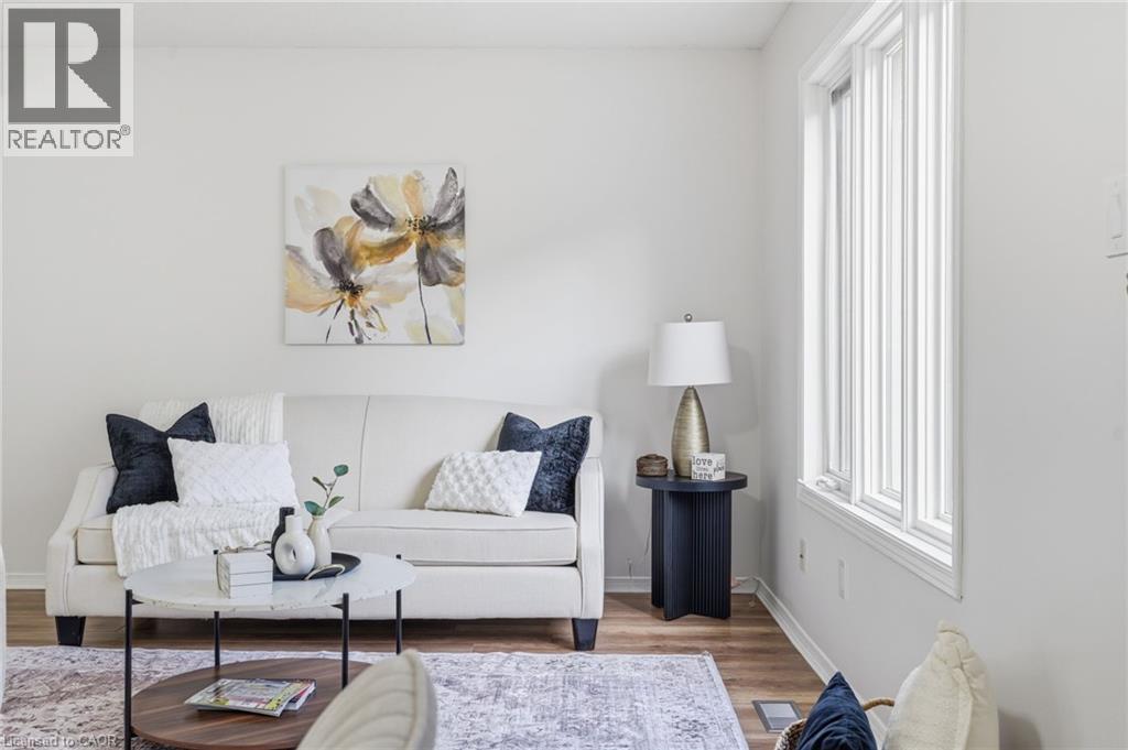 Welcome to this beautifully renovated 2-storey end unit townhome featuring 3 bedrooms and 2.5 bathrooms. The main floor is bright and inviting, with large windows and a modern updated kitchen with brand new cabinets and countertops, and some newer appliances. Upstairs, you’ll find 2 good sized bedrooms and the spacious primary suite offers his and hers closets along with a private ensuite. The finished basement provides additional living space for a family room, office, or gym. Condo fees include roof, windows, cable, lawn care, main road snow removal, and exterior maintenance (driveway snow removal not included). Conveniently located close to all amenities and highway access—just move in and enjoy. Updates: include but not limited to, bathrooms (vanity, countertops, mirror and lights 2025), kitchen (2025), A/C (2025), pot lights (2025). Full renovation list available at the property. (id:4555)