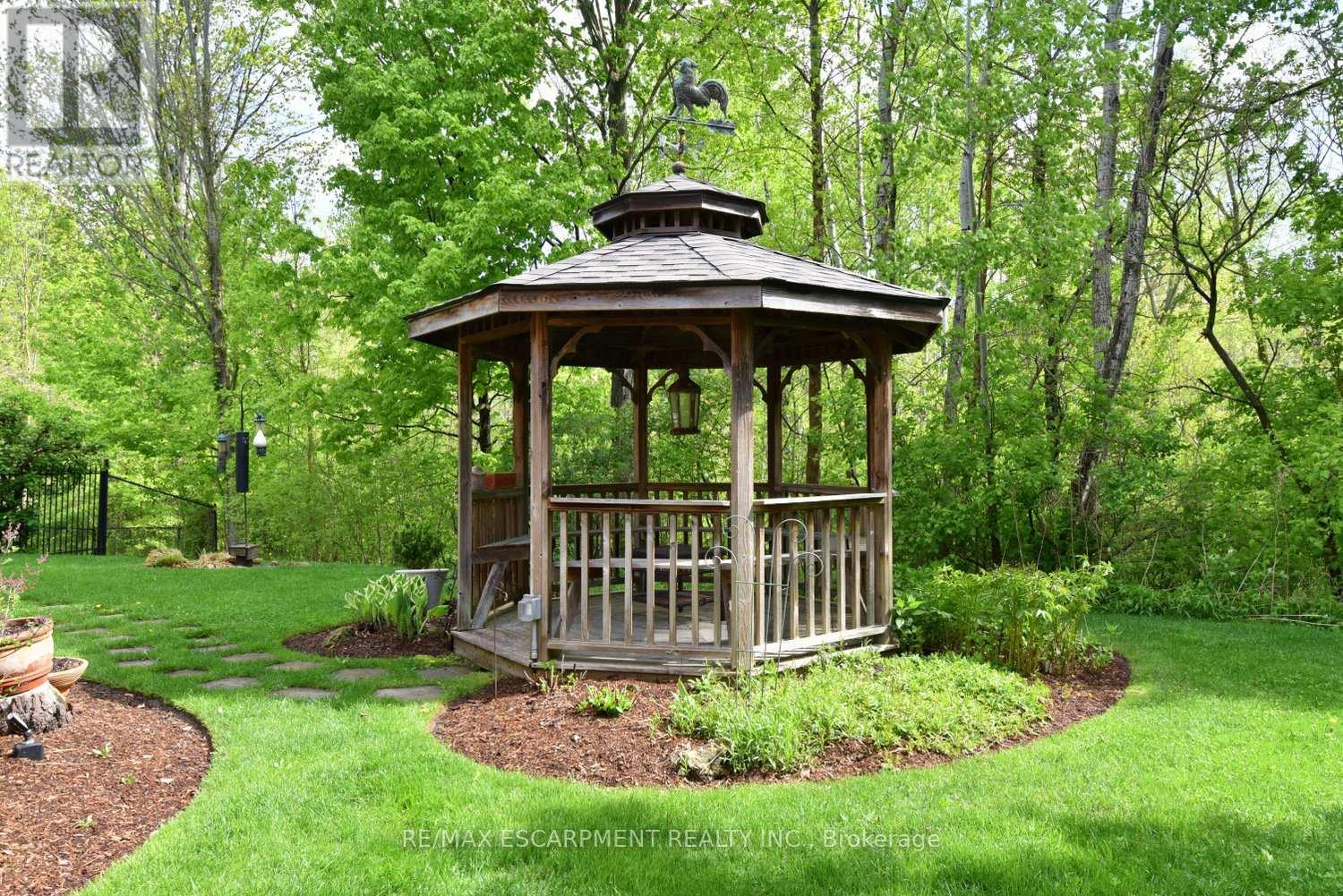 A truly magical property ! Strategically positioned to capture the woodland views & natural sunlight in the house & on the pool this custom built, meticulously maintained home on the outskirts of Waterdown is a family's dream come true. Whether playing games on the sprawling lawn, reading in the gazebo, lounging by the pool, hiking through your own woods or finishing your day with smores by the campfire, this home is sure to suit a growing family. Entertain in the formal living room, dining room with recessed buffet, cozy up by the fire in the family room or take in the views in the sun filled sunroom and count the endless number of bird species always at the feeder. Enjoy gathering around the island in the spacious kitchen with ample cabinets & a desk area. Enjoy a restful primary suite and 3 additional bedrooms in the main house. Work from home with a separate private entrance to office. Also there is a 3pce bath conveniently located to serve the main floor & pool guests adjacent to the laundry room entrance and access to the loft/ office with kitchen area that can easily accommodate a nanny/ in-law /teenager suite and has its own heat pump for heating & cooling. The lower level has an excellent workshop & is otherwise an open canvas for whatever your heart desires. This is where dreams do come true! Luxury Certified. (id:4555)