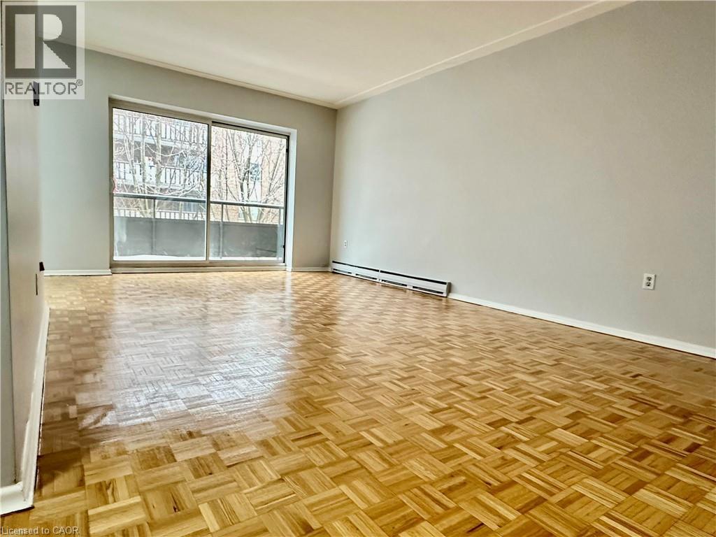 very bright and spacious 1 bed , 1 bath condo located in quiet building with only 4 storeys. the unit features an open concept large living room & dining room with patio doors to a large balcony. The kitchen offers plenty of cabinetry & tiled backsplash. The generous-sized bedroom has an oversized closet as does the second bedroom which is perfect for a home office. There is no shortage of storage space in this unit! Also includes a separate locker for extra convenience & laundry facilities just down the hall. Carpet free in all rooms. Easy walking to all amenities including shopping, dining and bus service just steps away. Parking spot included & visitor parking. Ideal location for the commuter- just minutes to the Red Hill Valley Parkway, Linc & QEW. Don't miss the opportunity to make this your new home! (id:4555)