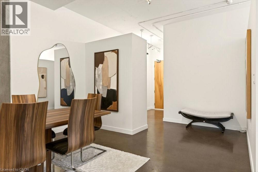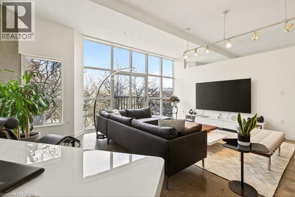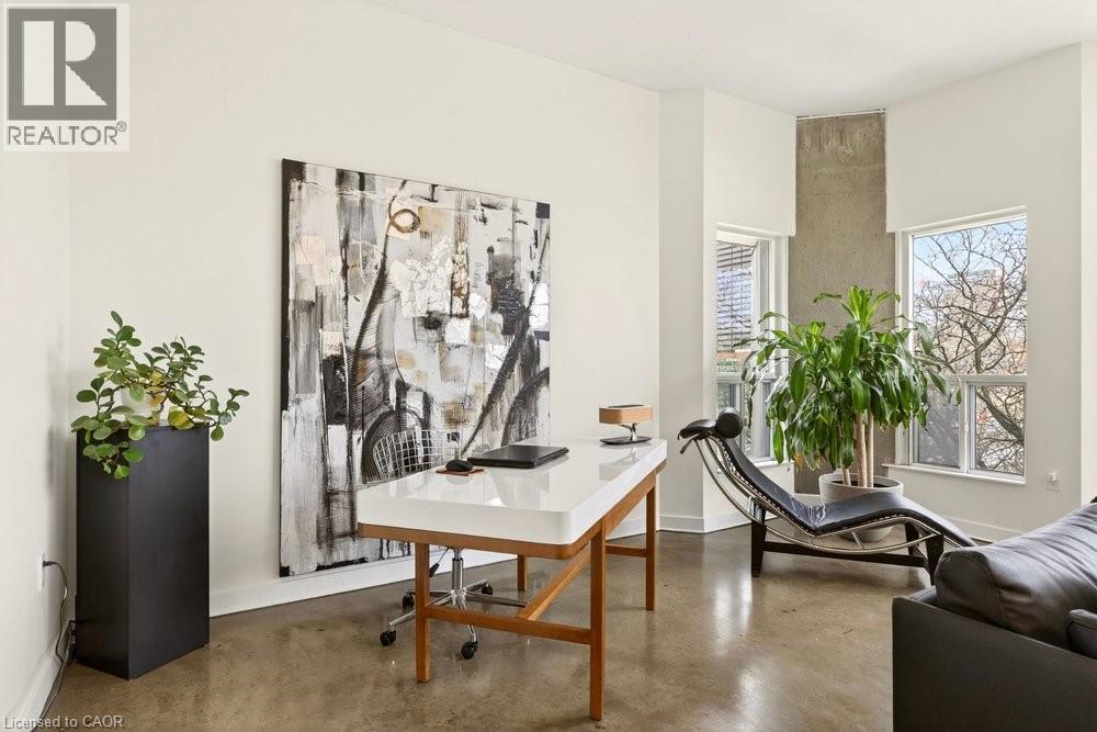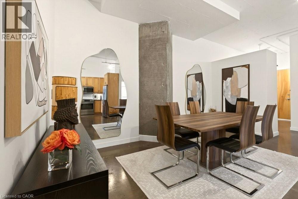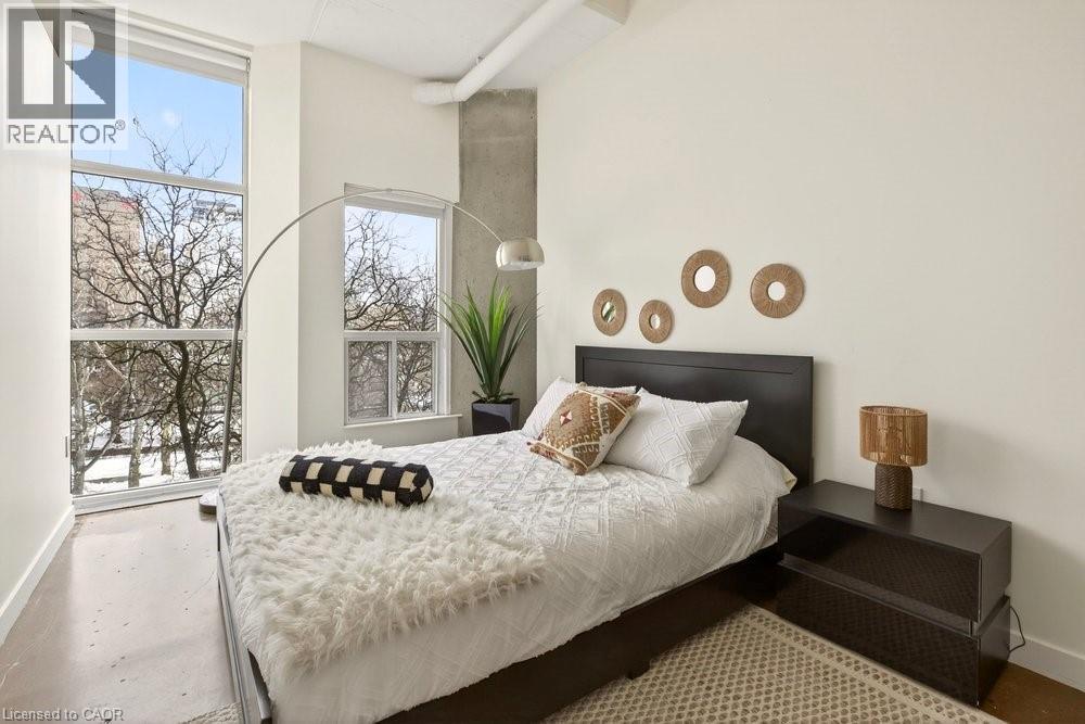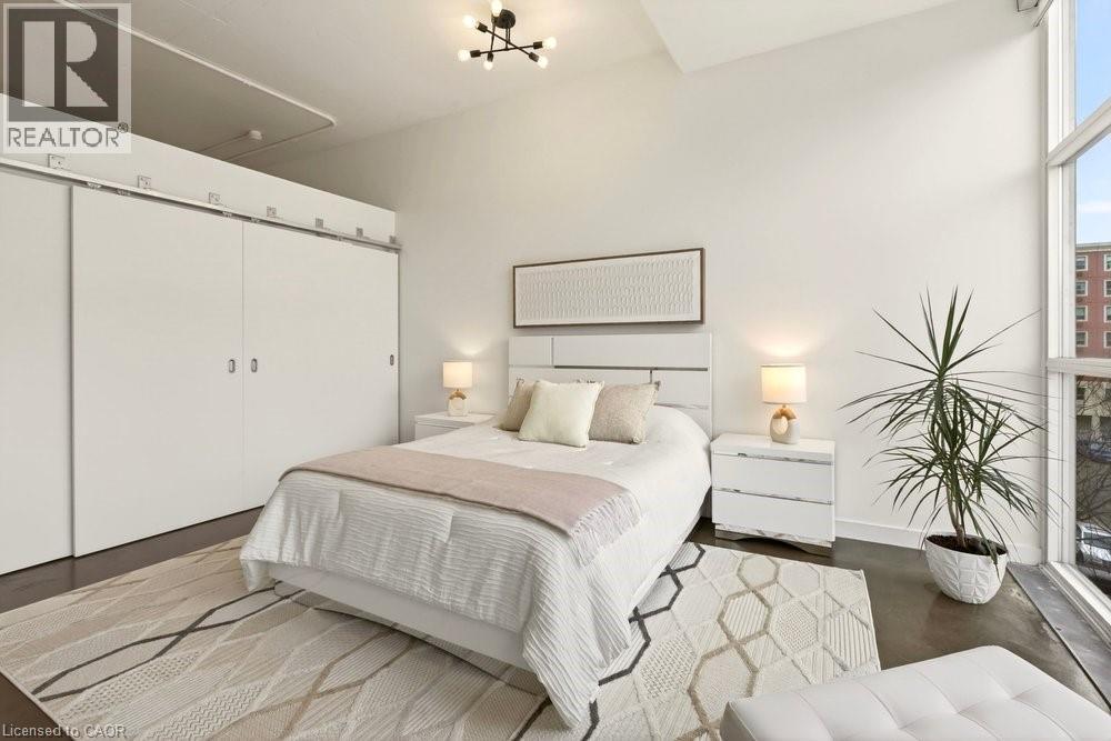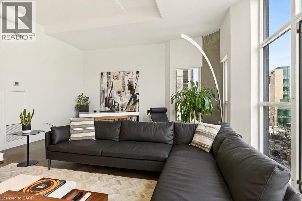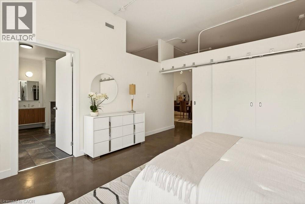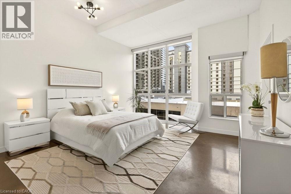 Welcome to Unit 401 at Core Lofts – a stunning corner suite in the heart of downtown Hamilton. Offering just over 1,500 sq ft of open-concept living space, this 2 bedroom, 2 bathroom loft combines industrial character with modern comfort. Featuring 10+ foot ceilings, polished concrete floors, and expansive floor-to-ceiling windows with desirable east and north exposures, this bright and airy unit is flooded with natural light. The spacious kitchen is equipped with granite countertops, stainless steel appliances, and a large island with granite surface, ideal for entertaining. The primary bedroom features floor-to-ceiling windows with custom window coverings and a beautifully appointed ensuite complete with a stand-up shower and soaker tub. The second bedroom offers flexibility for guests, office space, or additional living needs. The unit is tastefully decorated and can be purchased fully furnished. One parking space and a storage locker are included. Building amenities including a gym, meeting/party room, and a rooftop terrace with BBQs and seating areas. Located steps to Hess Street, Locke Street, King William dining district, Jackson Square, and the new TD Coliseum. Enjoy easy access to restaurants, cafés, shopping, entertainment, Bayfront Park, GO Transit, and major highway access. Experience convenient downtown living in one of Hamilton’s most desirable loft buildings. (id:4555)
