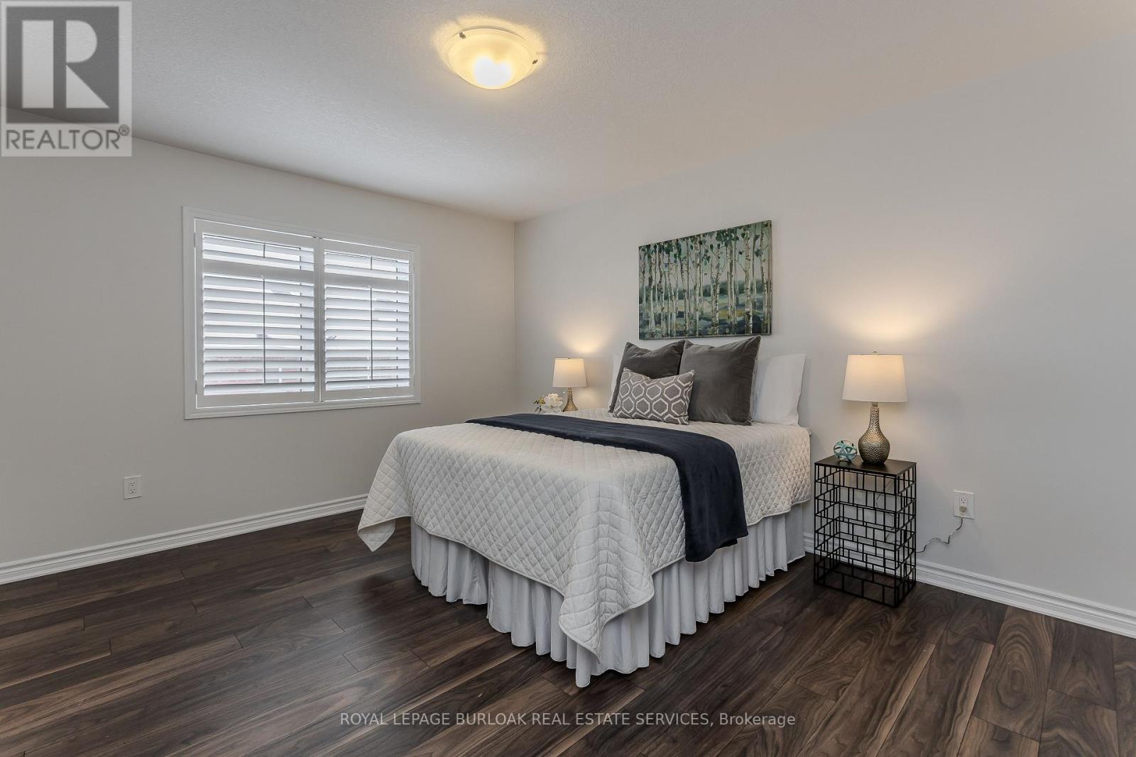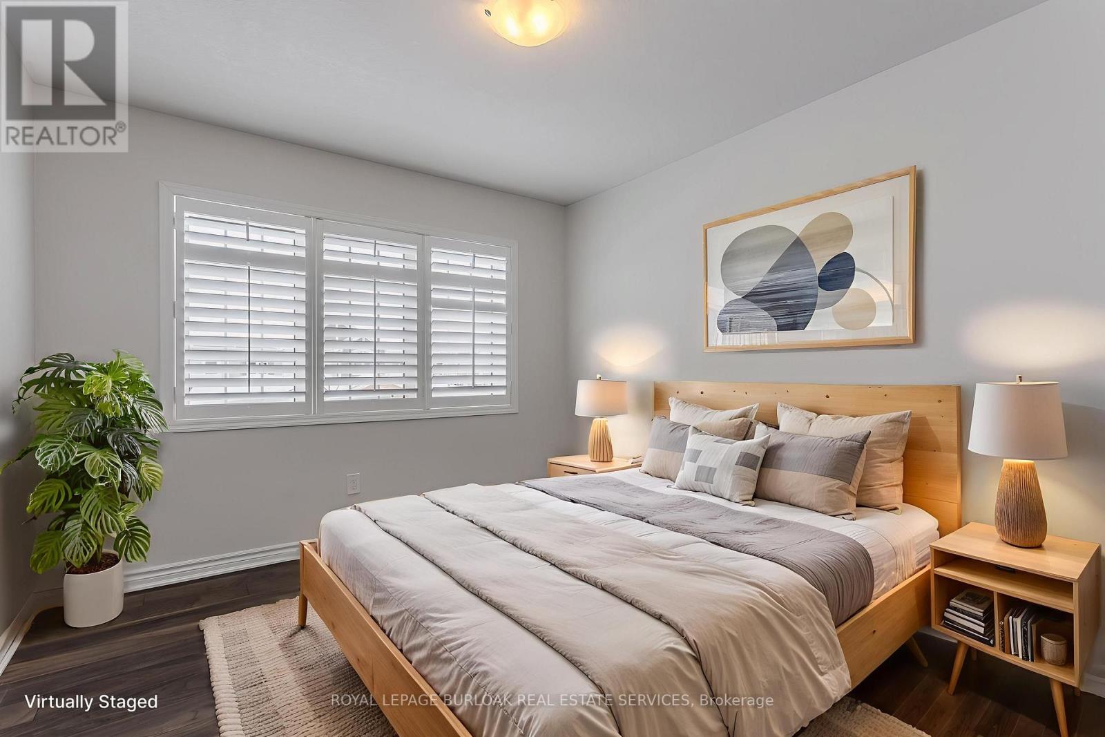 Welcome to this beautifully maintained freehold townhome nestled in one of Waterdown's most sought-after family communities. Offering1,459 sq ft of total living space, this home combines comfort, style, and everyday convenience in a fantastic location close to schools, parks, shopping, dining, and all essential amenities - perfect for growing families. From the moment you arrive, the home impresses with its striking façade, charming covered porch, and inviting curb appeal. Step inside to a warm and welcoming entryway featuring hardwood flooring that flows throughout the main level, along with a convenient 2-piece powder room. The open-concept main floor is designed for modern family living and effortless entertaining. The bright dining area connects seamlessly to a stylish kitchen complete with granite countertops, stainless steel appliances, ample cabinetry, and a peninsula with breakfast bar - ideal for busy mornings or casual meals. A walkout leads directly to the backyard deck, extending your living space outdoors. The spacious living room is filled with natural light from a large window, creating a cozy place for family time. A classic wooden staircase leads to the upper level. Upstairs, hardwood flooring continues throughout. The spacious primary retreat features a walk-in closet and a private 4-piece ensuite with an oversized granite vanity and tiled shower/tub. Two additional well-sized bedrooms provide flexibility for children, guests, or a home office, and are served by a bright 4-piece main bathroom. The fully fenced backyard offers a safe and private outdoor space with green lawn for kids and pets to play, plus an elevated wooden deck - perfect for summer barbecues and relaxing evenings. A wonderful opportunity to own a stylish, move-in ready home in a vibrant, family-friendly neighbourhood (id:4555)