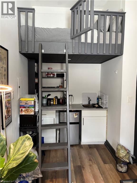 Welcome to the Apollo apartments in the sought after Durand neighbourhood. This micro bachelor apartment is conveniently located within steps of all James south has to offer including the GO station. This layout has private 3 piece washroom, kitchenette with fridge and sink, plus loft style, double size, bed platform accessed by ladder. This is the perfect solution for students and young professionals embracing a modern, downtown lifestyle. This secure Building is under new management with great friendly, respectful neighbours. Heat and water are included in the rent cost. Coin op laundry is available on site Electricity and internet/cable are the responsibility of the tenant. Rental application, current credit report and score, plus two month's of income verification required. Singlekey welcome. Parking is available to rent. (id:4555)