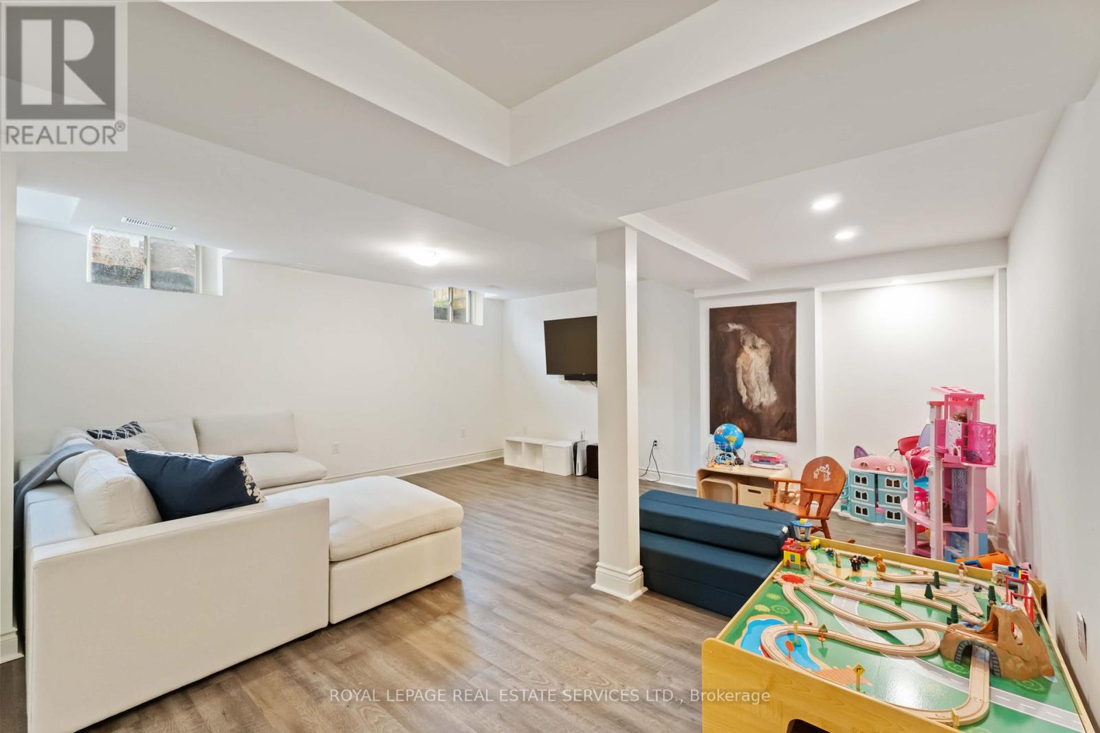Welcome to 28 Babcock Street, an impeccably upgraded home in the quaint, highly sought-after community of Waterdown. This residence offers nearly 3,000 sq ft of total living space, featuring three large bedrooms & 2.5 bathrooms, and convenient second-floor laundry. Situated on a family friendly street, this property is truly exceptional, showcasing over $100,000 in quality upgrades. The interior boasts a sophisticated aesthetic, with the entire house repainted in elegant Farrow and Ball colours. Nine-foot ceilings and hardwood floors span the main level, which features a beautiful open-concept living room anchored by a cozy gas fireplace. The eat-in kitchen offers plentiful countertop space with marble-top designer island & ample storage, upgraded painted cabinets, granite countertops & stainless steel appliances. Key design elements include a striking black and white main stairwell and new designer lighting throughout. Light dimmers are installed in all main living areas for perfect ambiance. The basement has been fully finished to provide highly flexible space, featuring a large recreation room, and a versatile separate room - perfectly suited for an office, home gym, or playroom. Curb appeal abounds this professionally landscaped property with a front yard boasting a redesigned walkway using engineered & natural stones, and wrought iron railing. The backyard has been entirely transformed into a luxurious, highly functional outdoor entertaining area, highlighted by modern large interlock and an extensive sitting wall for relaxation and hosting. The location is unbeatable, offering a real community atmosphere and unparalleled convenience. It's just a few minutes' walk from Waterdown District High School and the YMCA, and within easy walking distance to multiple schools, trails, parks, shopping, and restaurants. This home truly ticks all the boxes for family-friendly living in a desirable Waterdown setting! (id:4555)